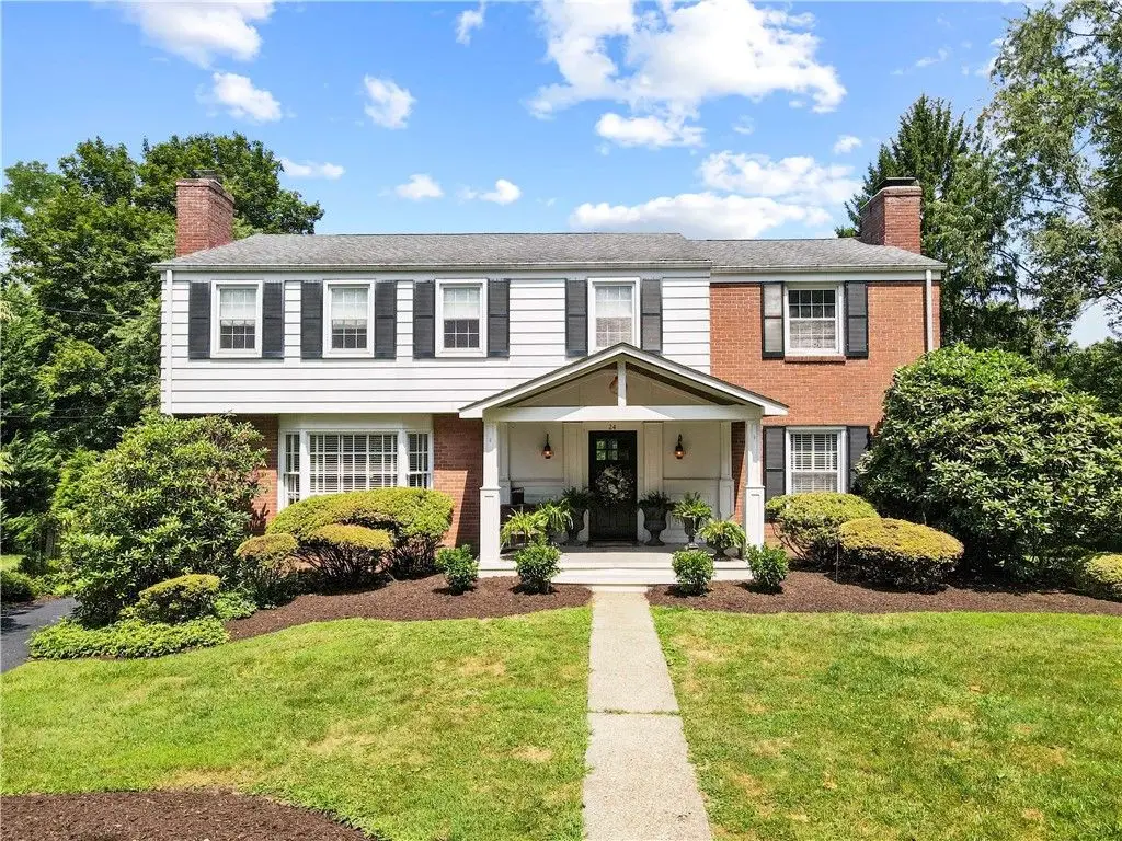 Spacious five-bedroom Brick Colonial backing to a Nature Preserve. Welcome to this beautiful American Dream Home! Two-story colonial on a desirable lot. From the entry with a wood & painted spindle staircase you'll find a gracious place to welcome your guests with a convenient powder room & guest closet. Gleaming hardwood floor throughout the home. The exciting family room features a distinctive wood burning fireplace, beamed ceilings that expands to a larger room with vaulted ceilings & dramatic window wall overlooking the private tiered yard & expansive deck, for outdoor enjoyment with a view of Falling Springs Park. Kitchen boasts granite counters, wood cabinets & stainless steel appliances, make it a functional works space for the home cook. Formal Dining Room adjoins the living room with a gas fireplace & large picture window. Upstairs finds the primary suite & four sizable bedrooms & hall bath. Finished lower level with wet bar & full bath, perfect for playroom or home office. 3 car garage!
