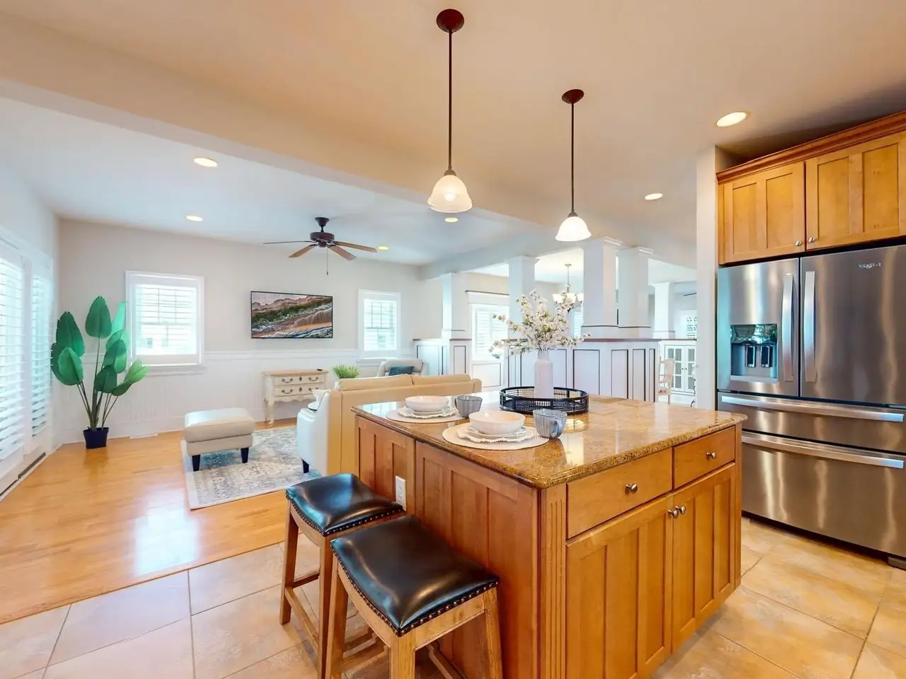 **PRICE REDUCED-BEST SINGLE FAMILY VALUE IN OCNJ** This classic Asher Single Family Masterpiece compliments this great North-end neighborhood with charm and elegance; capturing the Classic Design of years past on the outside with the modern amenities of today on the inside. This Six Bedroom, Four and a half Bath home features wainscotting, Plantation Shutters throughout first floor, hardwood floors, built-in cabinetry featuring cherry-wood inlays, cathedral ceilings in four of six bedrooms, tiled showers with glass doors and many more attributes throughout the house. The kitchen's granite counters and oversized center island compliment the tall cabinets for plenty of storage, with all new stainless steel appliances. The adjacent family room, half bath and rear porch make this area a focal point for entertaining. The over-sized primary bedroom features a cathedral ceiling, hardwood floors, a huge walk-in closet an ensuite private bath with tiled floors, a large walk-in tiled shower w/glass doors and marble double sink top along with high ceilings. A walk-in Laundry Room, Hall Bath and two other Bedrooms are down the hall leading to the Secondary Primary Bedroom, bigger than most Primary bedrooms and complete with cathedral ceilings, an ensuite bathroom, walk-in tiled shower w/glass doors and a slider going out to the rear deck. Up one more flight of stairs to the 3rd floor, featuring bedrooms five & six, w/ vaulted ceilings and full length windows. This top floor is complete with the fourth full bathroom also with tiled floors, tiled walk-in shower and glass shower doors. The attached, freshly painted garage with epoxy floors and a loft for additional storage is a plus. The southern side of the property is fenced-in with a front gate and open in the back (can be easily gated). The rear parking pad doubles as a rear patio, giving you great outside space and is used as a courtyard in the summer. This house and location has so much to offer; a quick walk to the beach or downtown shopping as well as a bike ride to almost anywhere! Easy to show. Call today for your private showing.