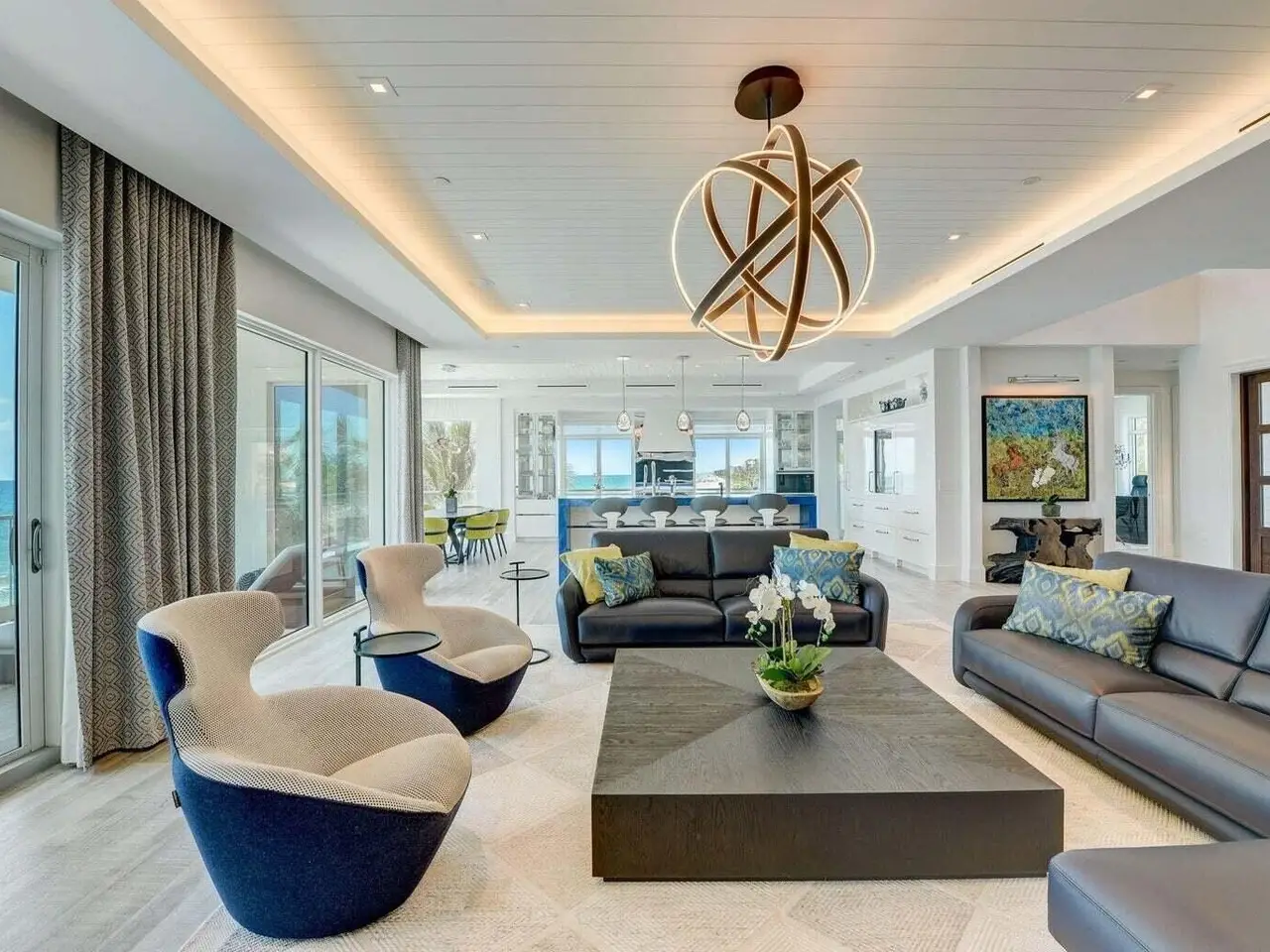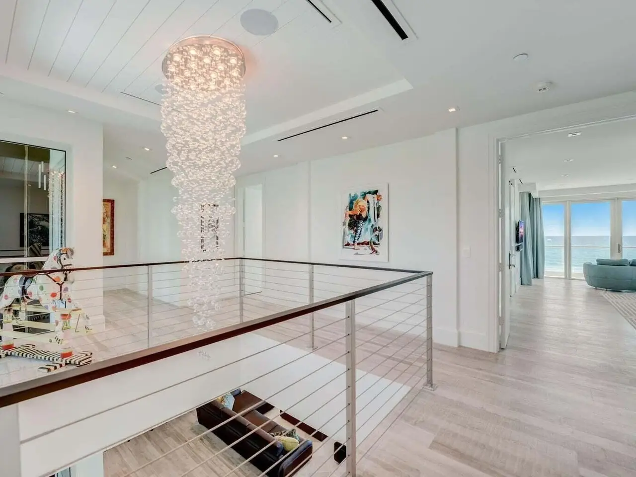 Ocean Ridge townhome, perched directly on the sand, showcases a sunny deck and an expansive wraparound balcony perfect for catching the sunrise. Designed with a sophisticated beach-chic flair, every room frames sweeping views of golden coastline and shimmering aquamarine waters. The main level boasts a light-filled open-concept living space. Downstairs rooms make ideal guest retreats, while the top-level primary suite, with its panoramic oceanfront perch, sits in the sunny southeast corner.
