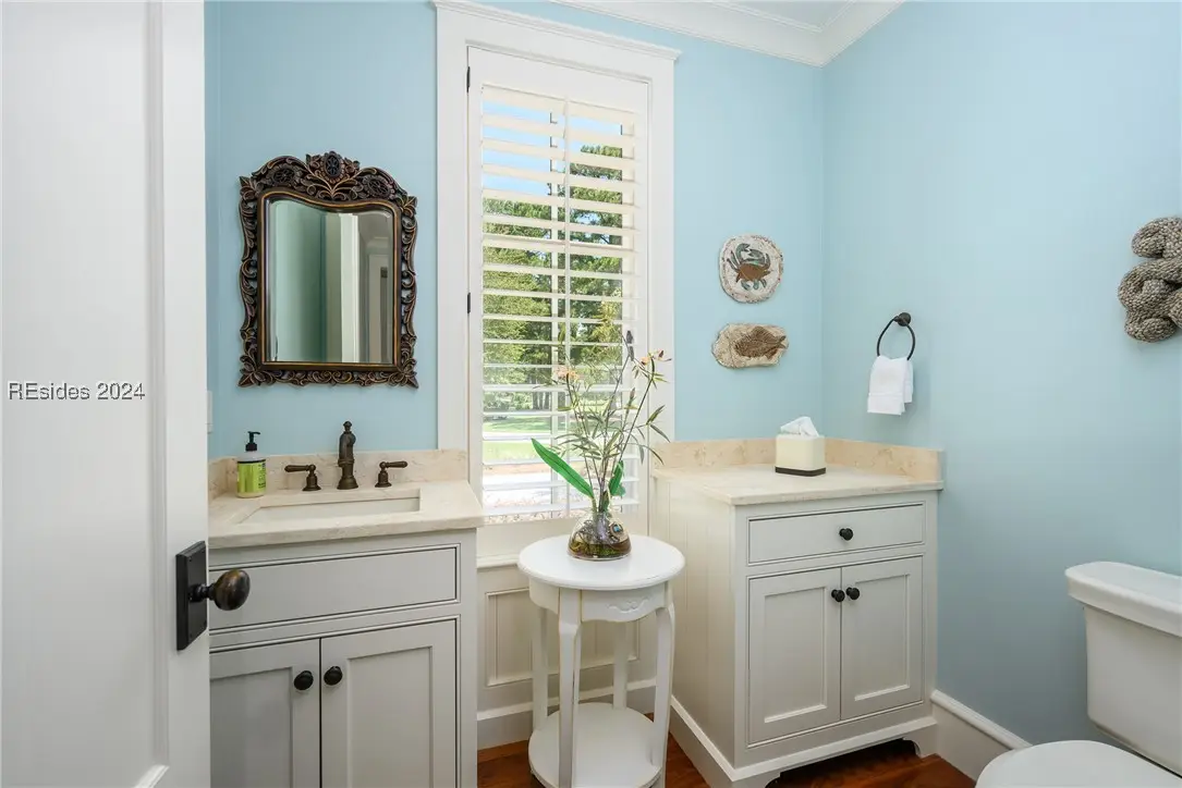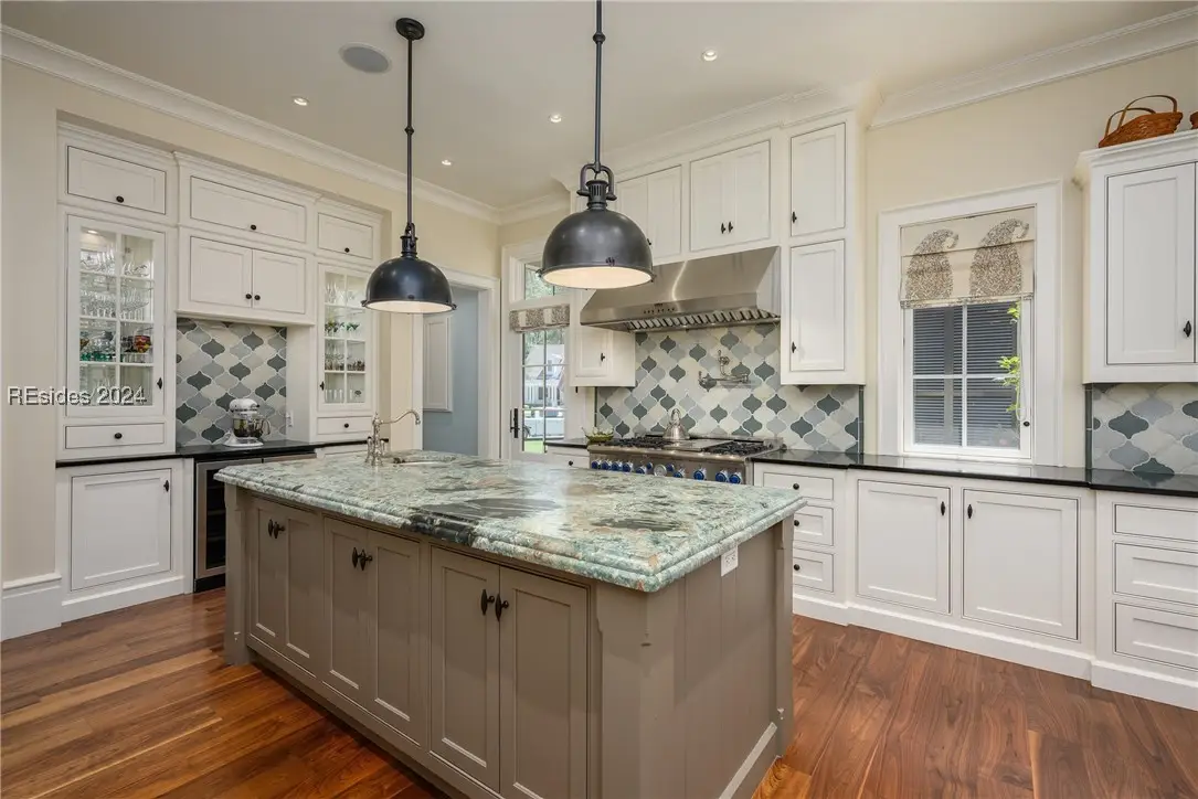 Unparalleled attention to detail and nestled on a spacious 1.05-acre lot, this might be the finest home ever offered in highly desirable Oldfield. Appointments include Savannah Grey Brick, rich black walnut flooring, travertine tile and exquisite custom-crafted millwork, to name just a few. The spacious kitchen is extraordinary and a chef's dream - custom cabinets, marble countertops, breakfast bar, Thermador appliances and ample sized pantry. Thoughtfully designed, floorplan features first-floor primary suite, separate guest quarters with kitchen located above one of two two-car garages, outdoor kitchen, screen porch and much more.