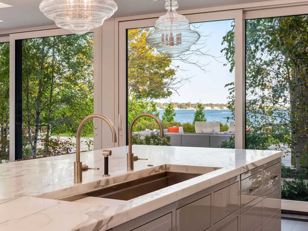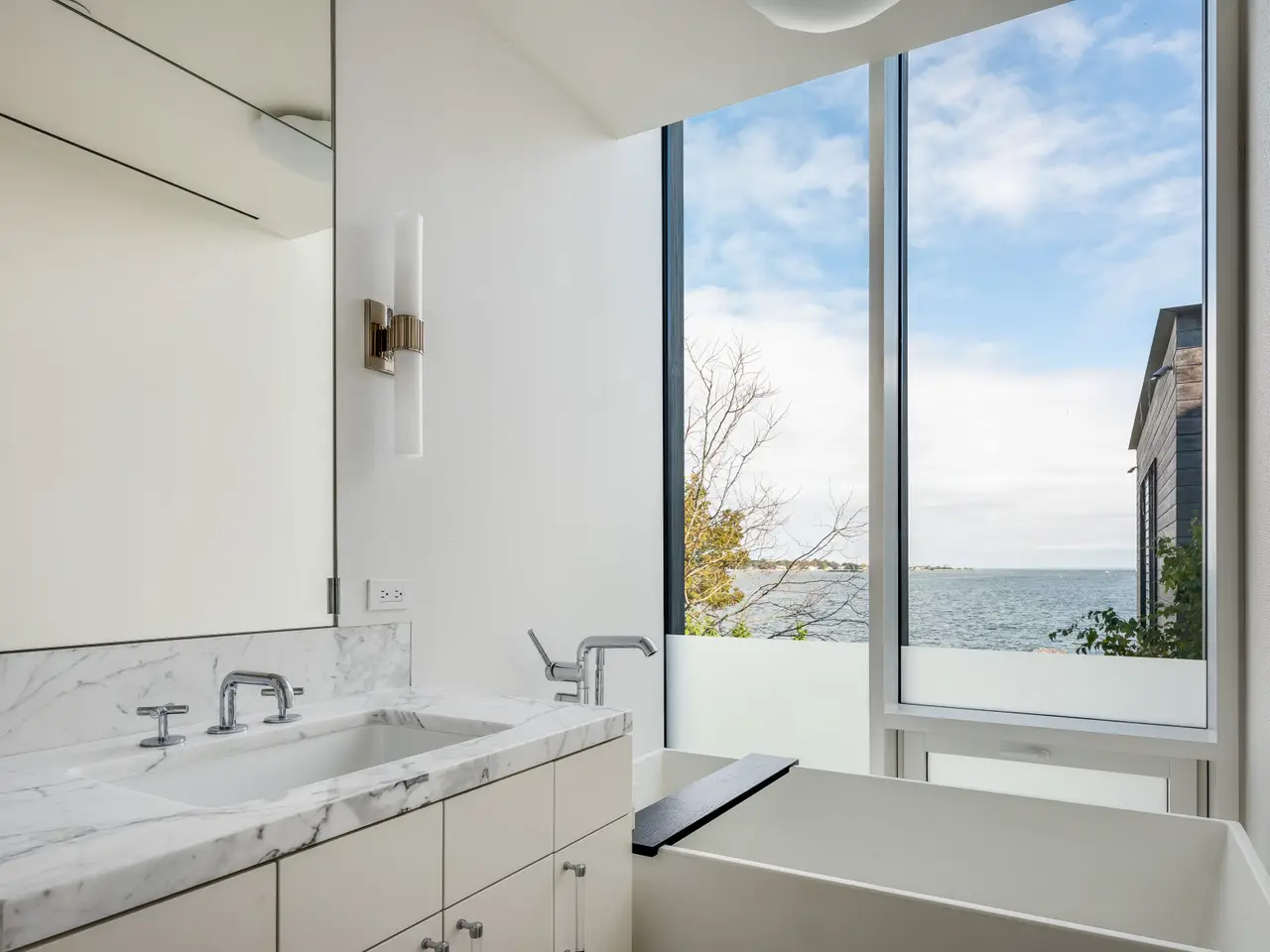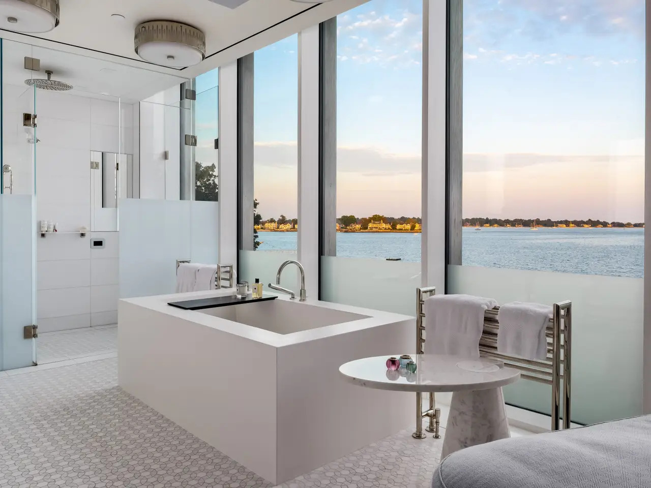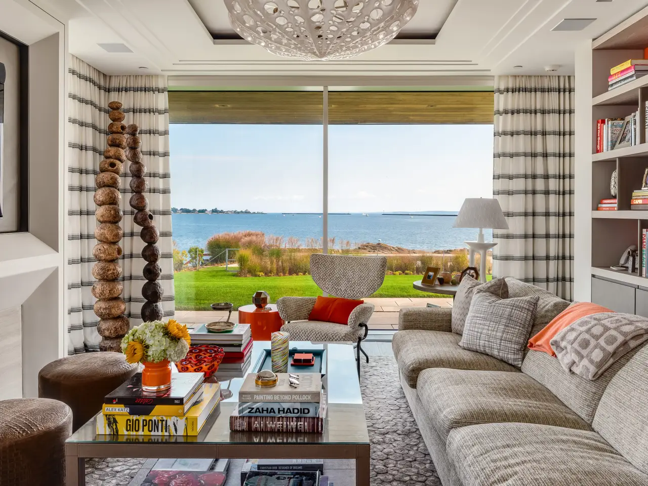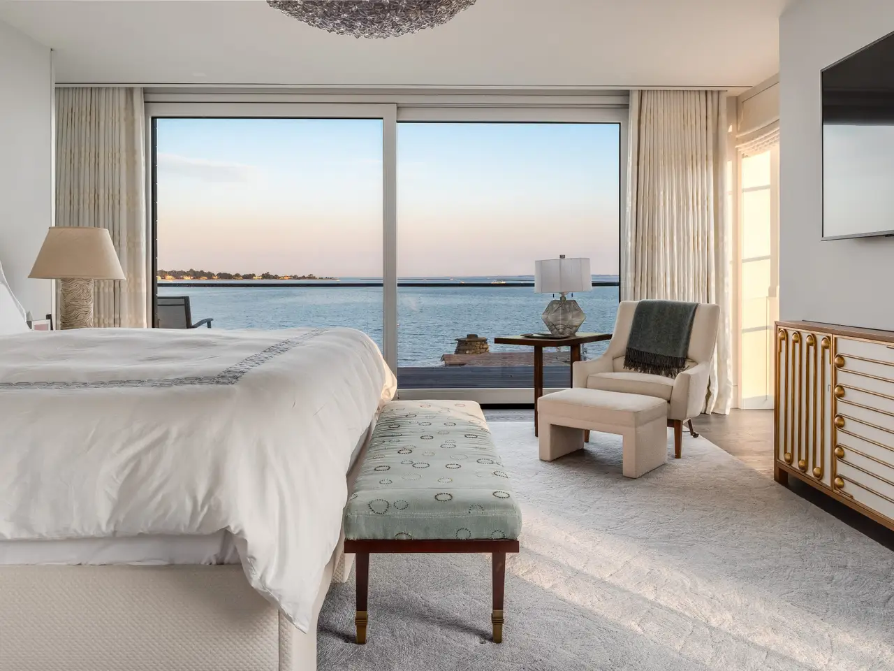 This unparalleled custom-built modern waterfront estate, winner of 2021 HOBI-award, is a true oasis with 300'+ water frontage, pool, guest house, boat house, spa, expansive terraces integrated with gardens and deep water pier. Joeb Moore + Partners, Arthur Dunnam for Jed Johnson Studio, Reed Hilderbrand & Prutting Custom Builders collaborated on this spectacular LEED certified 13,428 sf compound defined by seamless indoor/outdoor living & entertaining spaces, geo-thermal heating/cooling system & the best of smart home technology. Stunning open floor plan interior, brimming with luxurious details, boasts dramatic floating three-story staircase; true chef's kitchen with extraordinary pantry, scullery and wine room; floor-to-ceiling glass imported doors and windows envelop the home with Multiple custom offices. Exceptional Primary Wing. Breathtaking open water views across to Long Island from most every room. A very unique opportunity.