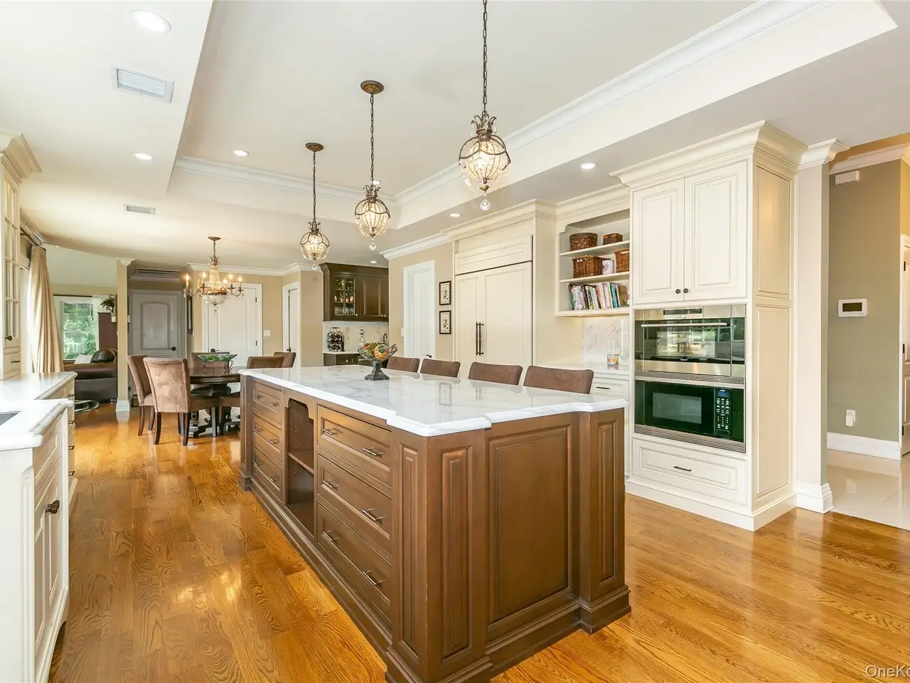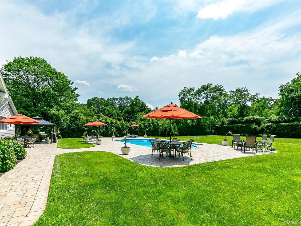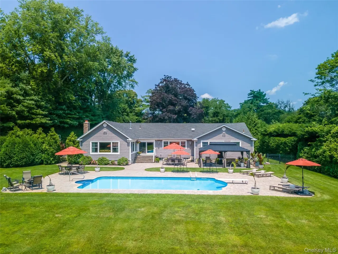 Exquisite, Better-Than-New Estate Ranch. Meticulously rebuilt from the ground up, this sprawling ranch sits at the serene end of a private cul-de-sac, offering the ultimate blend of sophistication, privacy and year round resort living. Step outside to professionally landscaped grounds highlighted by a heated in ground pool, extensive stone patios and multiple lounging and entertaining areas-all creating a true country-club oasis. Inside, a state-of-the-art gourmet kitchen showcases top tier appliances, custom cabinetry and gas cooking. The sun drenched family room with soaring cathedral ceilings frames dramatic views of the spectacular backyard retreat. Additional distinctions include seperate guest quarters for VIP visitors, impeccable "Like New" condition throughout. Also available for rent starting 12/1/2025 for $11,000.