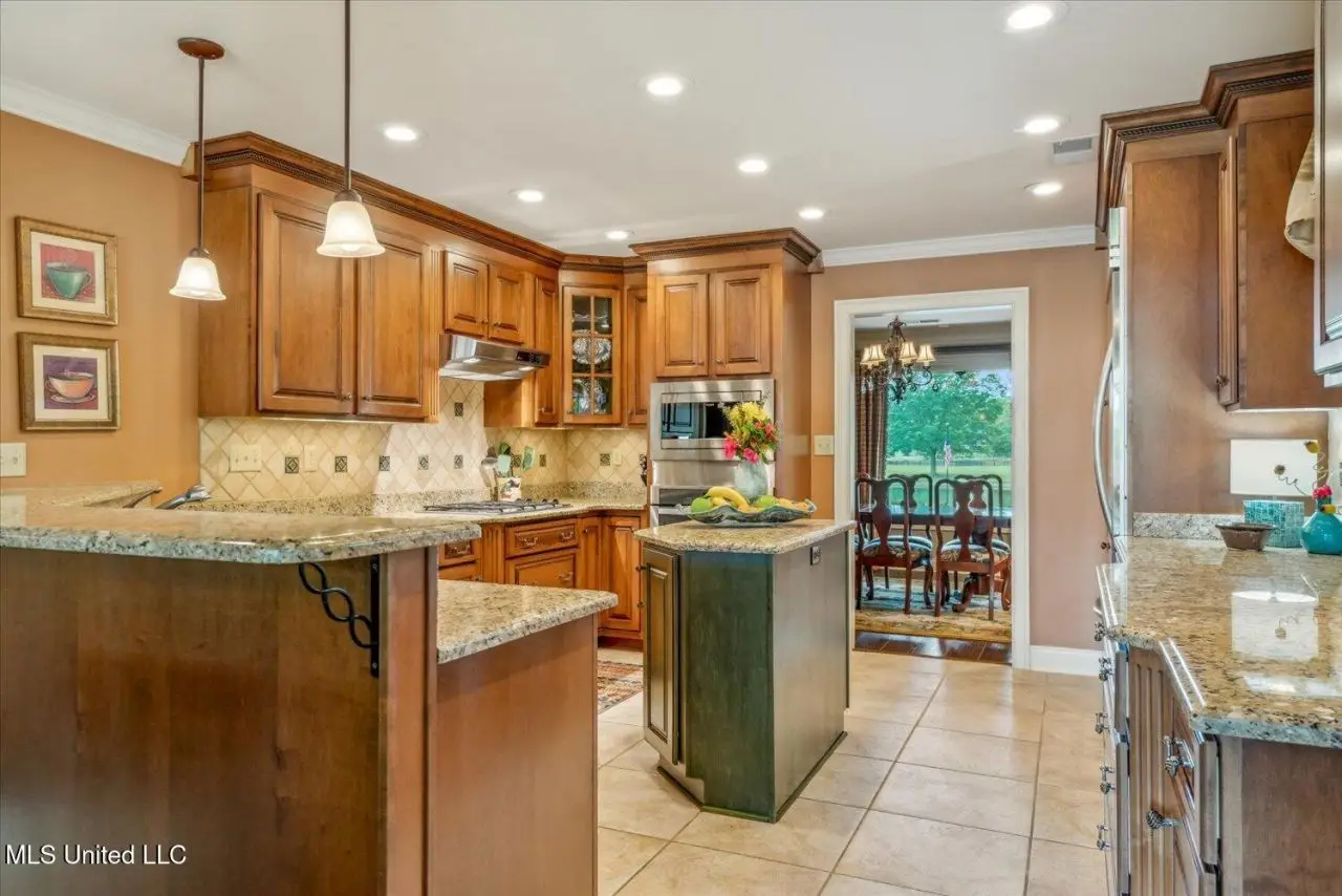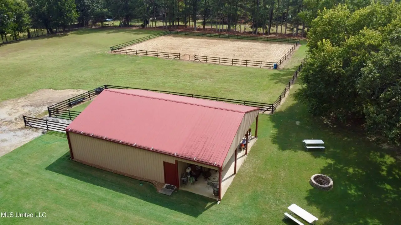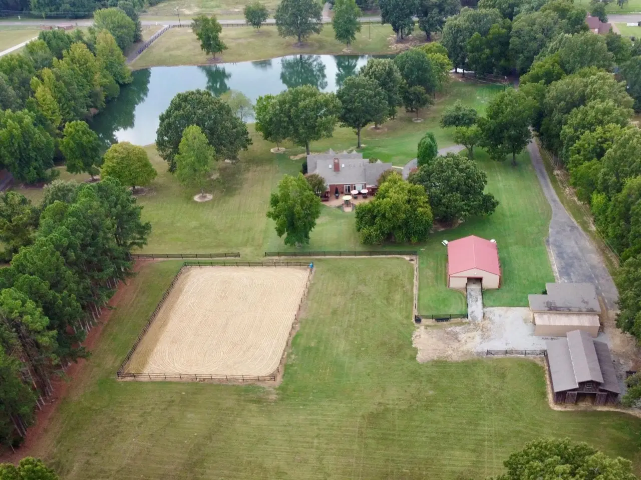 Mini Ranch located in the heart of Olive Branch. This estate offers 13.62 +/- acres, remote controlled electric security gate with keypad, 2 barns, fenced and crossed fenced, arena, approx. 3-acre lake, RV/horse trailer parking with designated 30-amp electrical service and waste station; stone ancillary building with heat, air, separate security system, two barns including one metal barn and one wood barn, tractor/equipment garage/workshop with additional lean-to, winding blacktop drive with alarm. Main home offers 6 bedrooms, 4 full baths and one half bath. Gourmet kitchen with granite countertops, tile flooring and backsplash, under cabinet lighting, decor glass cabinet door with accent lighting, island, stainless steel appliances, gas cook top, built-in oven and microwave, vent hood, Kitchen Aid built-in refrigerator, trash compactor, pantry with sliding drawers, free standing ice maker, open to 23.3x15.2 family room featuring built-ins with adjustable shelving and gun cabinet and fireplace with gas logs. Formal dining room with hardwood flooring, 22.5x18 great room with fireplace and gas logs, 15.10x15.5 primary bedroom with accent crown lighting, unbelievable primary closet measures 15.3x12 with island and custom shelving, salon bath with walk-in shower, separate soaker tub, two vanities - one with knee space, plus two more walk in closets. Also on the main level are 14.6x10.11 bedroom #2, 13.11x12.9 bedroom #3, and 2-1/2 baths. Upstairs leads to bedroom #4 measuring 15.6x10, with a private ensuite full bath and 5th 17.9x13.4 bedroom ideal for exercise or crafts. Access via a second staircase to bedroom #6, 17.8x16.1, with its own ensuite full bath and walk-in closet. Other amenities include laundry room with cabinets, bonus area to hold 2 refrigerators and/or freezer, pocket doors, two sets of permanent stairs with oak treads, 3 bedrooms down, 2-1/2 baths down. Spacious coat closet, multiple light switch dimmers, dual security systems for main home and stone building, butler's pantry with coffee bar and wine cooler. New architectural shingle roof installed fall 2024, brick and vinyl siding for low exterior maintenance. This home, built in 1988, was completely remodeled in 2003 and meticulously maintained... ask for details! Metal Horse Barn is 36x48 with four 12x12 stalls, tack/feed room with cabinetry, fly spray system, wash room with fiberglass walls, cold and hot water supply, insulated, stall mats, concrete aisle, gutters, sliding front and rear doors, large covered front porch, built-in fire pit, plus 90'x100' arena with sand. Wood Barn is 36x50 with tack/feed room, water and electricity. This barn makes a great loafing shed area and hay storage. Stone Ancillary Building: great for hobbies and has a half bath, closet, window AC and propane wall heat that services front of building. Includes attached garage with work benches, overhead door and lean-to on rear. All of this situated on 13.62+/- beautiful acres with approximately 3-acre lake loaded with fish, fenced and cross fenced (majority vinyl fencing), scattered mature trees, designated area irrigation system, accent exterior lighting with timers, attached double garage with epoxy coating floors and pine tongue and grove ceiling, gutters, huge patio with built-in serving bar, wrap around porch. Call now and bring on the horses! Owner agent. https://youtu.be/blmG57c9mcI