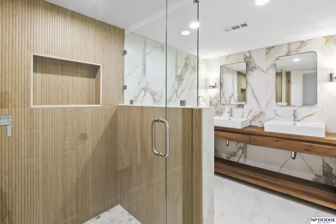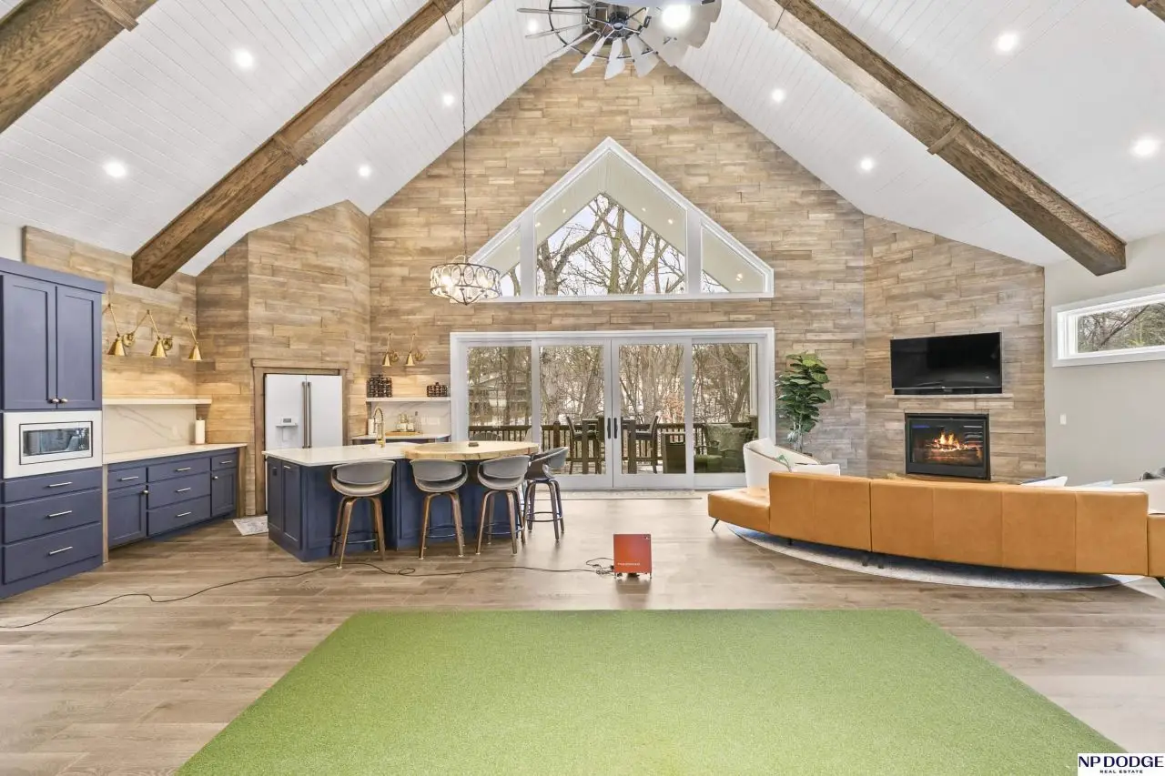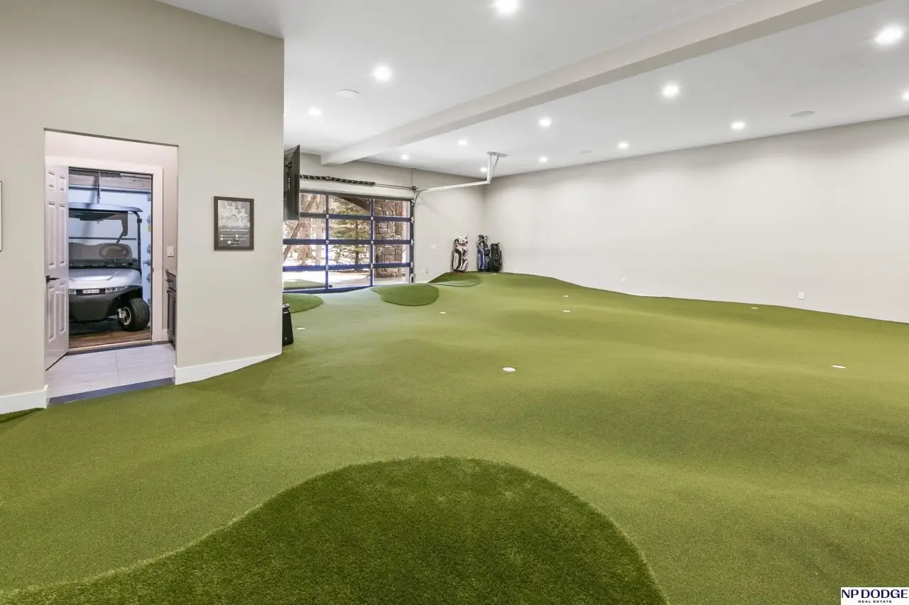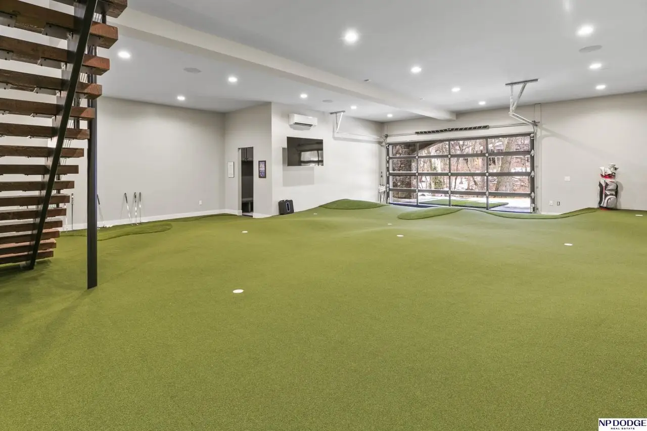 TURNKEY HOME sitting on almost 1.5 acres in the woods along the edge of Omaha Country Club golf course. No need to wait to build or remodel this has all been done for you. Pack your suitcase & move right in, truly resort style living in Omaha! Numerous renovations over 2024 including all bathrooms, a seventh bathroom was added & a seventh bedroom. Bathrooms have Restoration Hardware vanities, lighting & mirrors making them private en-suites. Fresh basement remodel including new onyx marble bar, cabinetry & carpeting. You will be impressed w/ the new custom modern master carpentry added throughout. Shiplap, ceiling treatments & wall treatments have added rich new layers. Designed for entertaining, it has the potential to be a multi-generational home. W/ two separate entrances & private quarters offering privacy & space for all. A place for relaxation & play w/ the Trackman two story golf simulator & custom putting greens bringing the course directly to you. Seize this remarkable estate.