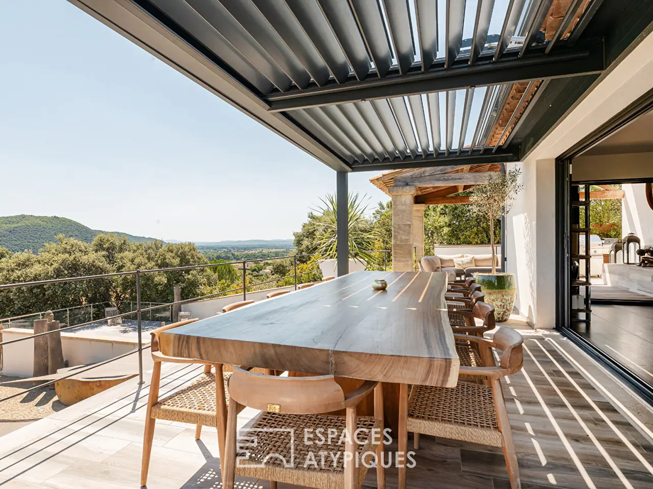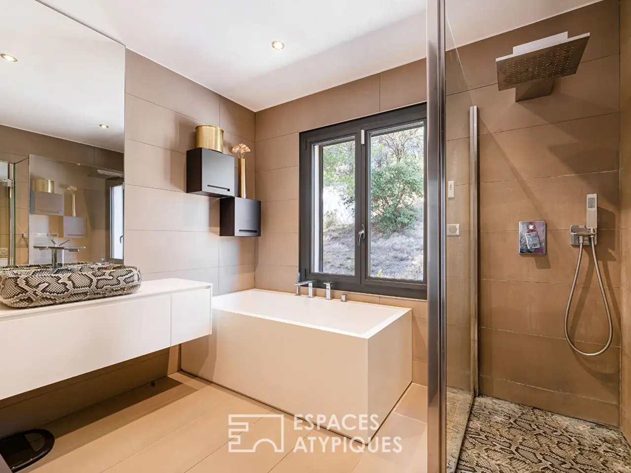 Located in a peaceful and highly sought-after environment in the commune of Oraison, this contemporary property built in 2014 seduces with its generous volumes, its exceptional unobstructed view and its high-end services.Built on a landscaped plot of 2,333 sqm, it offers 413 sqm of living space, extended by 300 sqm of terraces open to the surrounding nature and an elegant 10 x 5 meter swimming pool.The whole benefits from a rare panorama, without vis-a-vis, which accentuates the feeling of space and serenity.The main villa is organized around a vast living room of 110 sqm bathed in light, bringing together living room, dining room and open kitchen with direct access to the terrace covered by a bioclimatic pergola.A master suite, two bedrooms with shower room, a storeroom and numerous storage spaces complete this level.Two independent living spaces complete this configuration:- A single-story apartment with living room, kitchen, two bedrooms, bathroom and private terrace.- A studio equipped to receive comfortably.Each of these spaces has been designed to function autonomously, while remaining connectable according to needs, offering great flexibility of use: large family, reception, professional activity or rental.Comfort is omnipresent: underfloor heating, motorized roller shutters, automatic gate, alarm system, surveillance cameras, double garage, and carefully selected materials.A rare property in a prime location, designed for those looking for a place combining modern comfort, architectural elegance and quality of life in Provence.`ENERGY Class: C / CLIMATE Class: BInformation on the risks to which this property is exposed is available on the Georisques website: www.georisques.gouv.frFor any information contact Marion ROBERT 06 38 84 39 44 EI RSAC 892307539 MANOSQUEREF. 1089ADHPAdditional information* 10 rooms* 6 bedrooms* Outdoor space : 2333 SQM* Property tax : 6 185 €Energy Performance CertificateEPC : 122 kWhEP/m2.year* A 450Agency feesThe fees include VAT and are payable by the vendorMediatorMediation Franchise-Consommateurswww.mediation-franchise.com29 Boulevard de Courcelles 75008 ParisInformation on the risks to which this property is exposed is available on the Geohazards website : www.georisques.gouv.fr