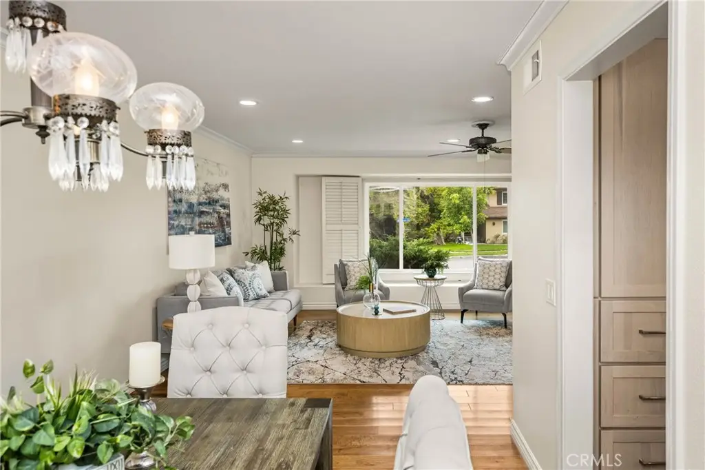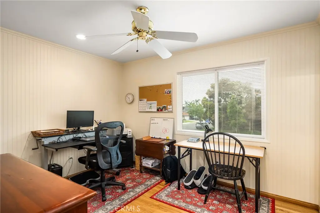Welcome to this beautifully upgraded 4-bedroom, 3-bathroom home offering 2,121 sq ft of thoughtfully designed living space. With a downstairs bedroom and full bath, this layout is perfect for guests or multigenerational living. At the heart of the home is the Designer Chef's Kitchen, featuring premium appliances: Sub-Zero Dacor refrigerator, Dacor double oven with warming drawer, Wolf 6-burner cooktop, Bosch dishwasher, and Dacor convection microwave. Enjoy the gorgeous Quartzite countertops, vegetable prep sink, and custom pull-out shelving make this a dream kitchen for any culinary enthusiast. All bathrooms have been tastefully updated with elegant Kraft Maid birch wood cabinetry, adding warmth and sophistication throughout the home. The home boasts 3/4-inch Hickory wood floors, recessed lighting and ceiling fans perfect for those warm summer days. Outside, entertain in style under the custom - built covered patio, perfect for alfresco dining. The expansive backyard is a private oasis featuring mature Hass avocado, orange, lime, and kumquat trees, plus a convenient slab sink for barbequing. On opposite sides of the yard, you'll find two custom built 8x16 sheds complete with insulation, drywall, windows, and 3-amp wiring offers exceptional additional space. Additional highlights include RV parking with remote controlled gate access, Noritz tankless water heater, reverse Osmosis water system, a Vertex security system, with multiple cameras for added coverage, newer ductwork, and a 3-year-old composition shingle roof with 50-year warranty. A rare find that blends luxury finishes, thoughtful upgrades, and versatile outdoor space - this home is truly the total package!