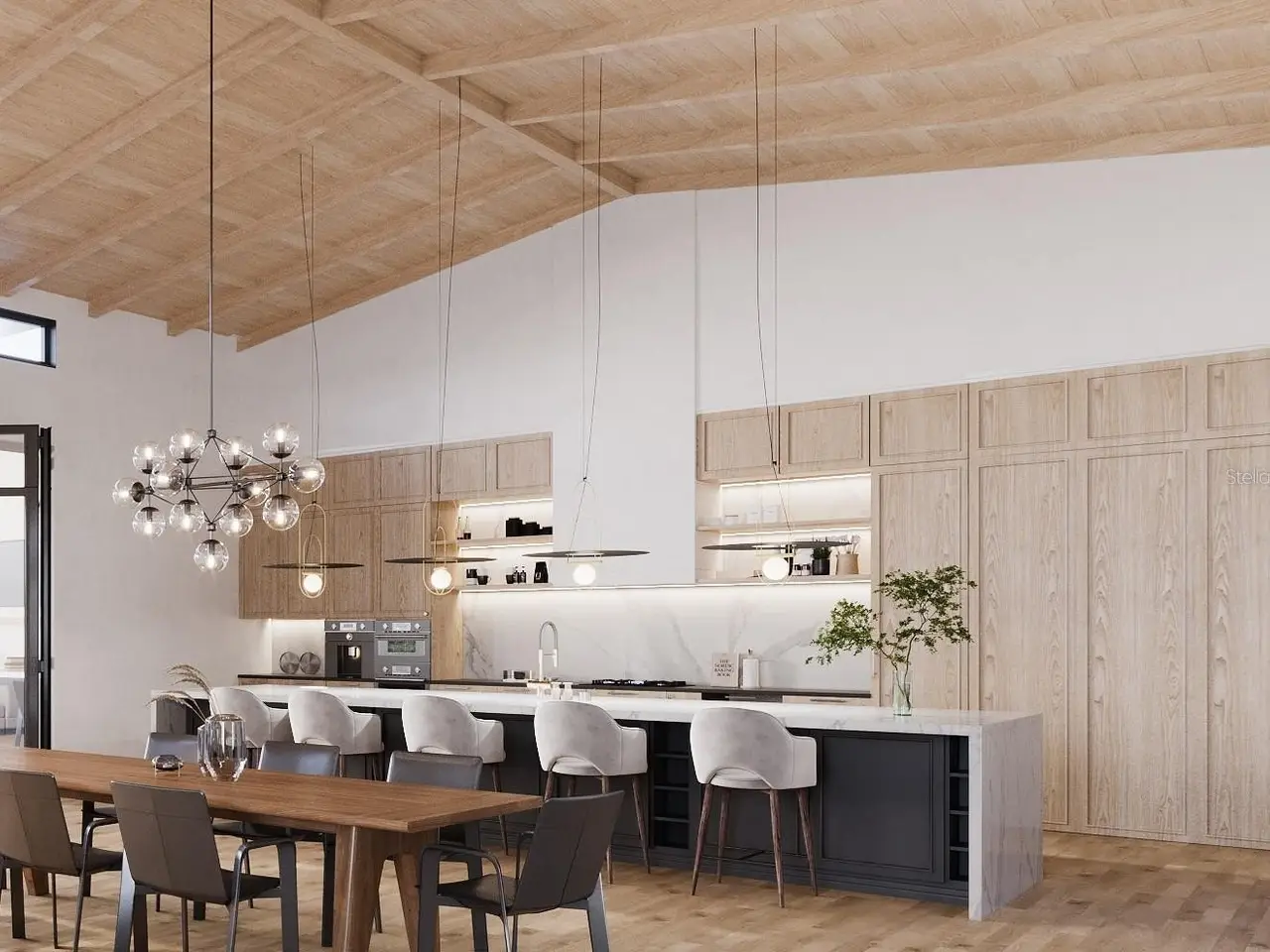 Under Construction. Introducing a Masterpiece of Modern Transitional Design, where sophistication meets functionality, and a striking white brick façade greets you with undeniable curb appeal. This unique property offers the rare convenience of ONE-LEVEL LIVING, featuring a beautifully designed CASITA and a spacious 3-CAR GARAGE. Crafted through a remarkable collaboration between Batia Construction and Basso Homes, this residence exudes top-notch craftsmanship and unparalleled quality. Step inside to discover timeless and modern design elements, infused with inviting warm tones throughout. The expansive great room is a true showstopper, featuring soaring 18’ vaulted ceilings with exposed beams, and clerestory windows that bathe the space in natural light. A dramatic floor to ceiling brick fireplace anchors the room, while a pocketing sliding glass wall seamlessly blends the indoor and outdoor spaces, creating the perfect setting for effortless entertaining. The sophisticated kitchen is a culinary haven, featuring a minimalist aesthetic and a very impressive appliance package that includes a 48" gas range with 6 burners, griddle & double ovens, 36" refrigerator column, 24" freezer column, 24" glass door wine refrigerator, built-in coffee machine, microwave drawer & two dishwashers. A sizeable island, sleek cabinetry including integrated wet bar and a walk-through pantry with a blended door add to the allure. The lounge/office is an architectural marvel, enclosed by walls of metal and glass, offering a unique space that can serve as a special entertainment area or a productive workspace. A private vestibule leads to the owner’s suite, a serene retreat featuring vaulted ceilings with exposed beams, a generous walk-in closet, and an elegant bath with meticulously curated decor that creates a sanctuary within your home. The second bedroom is equally impressive, with a large customized walk-in closet and a chic design en-suite bath. The third and fourth bedrooms are both spacious, each offering en-suite baths and customized walk-in closets. The laundry/mud room combines style and functionality with custom cabinetry and ample closet storage. Outside, the expansive veranda elevates outdoor living with a full summer kitchen, complete with brick accents and floating shelves, a stunning pool with double sun shelves, a spa, and a fire feature. Completing this extraordinary offering is the smartly designed casita, featuring a stylish Murphy bed, built-in Kitchenette, and a full bath. With a captivating view of the pool area, guests will be reluctant to leave this inviting retreat. Don’t miss this one-of-a-kind build on 125 x 135 lot in the esteemed tree-lined Beverly Shores/Rose Isle neighborhood, with its own neighborhood entrance to Mead Gardens and easy access to the charming shops and dining of downtown Winter Park, as well as the vibrant entertainment venues of downtown Orlando.
