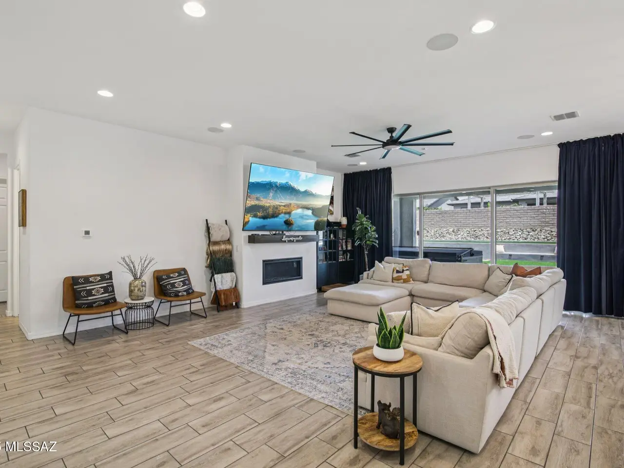 Welcome to this stunning single-story home offering 3,145 sq. ft. of beautifully designed living space. Located in the highly sought-after gated community of Rancho Vistoso, this 4-bedroom, 3-bathroom residence combines comfort, elegance, and convenience. Enjoy breathtaking mountain views from your backyard, with easy access to shopping, dining, top-rated schools, and hospitals just minutes away. Inside, you'll find an open and inviting layout perfect for both relaxing and entertaining, with high ceilings, a gourmet kitchen, and generous living spaces throughout. Whether you're hosting guests or enjoying quiet evenings, this home has it all--privacy, style, and an unbeatable location. Solar panels provide low utility bill!