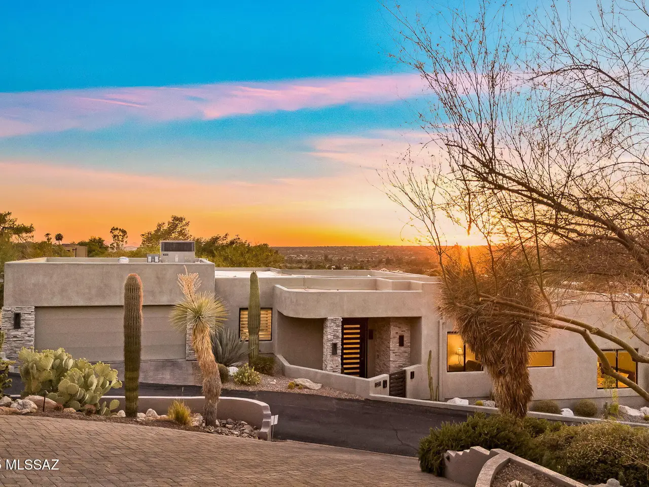 Contemporary desert retreat perched on quiet hillside w/sweeping city & golf course views offers rare privacy & elegance without the restrictions of an HOA. Designed for modern living & entertaining w/clean architectural lines that blend seamlessly w/natural landscape for exceptional curb appeal. Step inside to discover light-filled open spaces w/soaring ceilings, sophisticated finishes & versatile floorplan that invites relaxation or gatherings w/friends. Expansive living area flows to chef's kitchen & dining area while comfortable lounge spaces make everyday living feel special. Exceptional primary suite hosts luxurious bath, kitchenette, custom closet & private patio access all w/valley views. But the true magic is outside-generous patios & terraces expand your living area dramatically