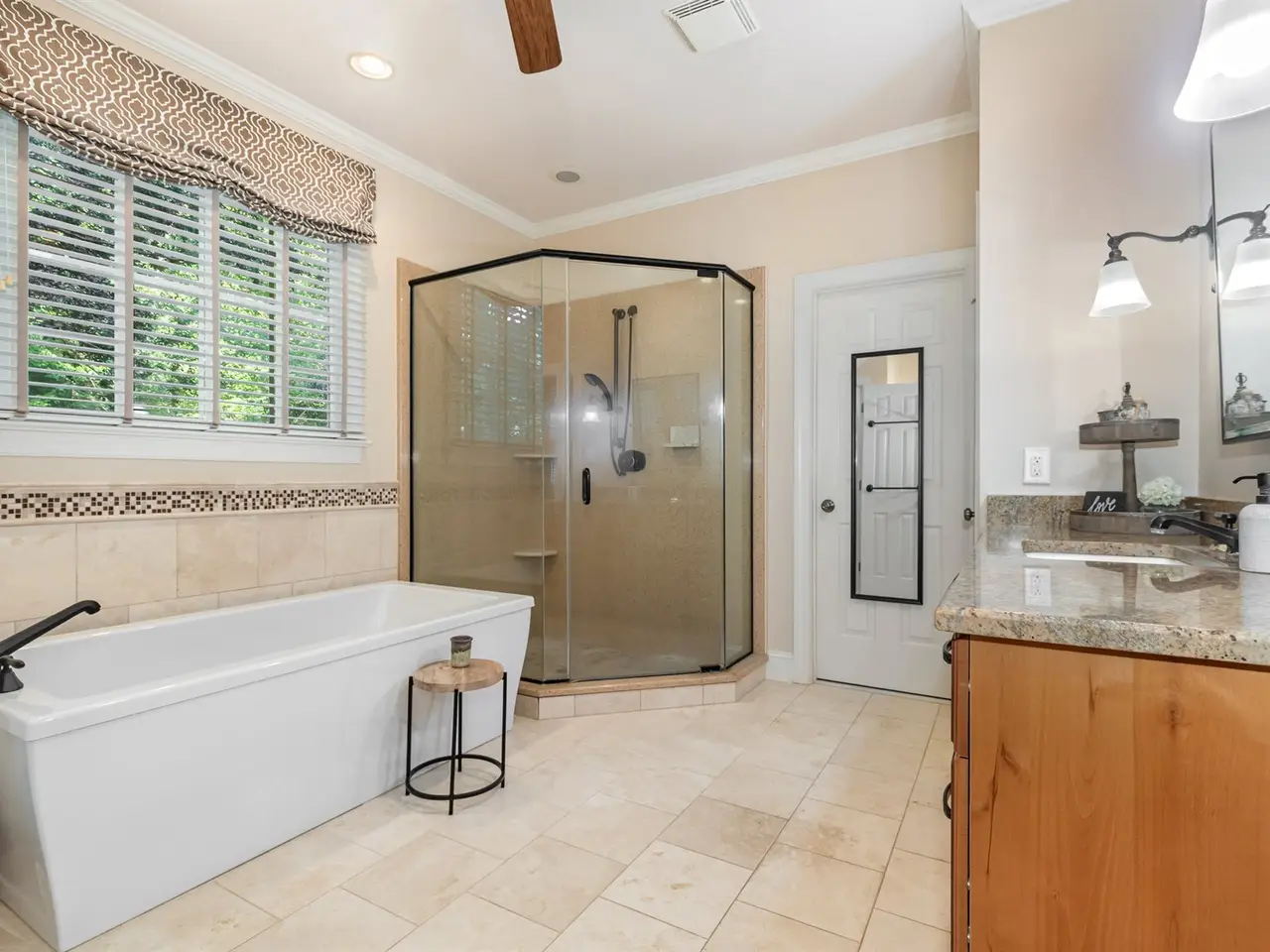 Suite parentale au rez-de-chaussée avec salle de bain de type spa