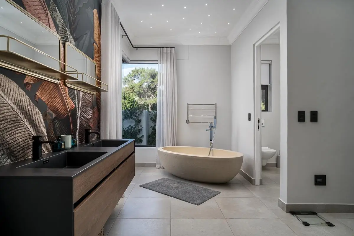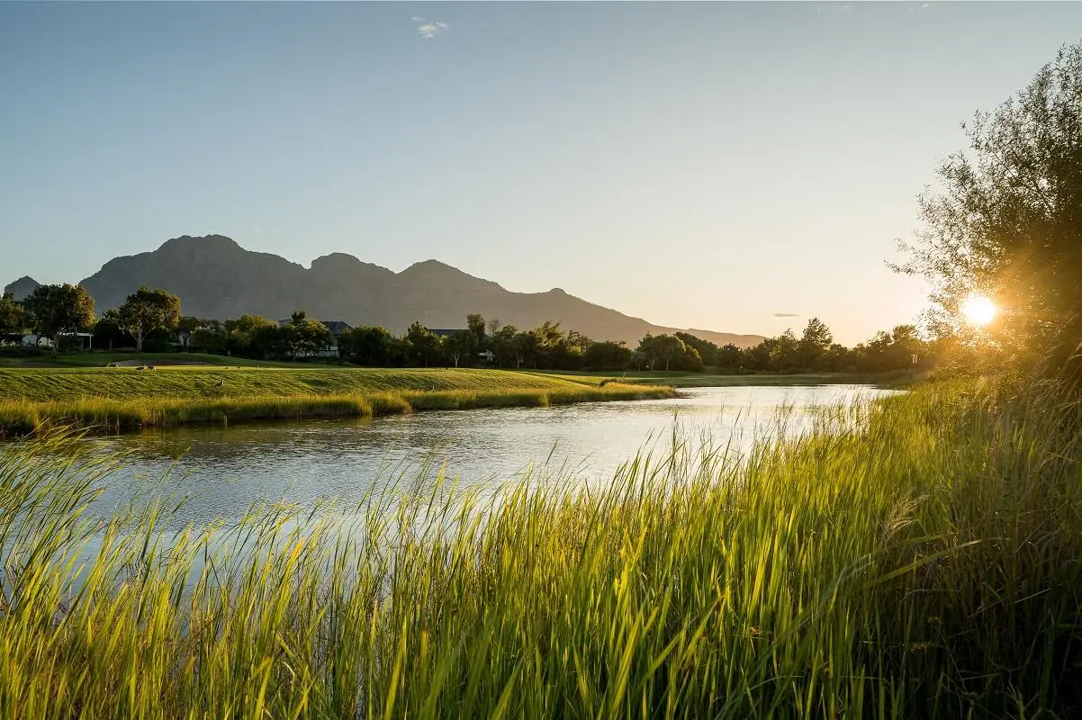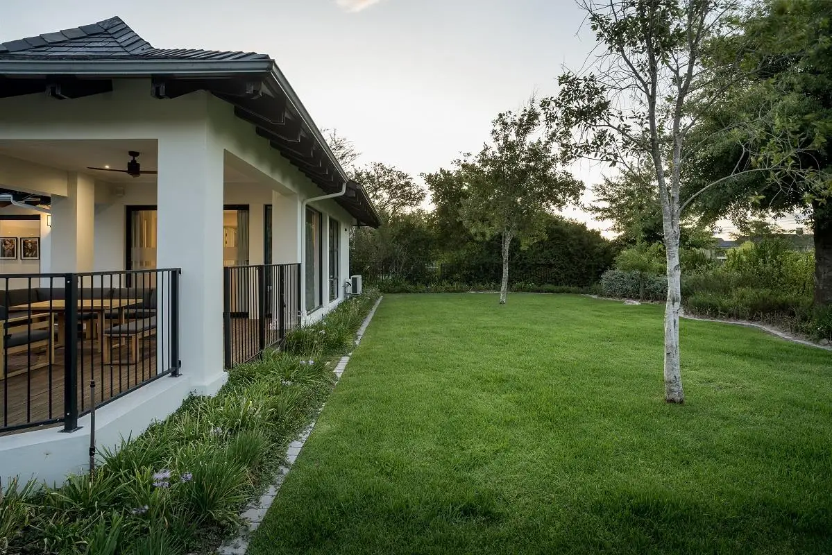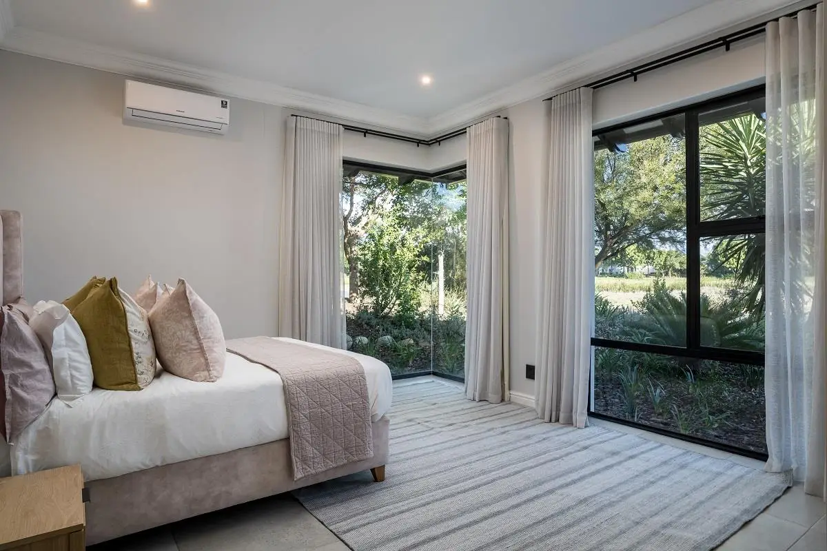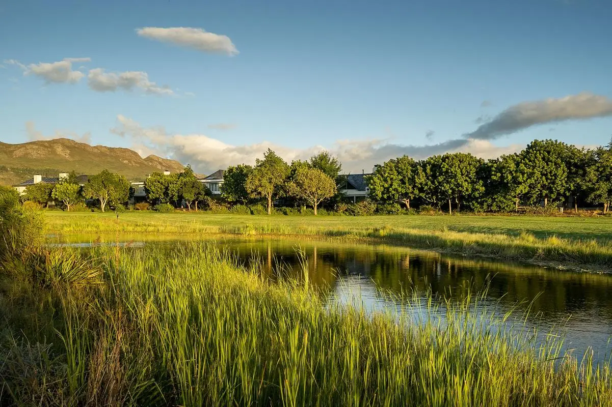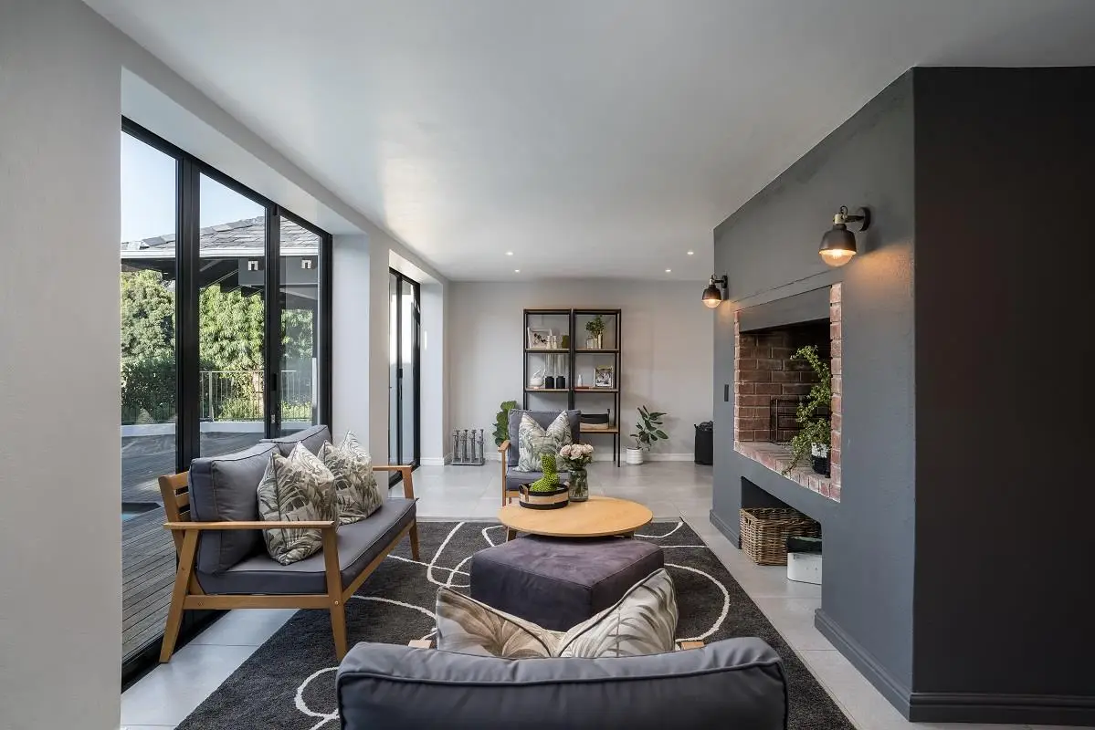 THIS BEAUTIFUL MODERN PROPERTY EPITOMISES WHAT ONE WOULD CALL A FAMILY HOME Stylishly renovated, this single level North facing home is well positioned on a corner stand with privacy and beautiful views towards the open green spaces of fairways and the members driving range. A welcoming entrance of a canopied lush garden leads to the front door. On entering the home the openness, lightness, modern clean lines and finishes give a fresh appeal and a feeling of space. The living space is designed for entertaining with a seamless flow from the well designed kitchen, the dining and lounge areas to glass stacking doors which open to a wooden deck and pool. An indoor braai, perfect for summer and winter use, completes this space and a covered area on the wooden deck adds an additional seating area with all flowing so well together to make the perfect spaces for family living and for entertaining. This beautiful home offers 4 well sized bedrooms all with ensuites, a large audio visual room, a study, a guest cloakroom, spacious open plan living areas and kitchen, utility room, triple garage, staff accommodation, invertor system, solar geyser and a well established garden. A rare opportunity to own a fully renovated and well positioned family home within the exclusive Pearl Valley Golf Estate.