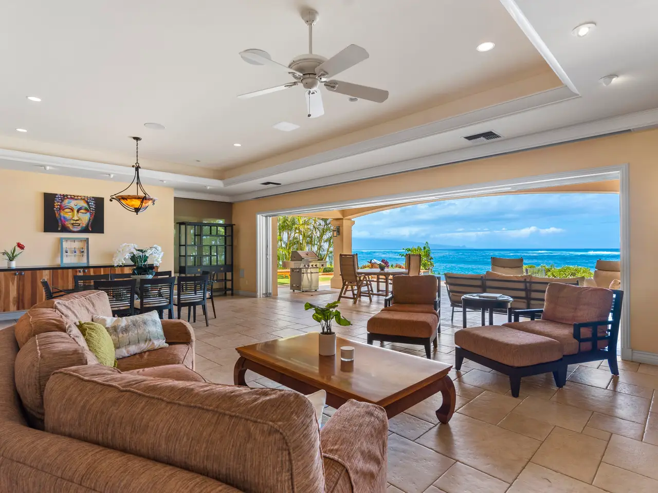 LUXURY PROPERTY AUCTION: OCTOBER 30 TO NOVEMBER 13. Accepting Starting Bids Through 29 October. Starting Bids Expected Between $4M-$5.5M. Earn an incentive by 29 October. An extraordinary North Shore Maui estate where luxury meets oceanfront living in the bohemian enclave of Paia. This intelligently designed four-bedroom residence showcases seamless indoor-outdoor flow through Fleetwood pocket doors that open to a resort-style infinity pool and hot tub. Wake to mesmerizing ocean vistas and West Maui Mountain panoramas while waves serenade from the primary suite. Advanced home automation controls lighting and sound throughout, creating effortless entertaining environments. The private beachfront setting offers direct oceanfront access to premier surf breaks and paddling adventures. Guest quarters above the two-car garage feature a separate entrance and ocean-view lanai. Security gates and cameras ensure complete privacy while tropical landscaping enhances the authentic island setting.The co-listing agent is a licensed Realtor in Hawaii and a manager of the LLC that owns this property.