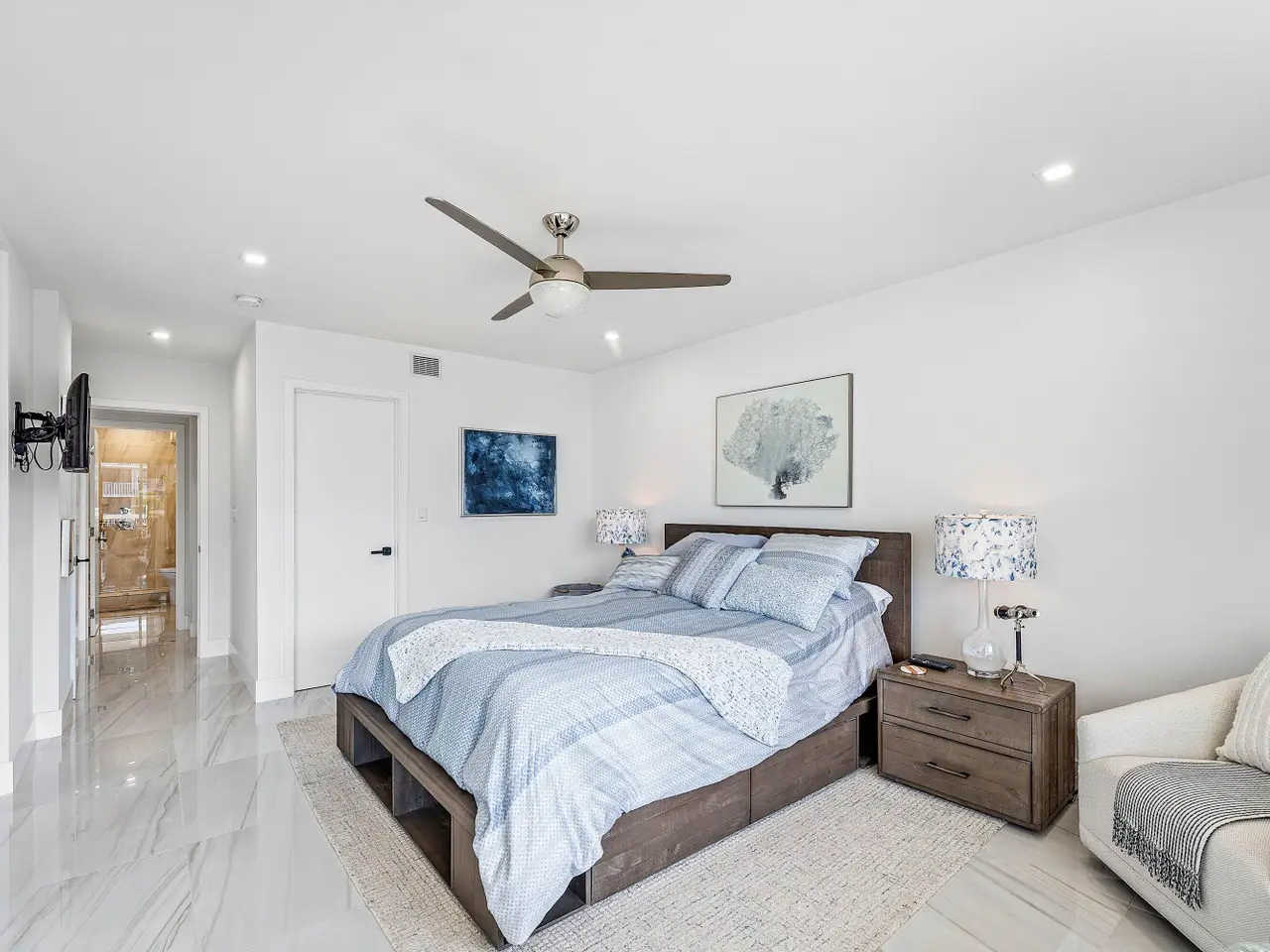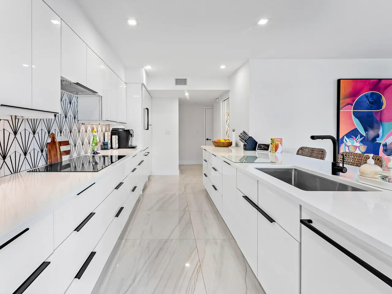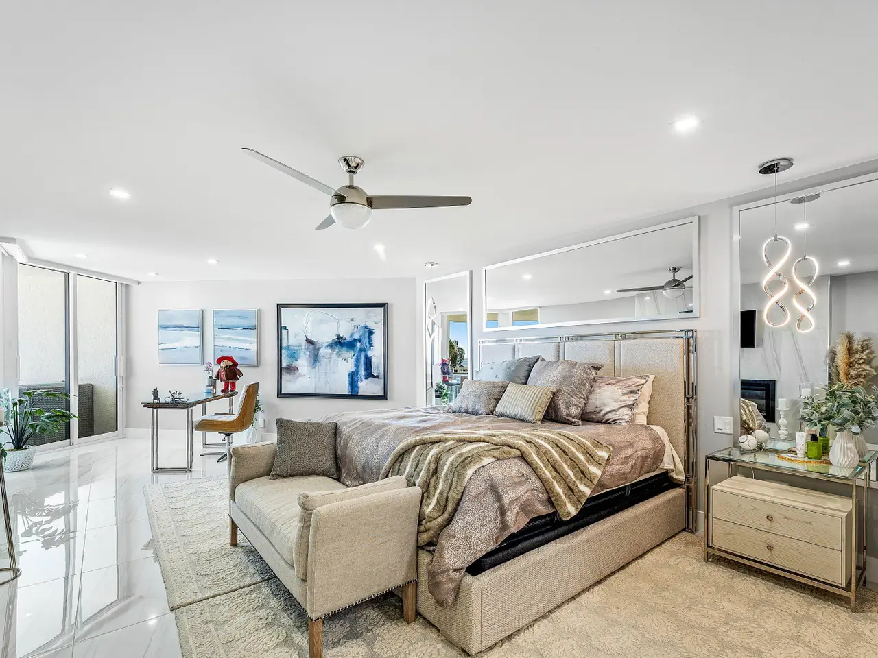 Sun filled ocean views from this completely renovated, spacious and pristine 2BR/2BA residence in the highly desirable Meridian, Palm Beach. Floor-to-ceiling impact sliders open from every room to a large private terrace overlooking the shoreline. Nearly 2,000 sq. ft. of updated interior living space includes a gracious foyer, separate dining area, and a well-appointed kitchen with breakfast bar and excellent storage. Split-bedroom layout provides privacy, both with walk-in closets and terrace access. The Meridian offers newly updated resort-style amenities: redesigned pool & spa, beach chair/umbrella service, tennis, fitness center, social room, garage parking, 24-hour gatehouse, and on-site maintenance. Enjoy luxury coastal living!