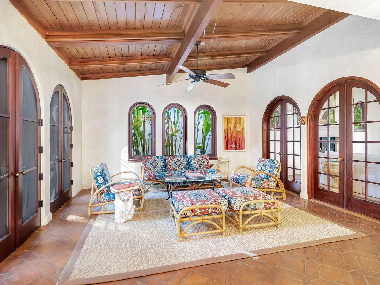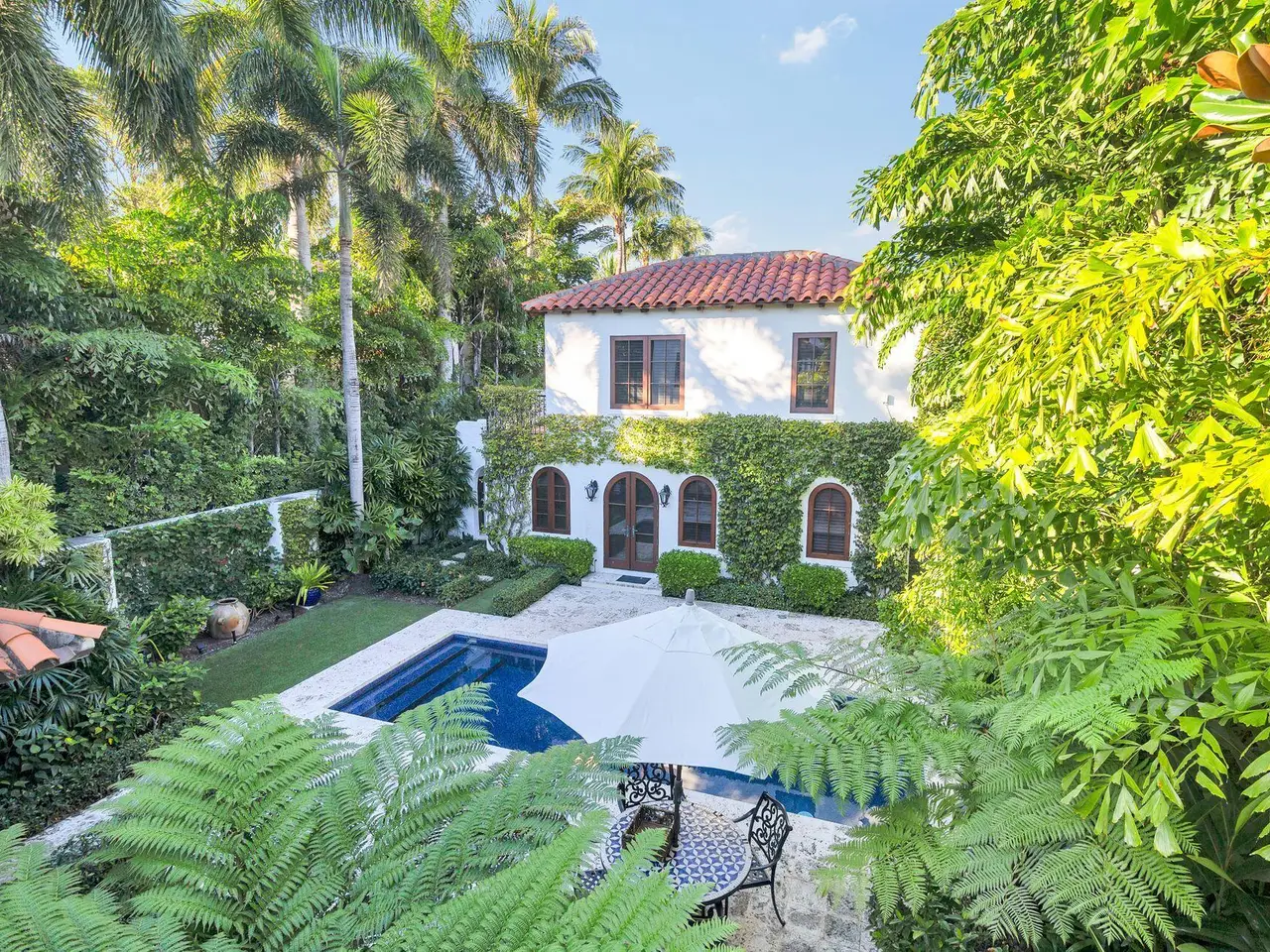 Preservation Foundation's Polly Earl Award winner, ''Tradewinds'', masterfully restored to a modern day version of Architect Maurice Fatio's iconic design. This in-town lushly landscaped private oasis boasts three coquina stone courtyards providing a seamless entertainment flow. The pecky cypress ceiling heights soar in the main salon with gas fireplace and original stone floors. The Primary Suite and two Guest Suites are located in the main home and the two-story Guest House, adjacent to the pool courtyard, is complete with two Guest Suites and an open concept Kitchen, Dining and Living area. Sold partially furnished.