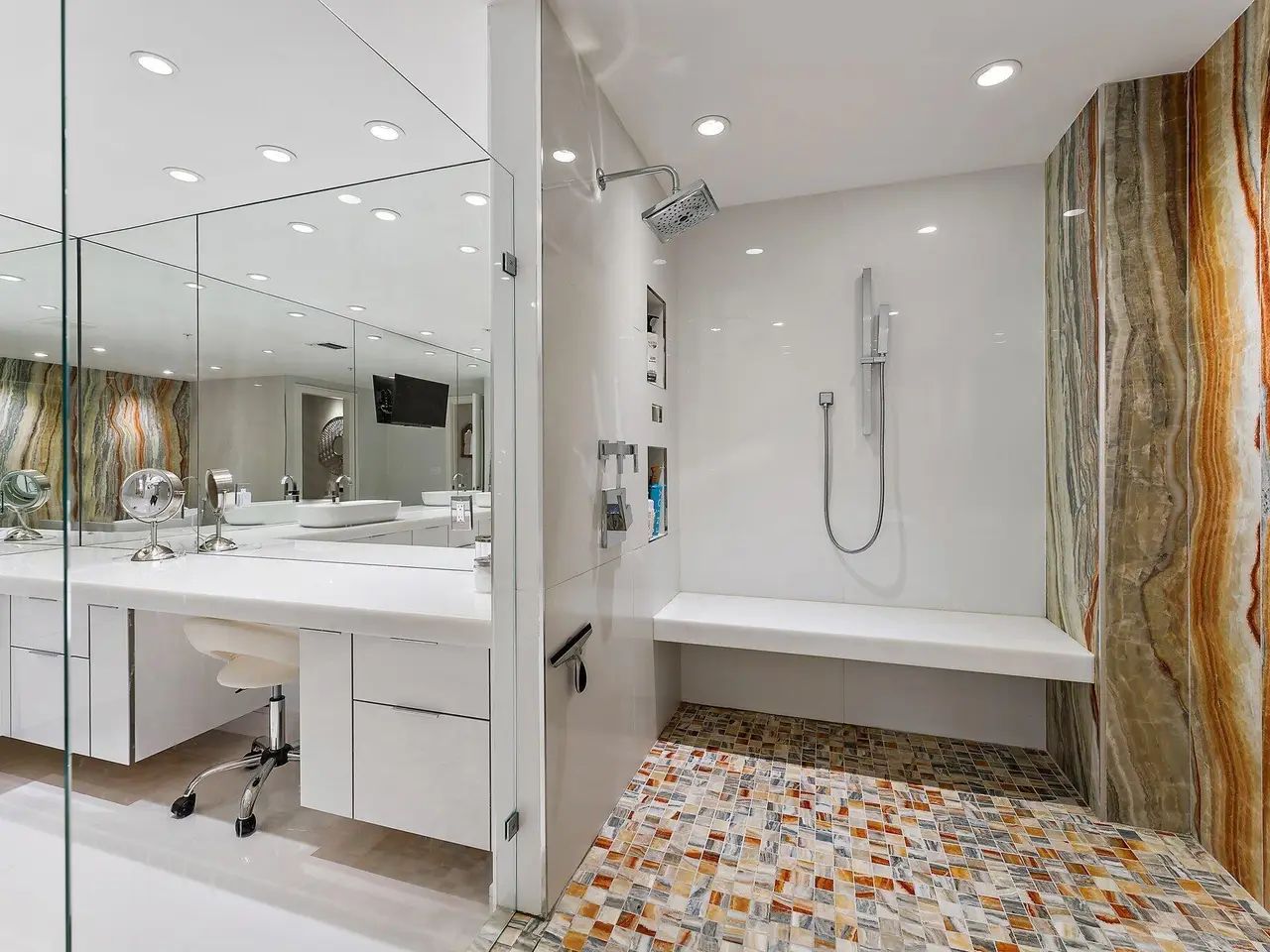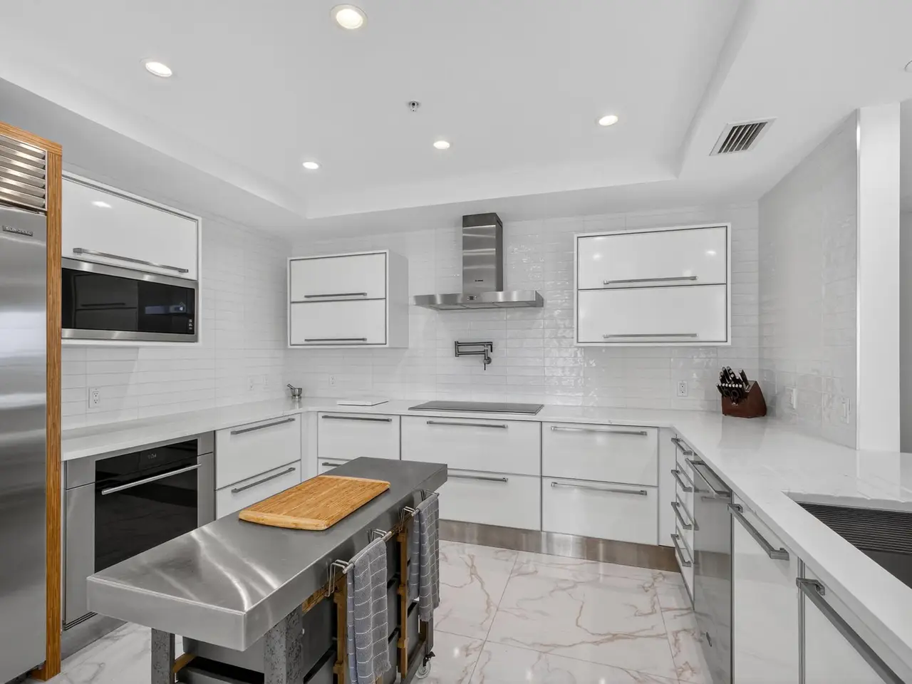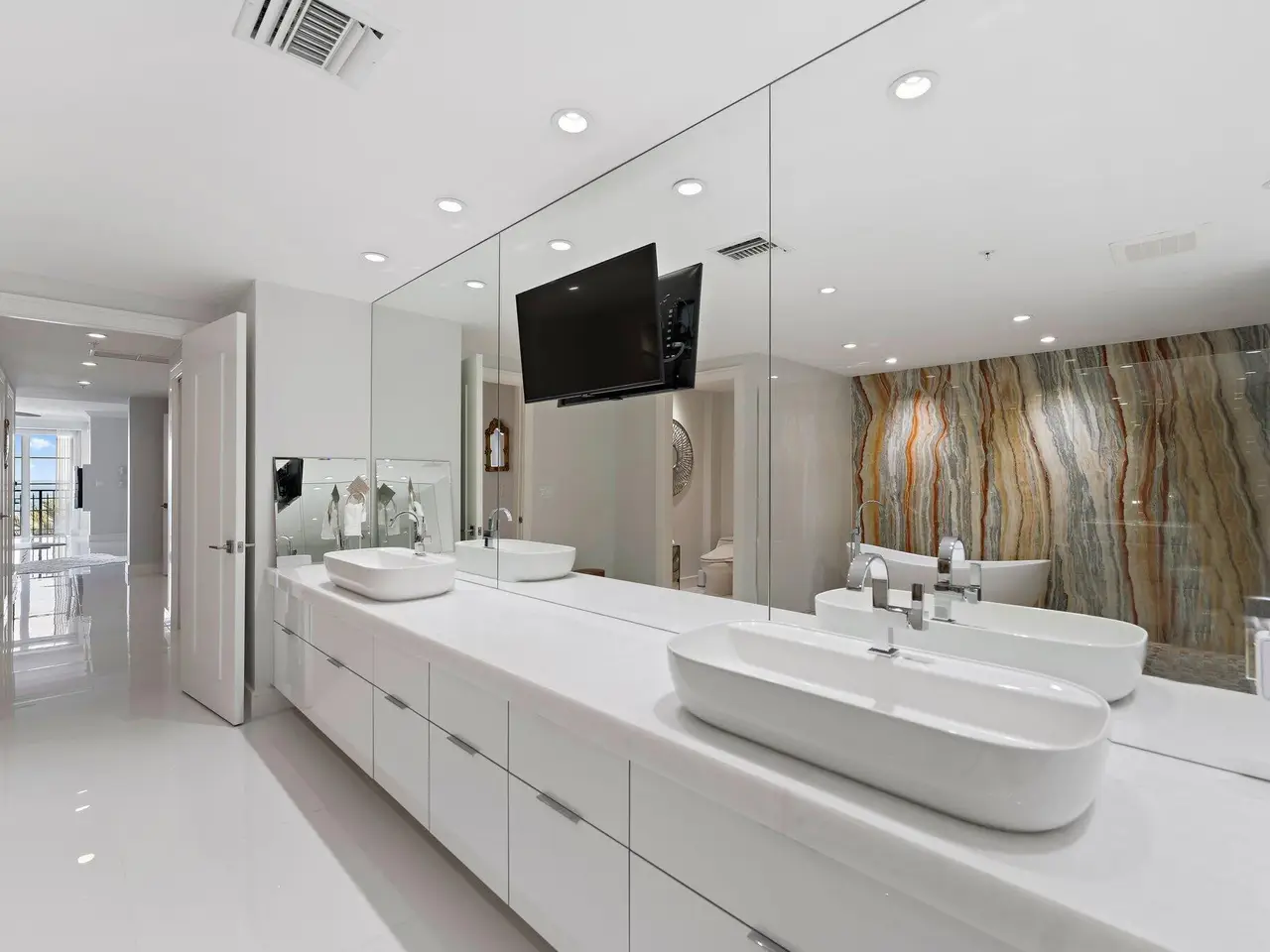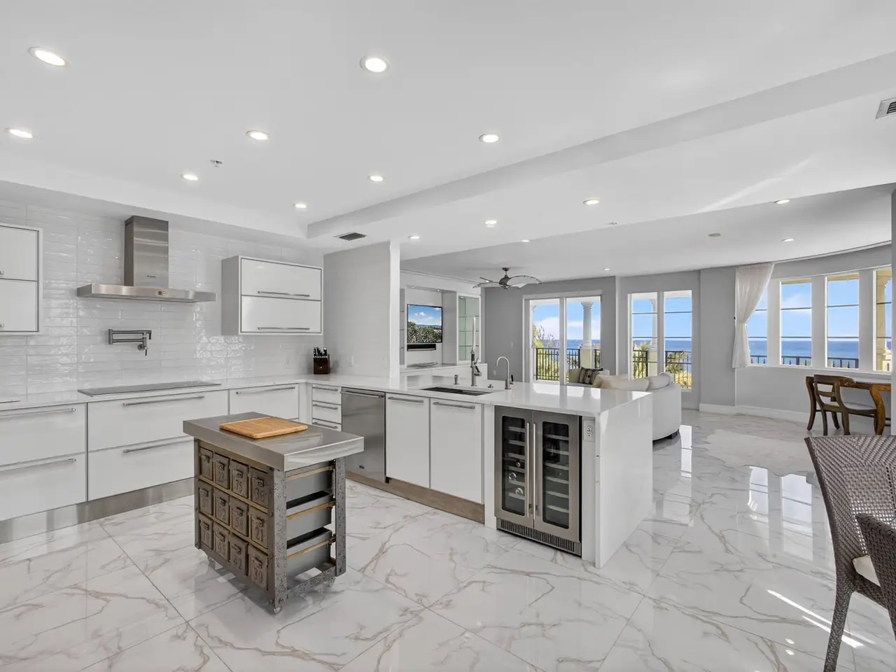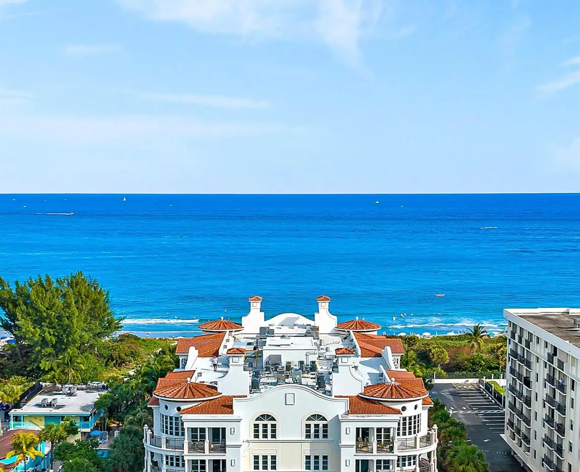 The finest oceanfront condominium in Palm Beach Shores. Exquisite, luxury boutique building with only 34 residences! Rarely available 3/3.5 SE corner w/3,295 a/c sf and 771 sf of covered balconies. Breathtaking ocean views! This gracious, move-in ready residence has been the recipient of recent high-end renovations, including: Kitchen remodel w/Sub-Zero, Wolf & Cove appliances, primary suite/bathroom remodel, custom living & dining room built-ins, large format porcelain floors, powder rm & secondary baths upgrades. A/C units (2019). Resort-style amenities, including an amazing South Beach-style pool area. 150' of deep, sandy beach w/+/- 280' dune. 2 garage spaces, EV charging stations. Reserve Study Completed! No Assessments! Only 7 mi to Palm Beach, 13 mi to PBIA!