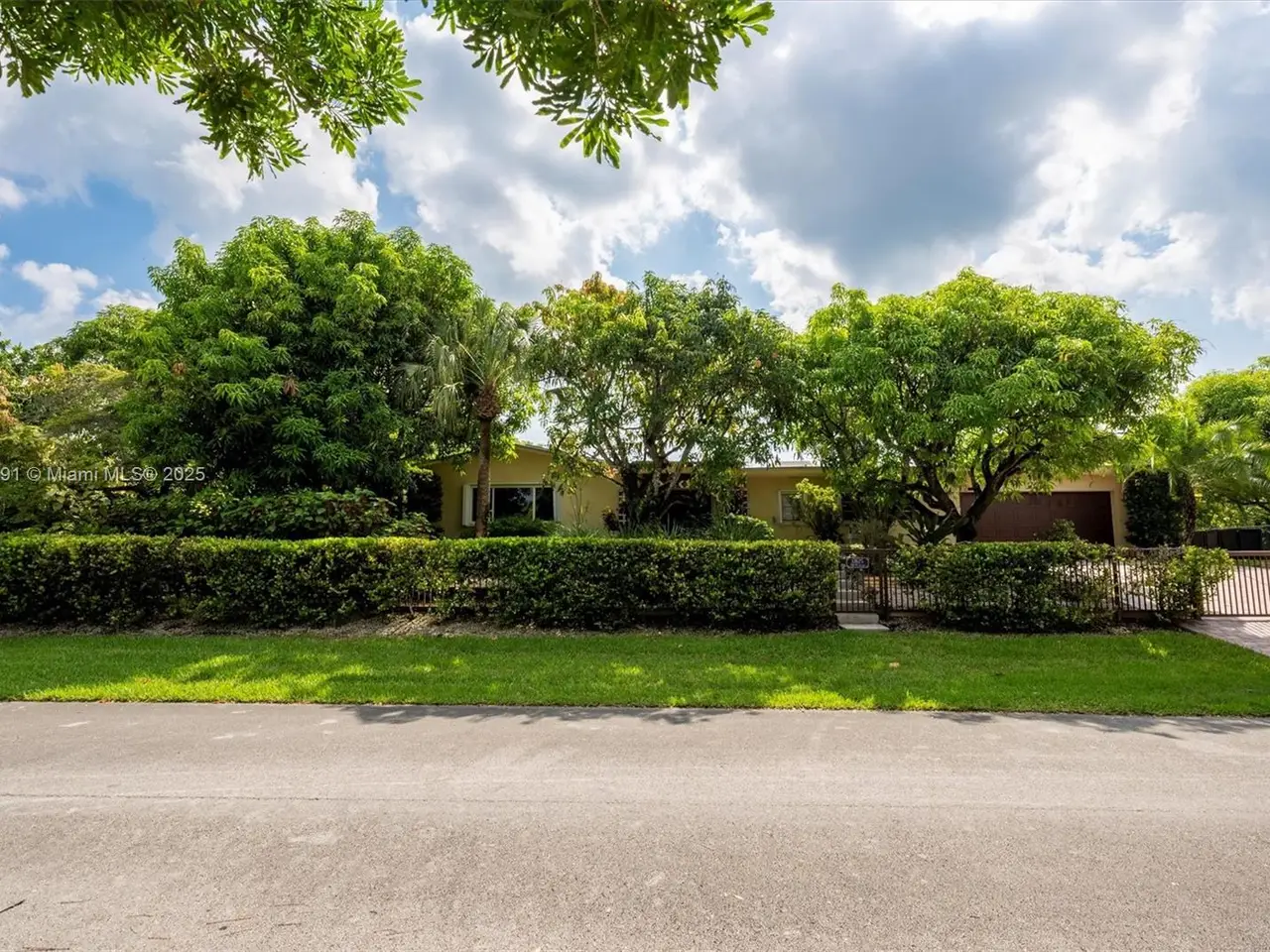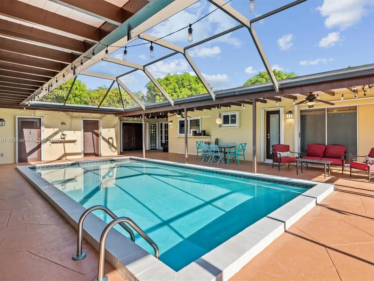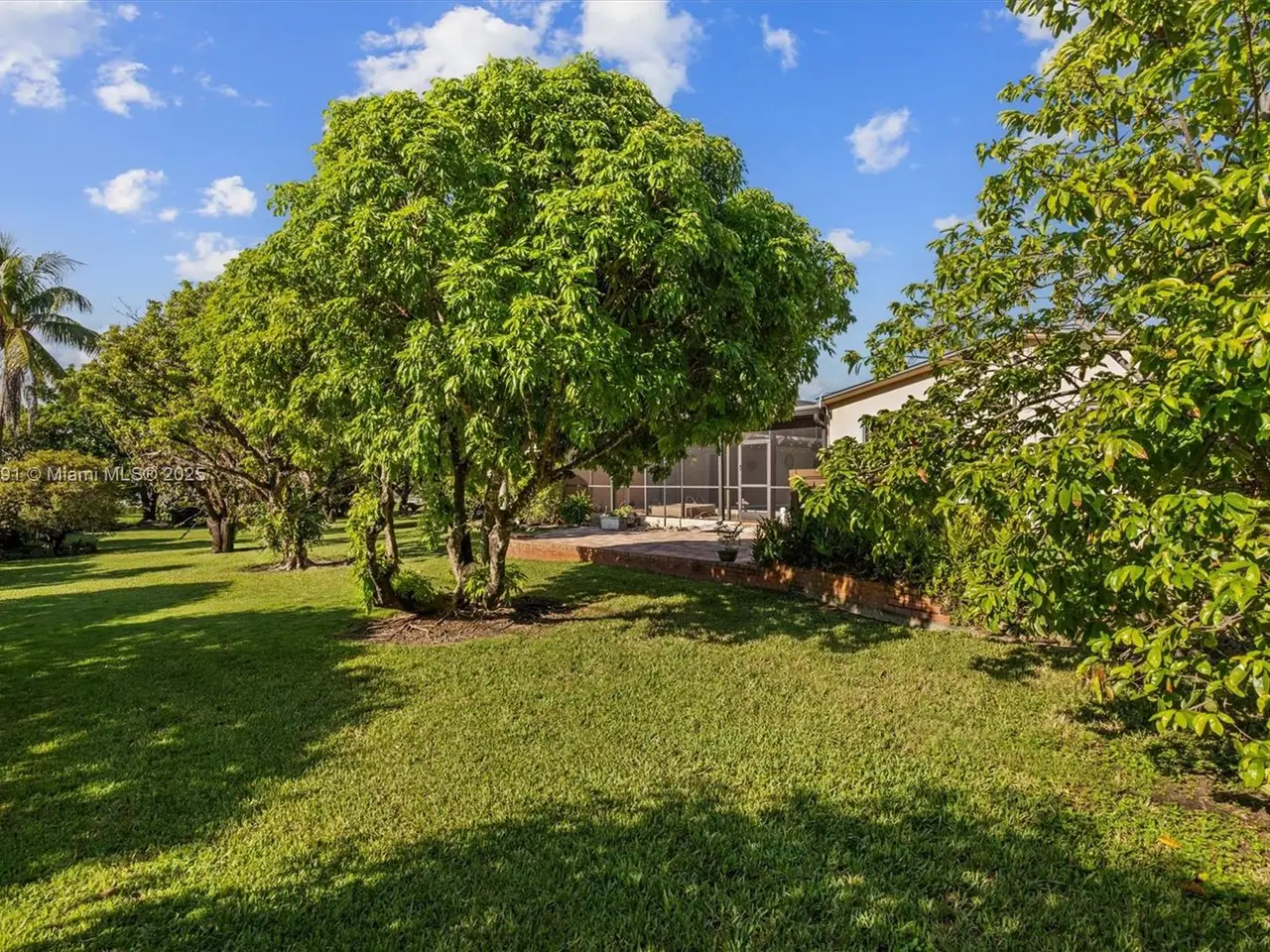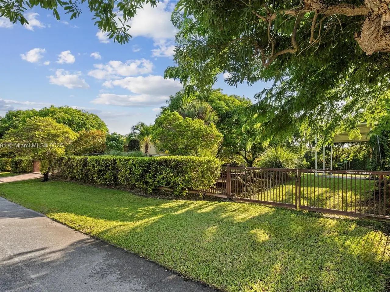 No HOA!! Not Flood Zone (X), 2019 Main House Metal Roof & Solar Panels. Garden Paradise in over 1/2 acre of land (25,200 sqft), Mango, Avocado, Lychee, Longan trees to enjoy nature privately. Beautiful 1-story house, 3 bedr./2 bath in Main House (3rd bedr. currently open office). Separate Guest House or In-Law Quarters with 1 bath & living room. Both structures built around a 6 Foot Saltwater & Heated Pool, screened w/outdoor sitting area & quartz counter extending from kitchen into pool area to enjoy with family. Remodeled kitchen with cathedral ceiling, quartz counter tops, stainless steel appliances, 3 tier lighting, 2 garage, auto sprinkler, impact glass main house, accordion shutters double protection, wood carved front door, 2022 A/C, space for boat. Great Schools & Close to Palmetto Bay Park.