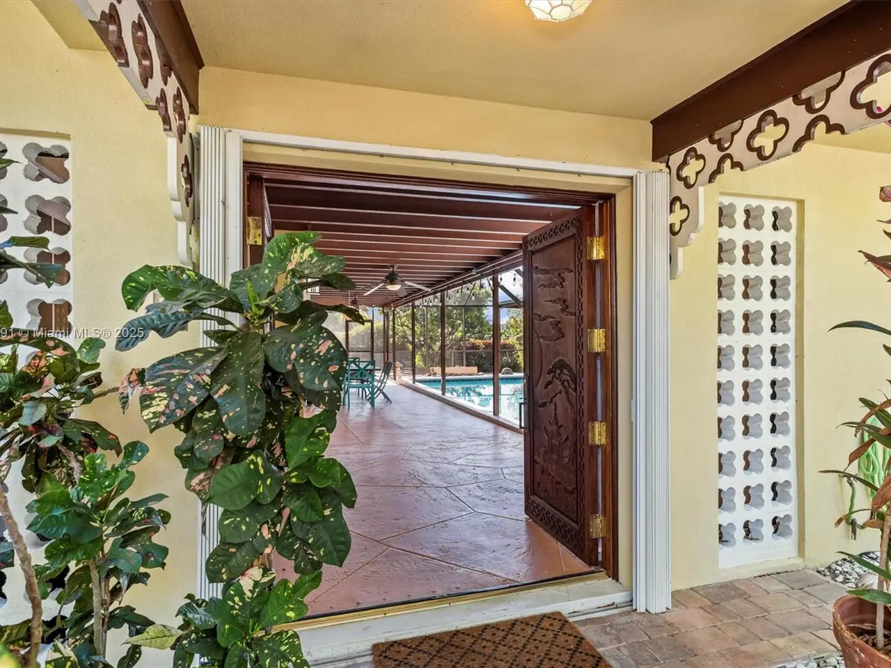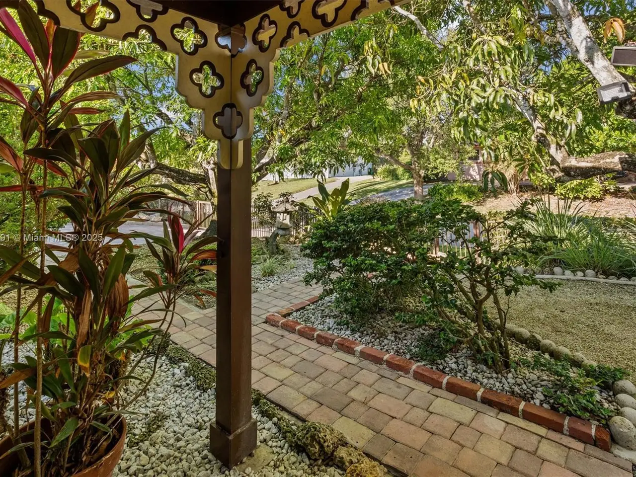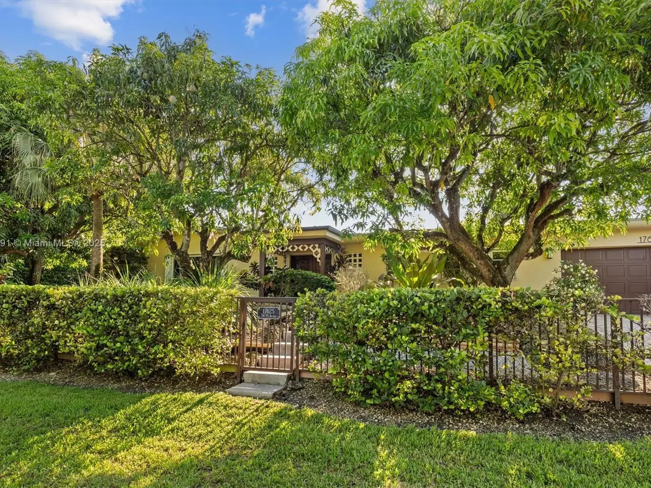 No HOA!! Not Flood Zone (X), 2019 Main House Metal Roof & Solar Panels. Garden Paradise in over 1/2 acre of land (25,200 sqft), Mango, Avocado, Lychee, Longan trees to enjoy nature privately. Beautiful 1-story house, 3 bedr./2 bath in Main House (3rd bedr. currently open office). Separate Guest House or In-Law Quarters with 1 bath & living room. Both structures built around a 6 Foot Saltwater & Heated Pool, screened w/outdoor sitting area & quartz counter extending from kitchen into pool area to enjoy with family. Remodeled kitchen with cathedral ceiling, quartz counter tops, stainless steel appliances, 3 tier lighting, 2 garage, auto sprinkler, impact glass main house, accordion shutters double protection, wood carved front door, 2022 A/C, space for boat. Great Schools & Close to Palmetto Bay Park.