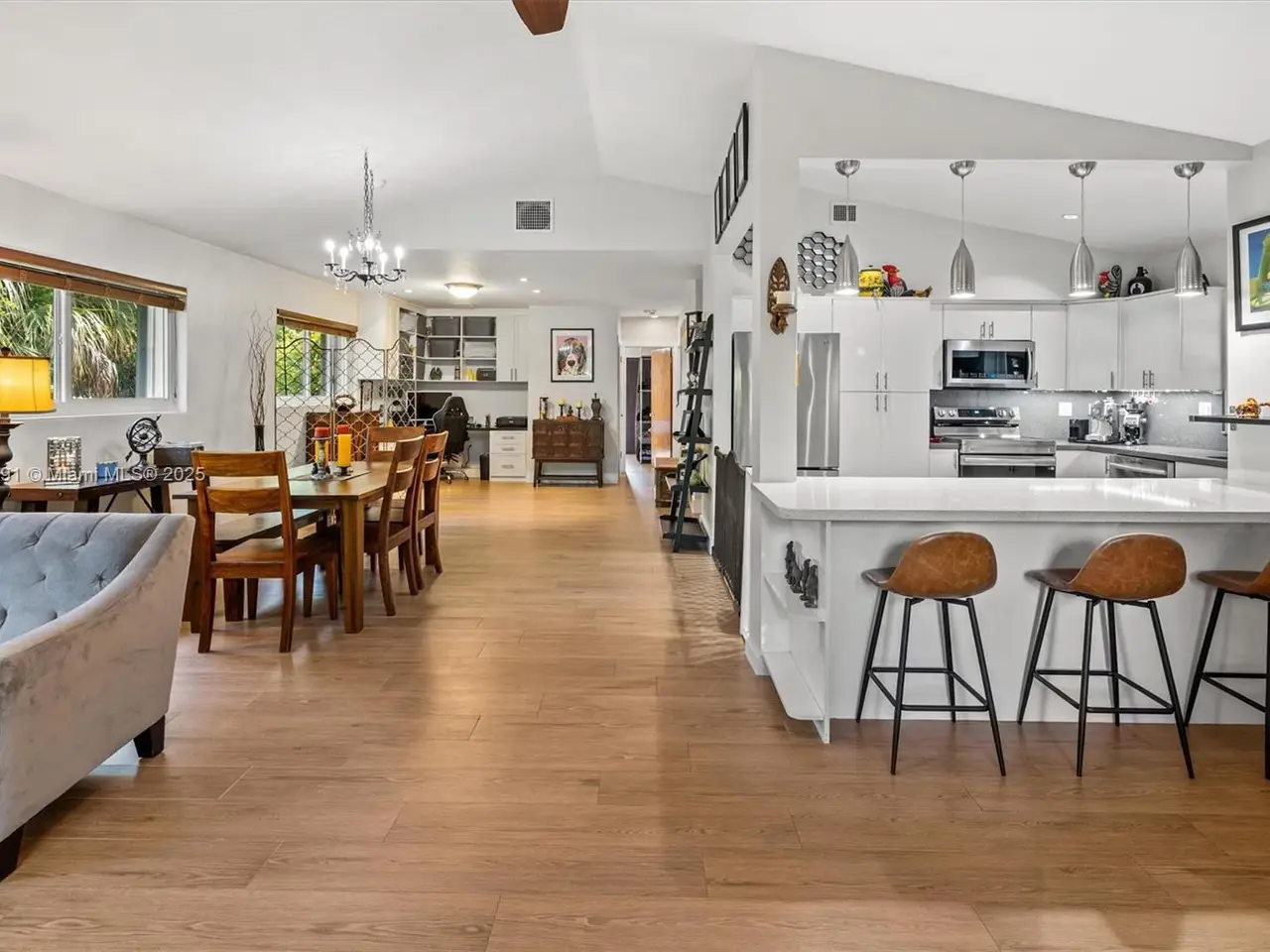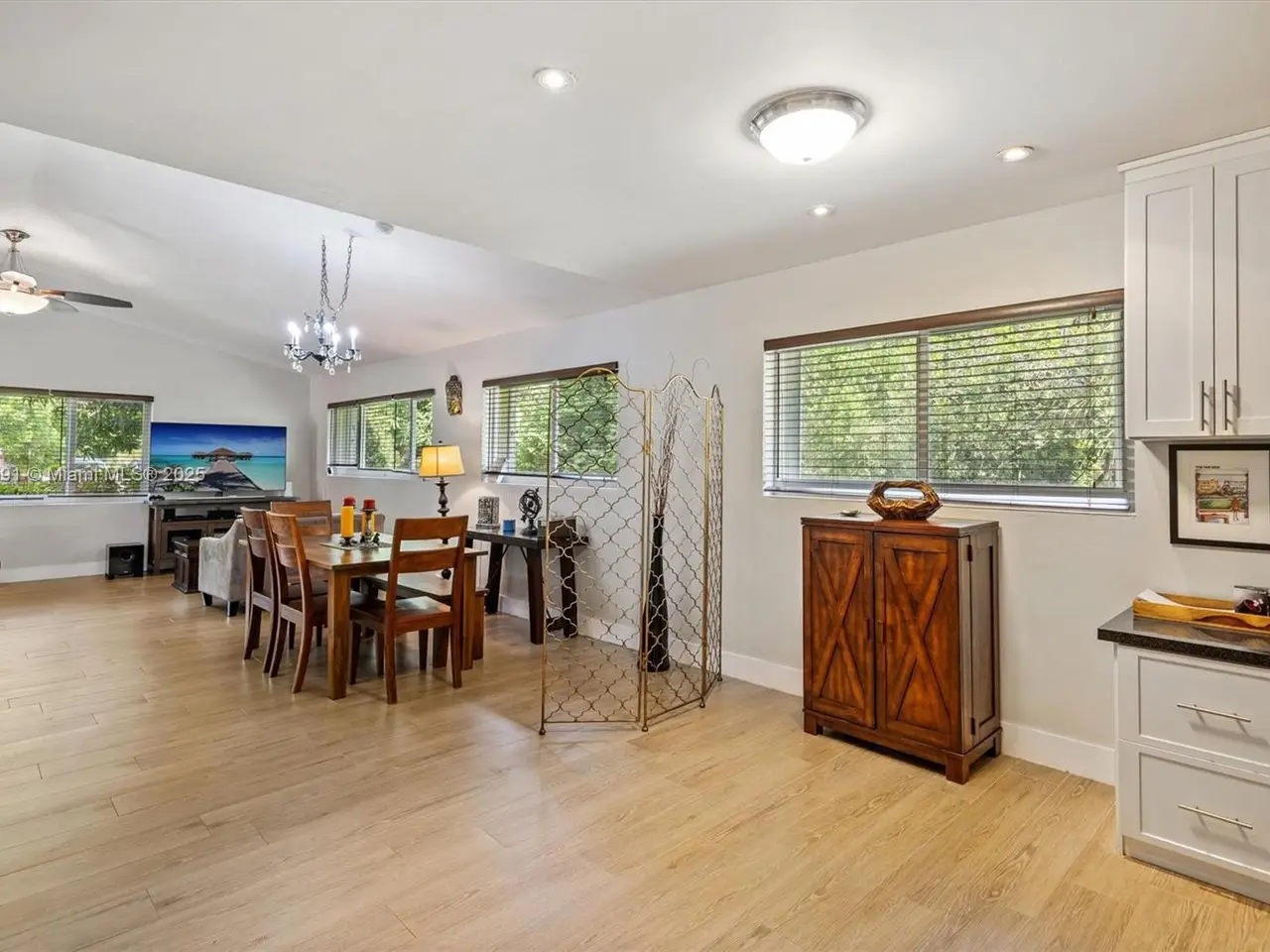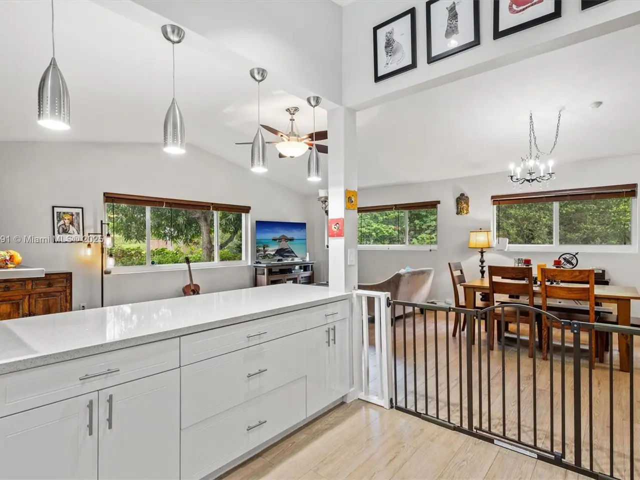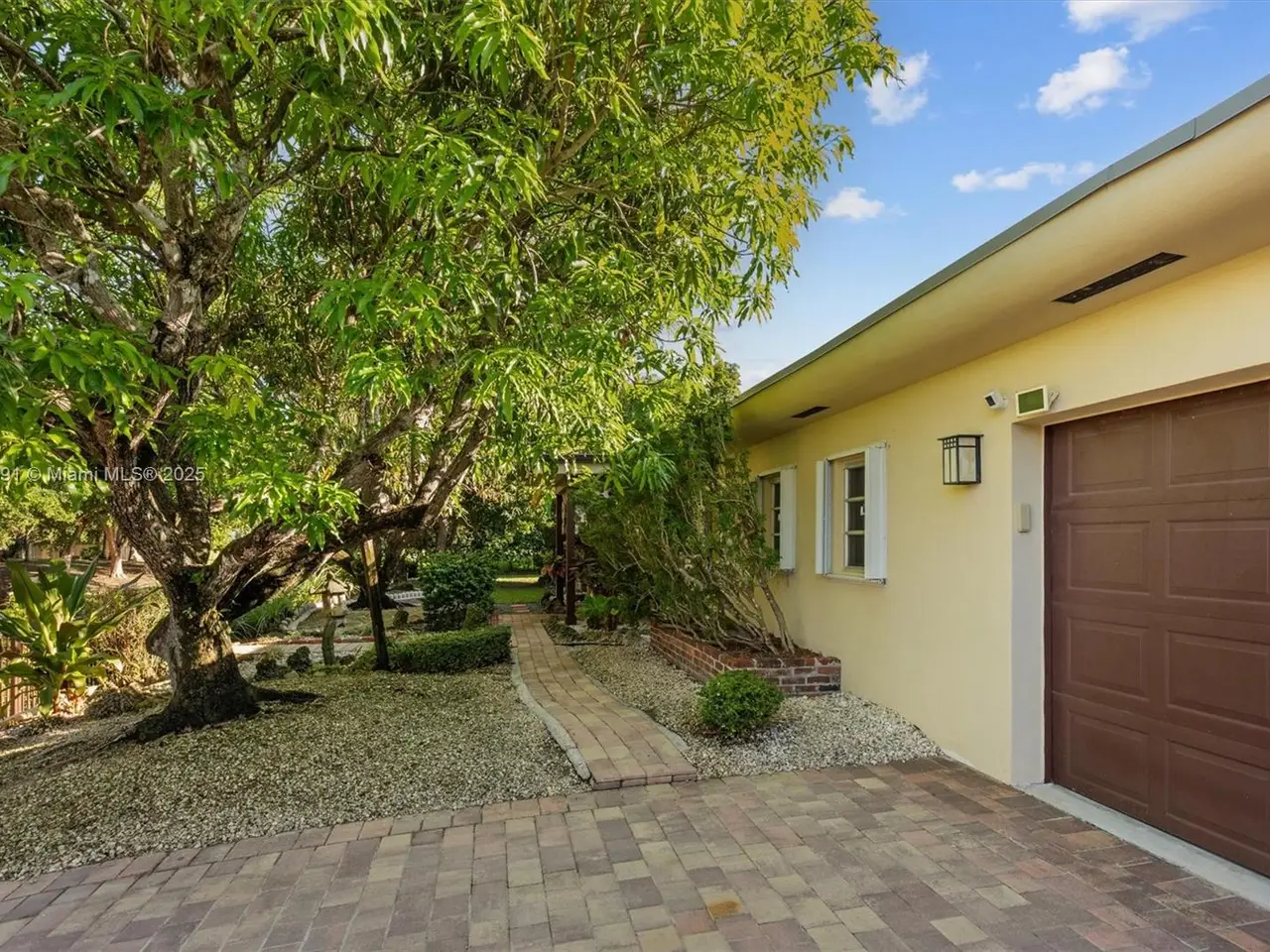 No HOA!! Not Flood Zone (X), 2019 Main House Metal Roof & Solar Panels. Garden Paradise in over 1/2 acre of land (25,200 sqft), Mango, Avocado, Lychee, Longan trees to enjoy nature privately. Beautiful 1-story house, 3 bedr./2 bath in Main House (3rd bedr. currently open office). Separate Guest House or In-Law Quarters with 1 bath & living room. Both structures built around a 6 Foot Saltwater & Heated Pool, screened w/outdoor sitting area & quartz counter extending from kitchen into pool area to enjoy with family. Remodeled kitchen with cathedral ceiling, quartz counter tops, stainless steel appliances, 3 tier lighting, 2 garage, auto sprinkler, impact glass main house, accordion shutters double protection, wood carved front door, 2022 A/C, space for boat. Great Schools & Close to Palmetto Bay Park.