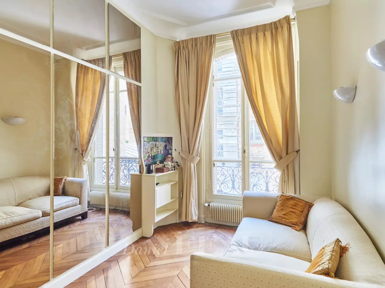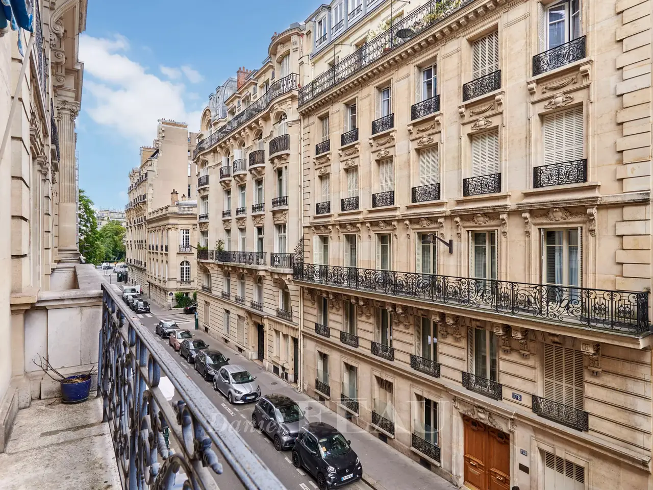 Place Victor Hugo/Rue de la Pompe. This elegant apartment with balconies is on the 2nd floor of a fine freestone building. An entrance hall leads to a living/reception room with a dining room, a separate kitchen with dining facilities, two bedrooms and a bathroom. Period features include high ceilings with mouldings, parquet flooring and fireplaces. With a cellar. Sold furnished.