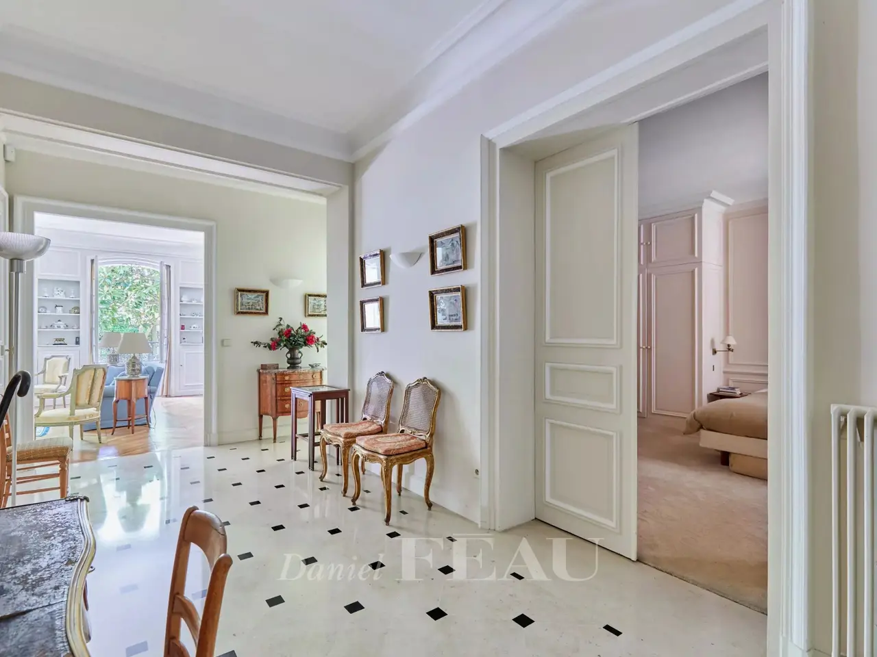 Avenue Henri Martin. This garden-level apartment bathed in sunshine is in a prestigious Haussmannian building with elegant common areas. An entrance hall leads to a double living/reception room opening onto a south-facing landscaped garden, a kitchen with dining facilities, a bedroom overlooking the garden, a bathroom and a second bedroom. With an 8.75 sqm maid’s bedroom, a 6.25 sqm storage room and a cellar.