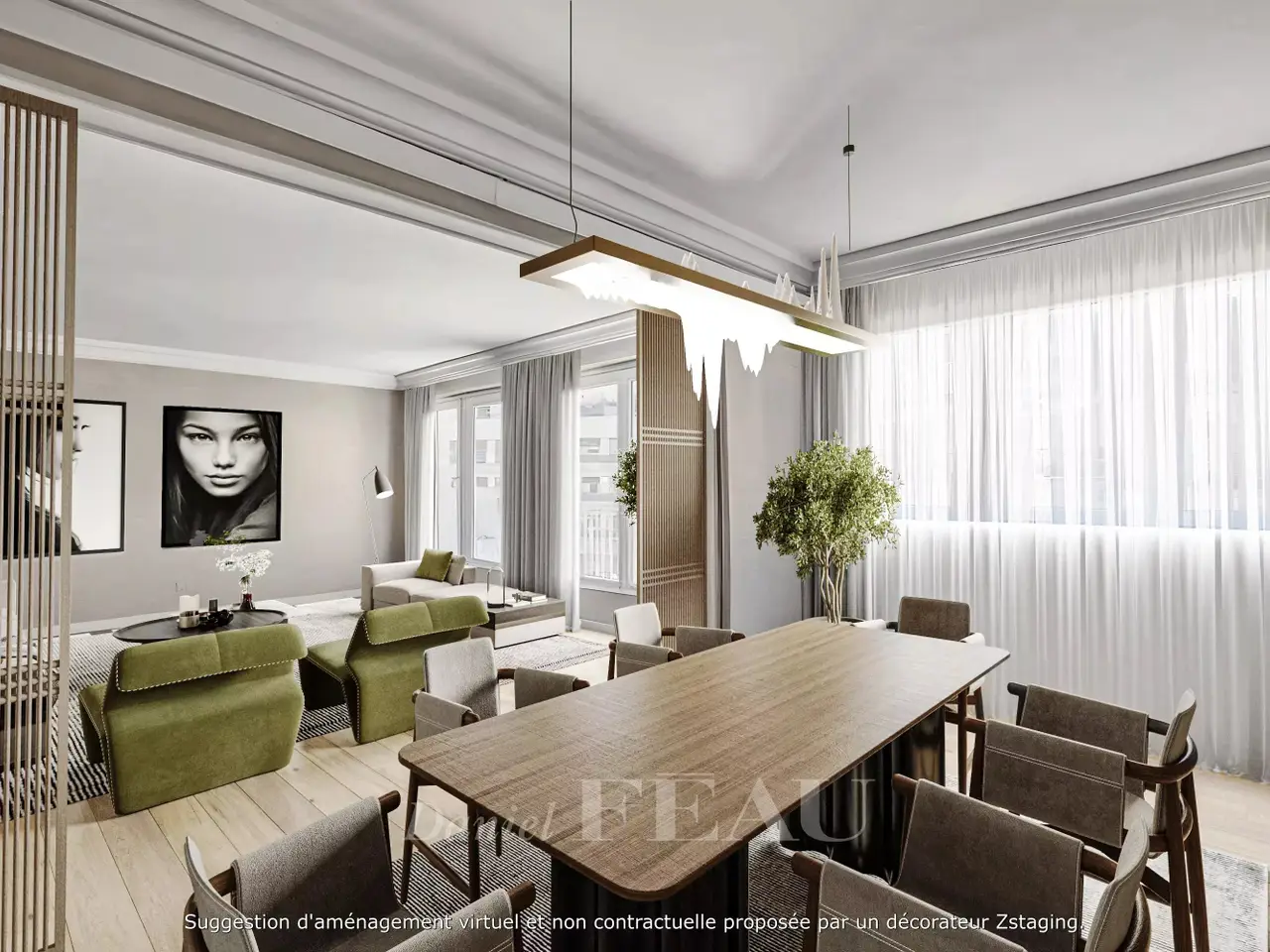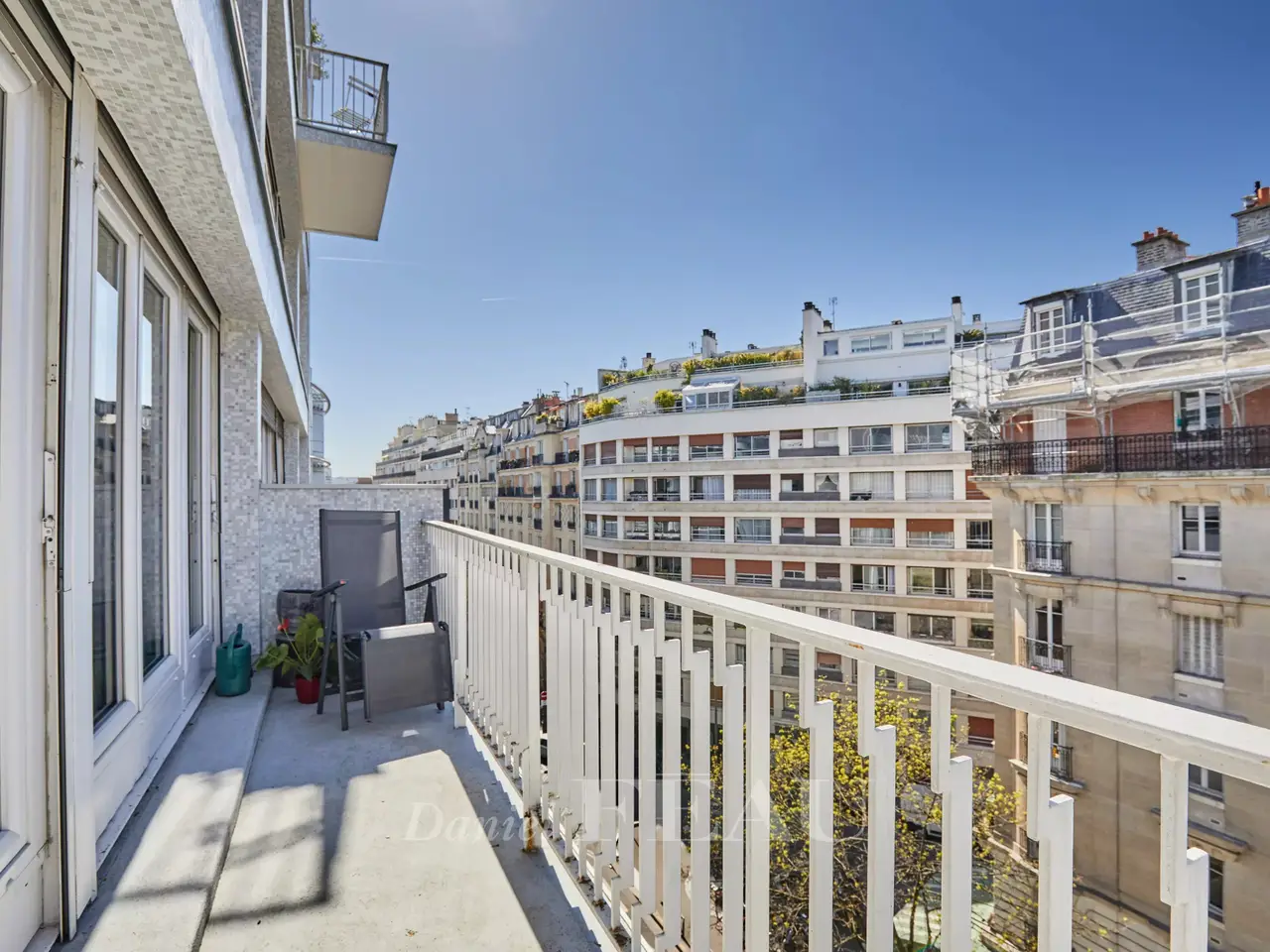 Sole Agent. Auteuil South, Exelmans neighbourhood. This bright 128 sqm family apartment is on the 6th floor of a well-maintained mid 20th century building. It includes a double living/reception room opening onto a wide continuous balcony, a dining room, a kitchen with a pantry and a utility area, three bedrooms one with a bathroom, a shower room/wc and a separate wc. The dining room could create a 4th bedroom if possible. Ample fitted storage space. With a cellar. A parking space in the building may be acquired.