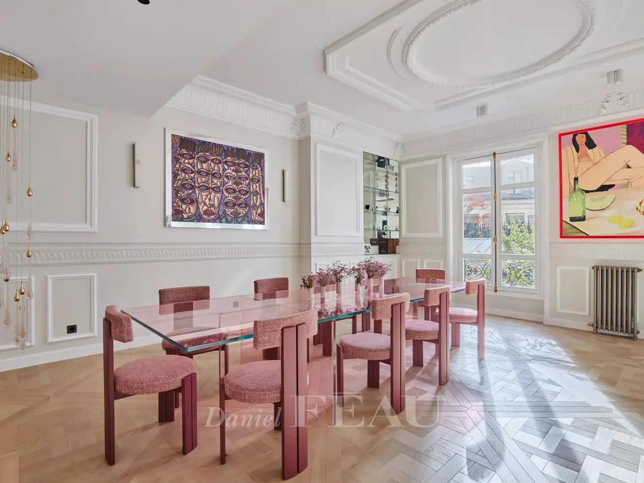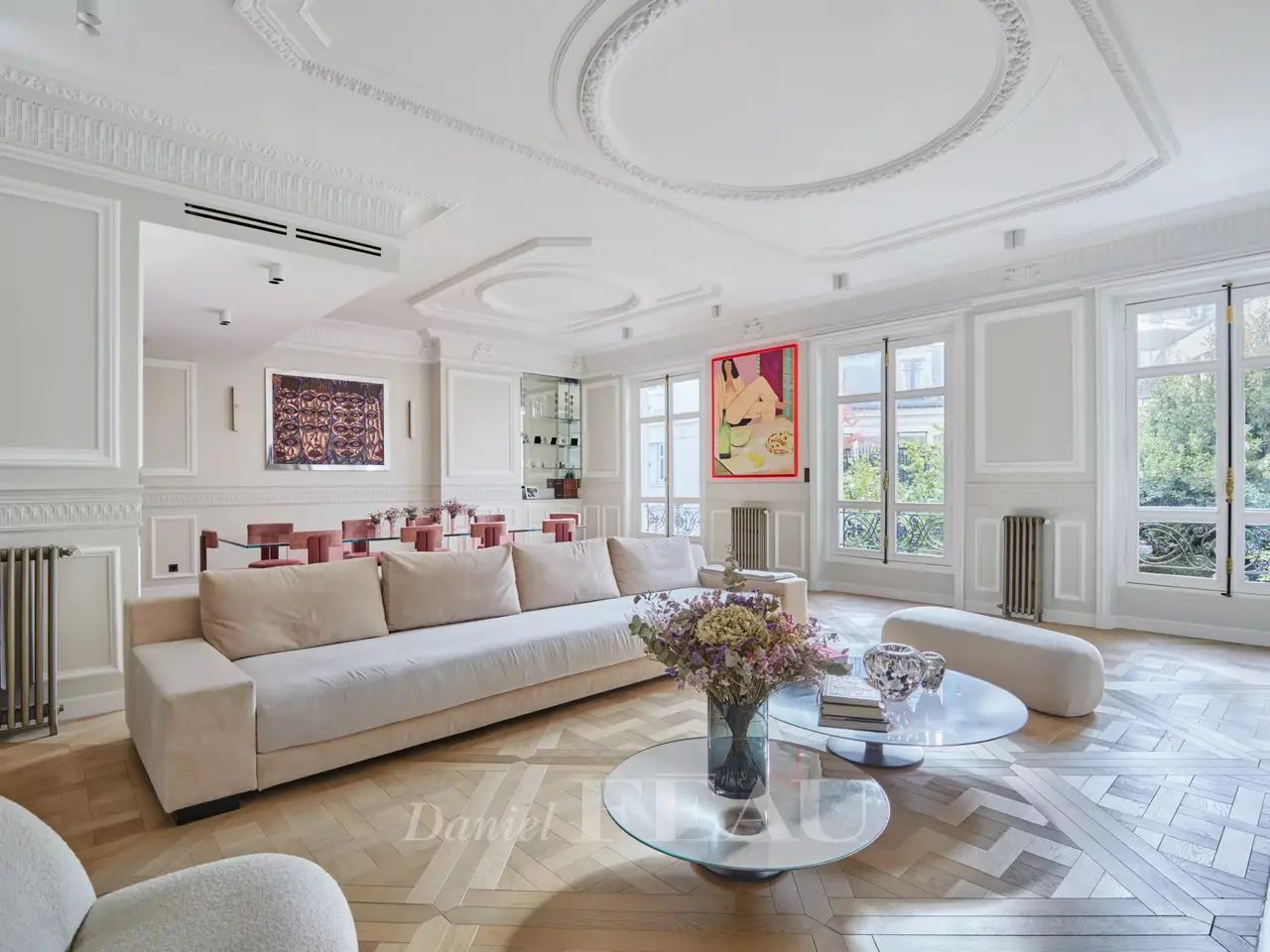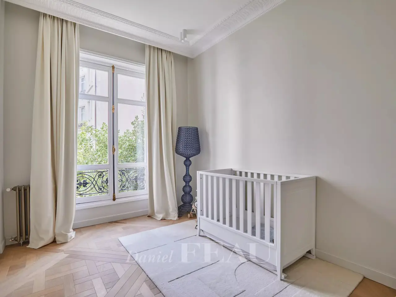 This meticulously renovated south-west facing apartment overlooking a leafy garden is on the 1st floor of a fine late 19th century building located in a street lined with fine period buildings just a stone’s throw from Parc Monceau and its iconic rotunda. Featuring 3.30 metre high ceilings and particularly bright, it includes an over 60 sqm double living/reception room, an adjacent equipped kitchen, a master suite with a bathroom and wc, two further bedrooms, a bathroom and a separate wc. The apartment benefits from an excellent floor plan. With bespoke storage space and a cellar.