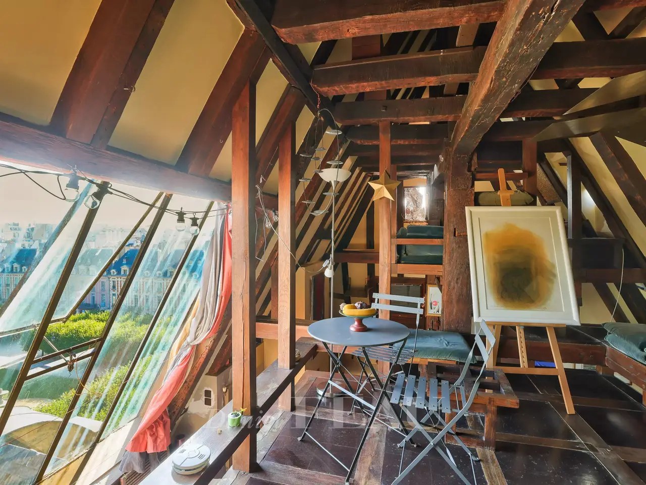 Historic Place des Vosges. This loft-style apartment on the 4th and top floor of the Pavillon du Roi, a superb early 17th century building, commands a unique view square Louis III and the capital’s landmarks. 84 sqm of living space features 7-metre high ceilings with over 400-year old exposed beams. The potential is enormous and an interior designer’s dream. The adjacent building, the Hotel de Coulanges, has been acquired by Xavier Neil and shall be transformed into a luxury hotel due to open in 2027.