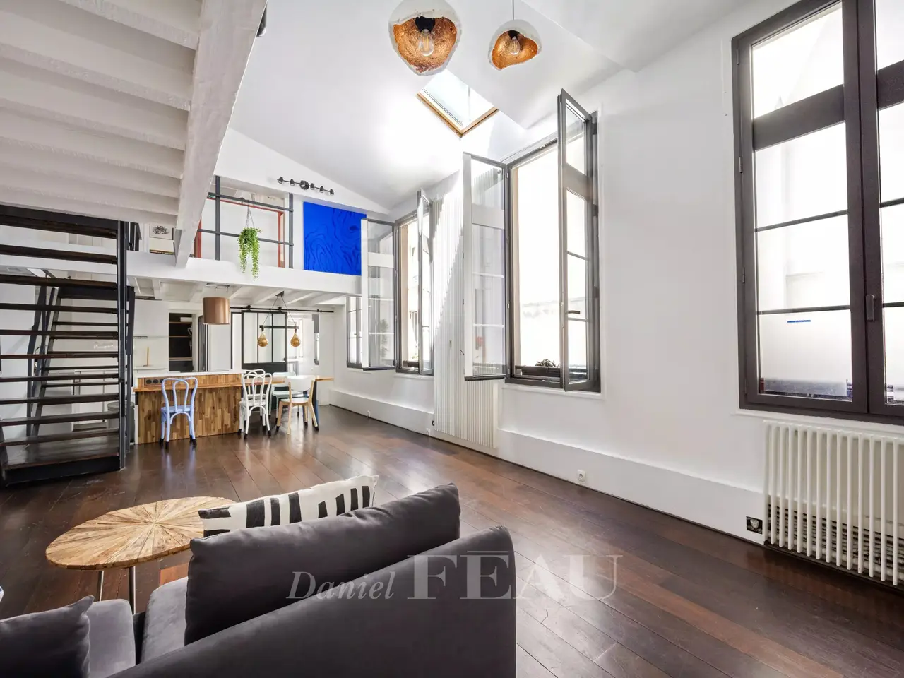 Located in one of the most iconic districts of the capital, on the highly sought-after Rue des Archives, this exceptionally quiet and light-filled apartment is nestled on the second and top floor. It offers 70 sqm of Carrez law surface (92 sqm total floor space). The entrance opens onto an elegant living area of approximately 45 sqm, featuring beautiful ceiling height. The semi-open, fully fitted and equipped kitchen blends seamlessly into the space. The main level also includes a bedroom, a refined, modern shower room, separate toilet, and extensive custom-made storage. Upstairs, a second bedroom with built-in wardrobes opens onto a study or reading nook. A cellar in the basement completes this rare property.