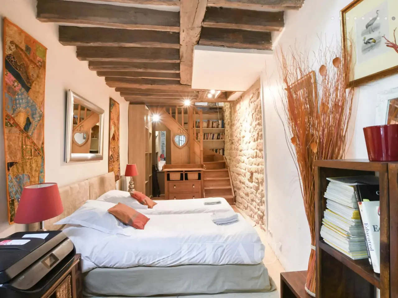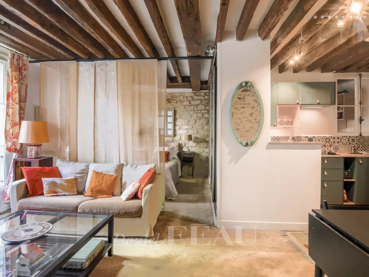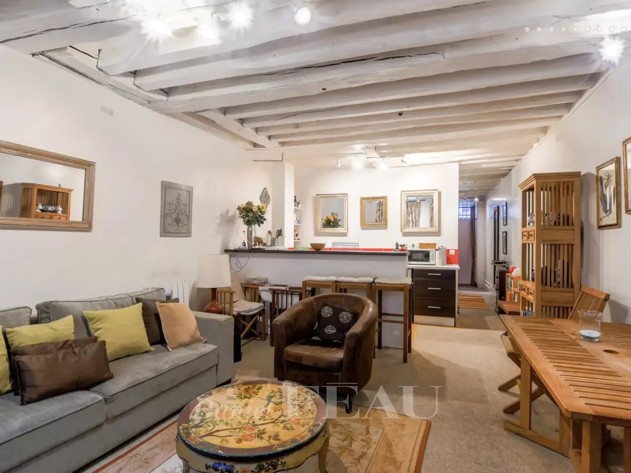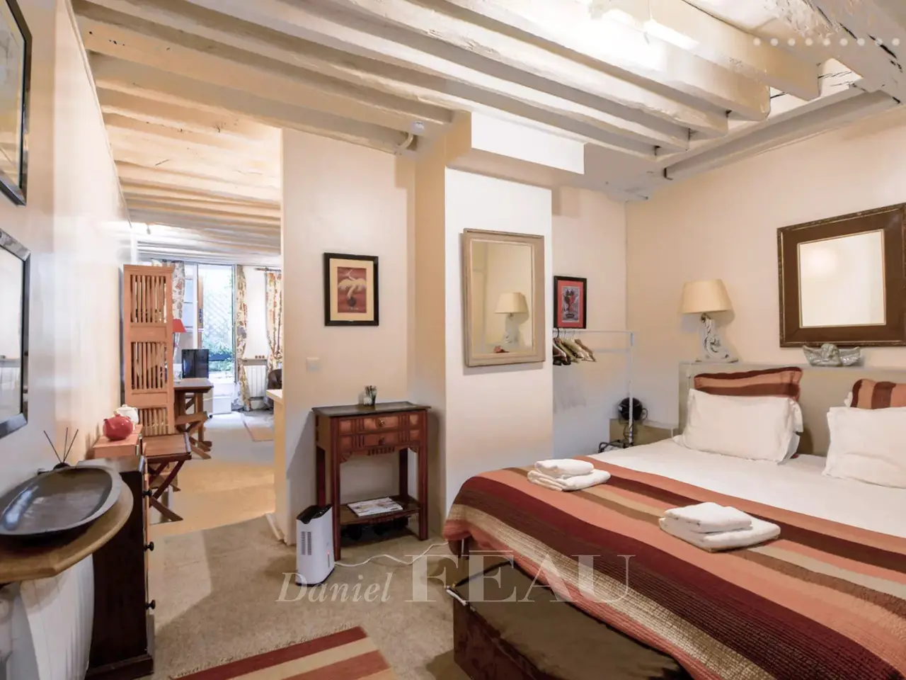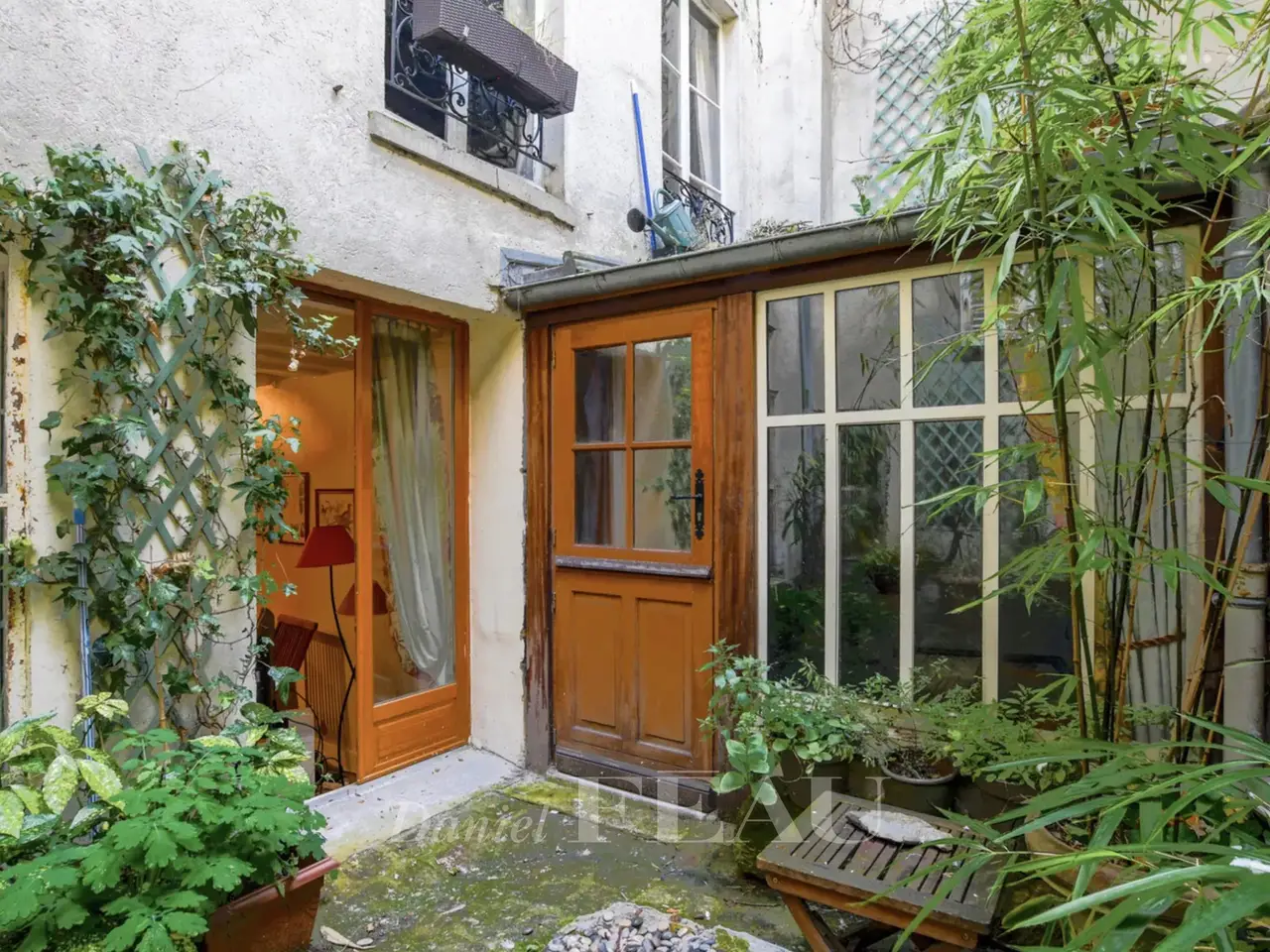 Rue Jacob, Saint-Germain-des-Prés. This split-level 58 square meter apartment on the 1st floor of a fine 18th century building includes a living/reception room, a kitchen, a bedroom opening onto a leafy 12 square meter courtyard, a bathroom and a wc. Opening onto the same courtyard, an adjacent 46 square meter ground-floor unit currently used as business premises comprises a main room with a kitchen, a bedroom, and a bathroom/wc could be joined to the apartment.
