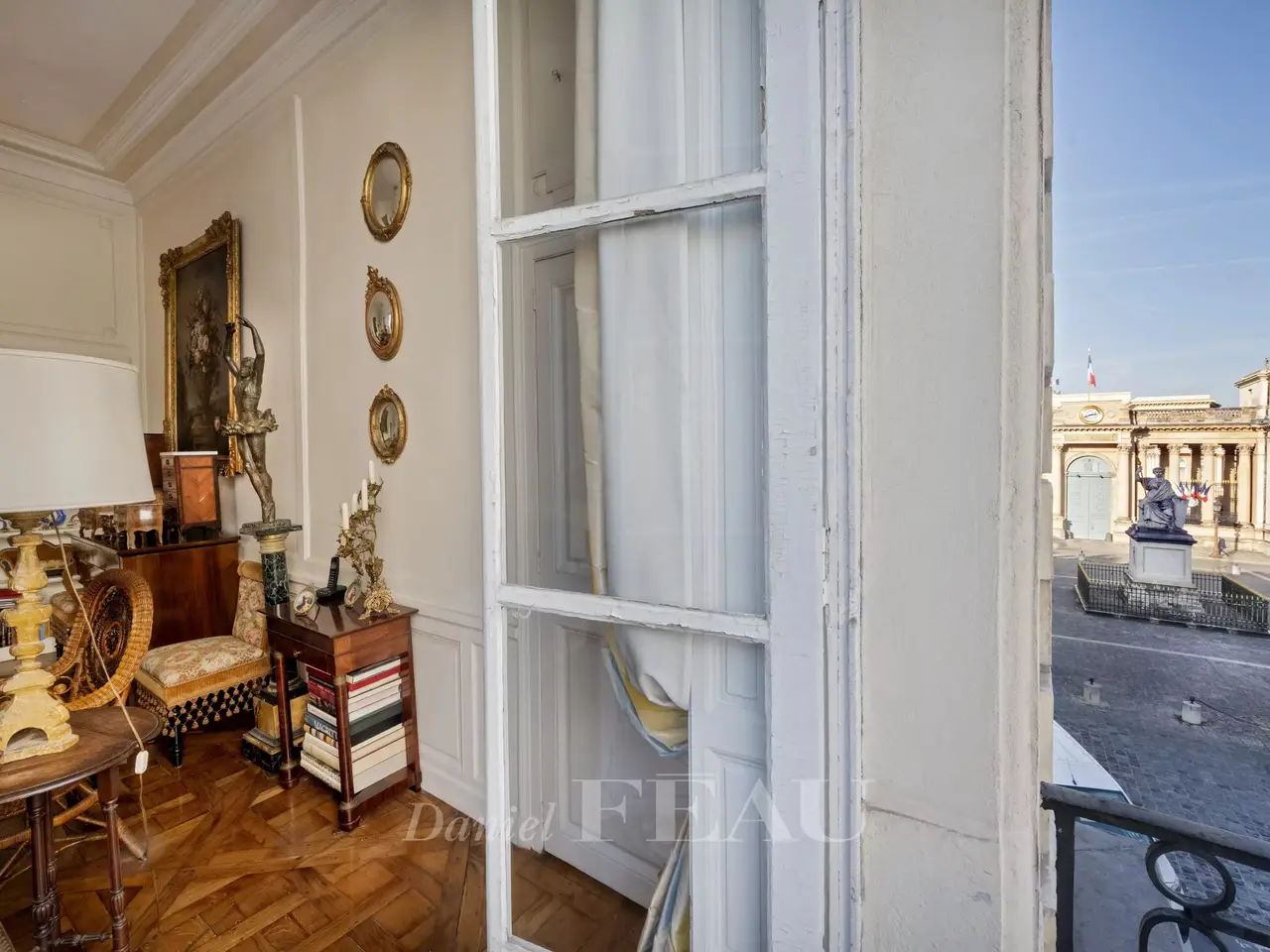 Place du Palais Bourbon. This exceptional apartment on the second floor of a fine late 18th century building with a caretaker and a lift offers 106.65 sqm of floor space and 93.03 sqm of living space as defined by the Carrez Law. Boasting period features including 3.60 metre high ceilings, it includes a living/reception room, a dining room, a kitchen, a suite with a bathroom and a dressing room, a bedroom with a shower room, and a separate wc. With two cellars. A rare opportunity in a prime location.