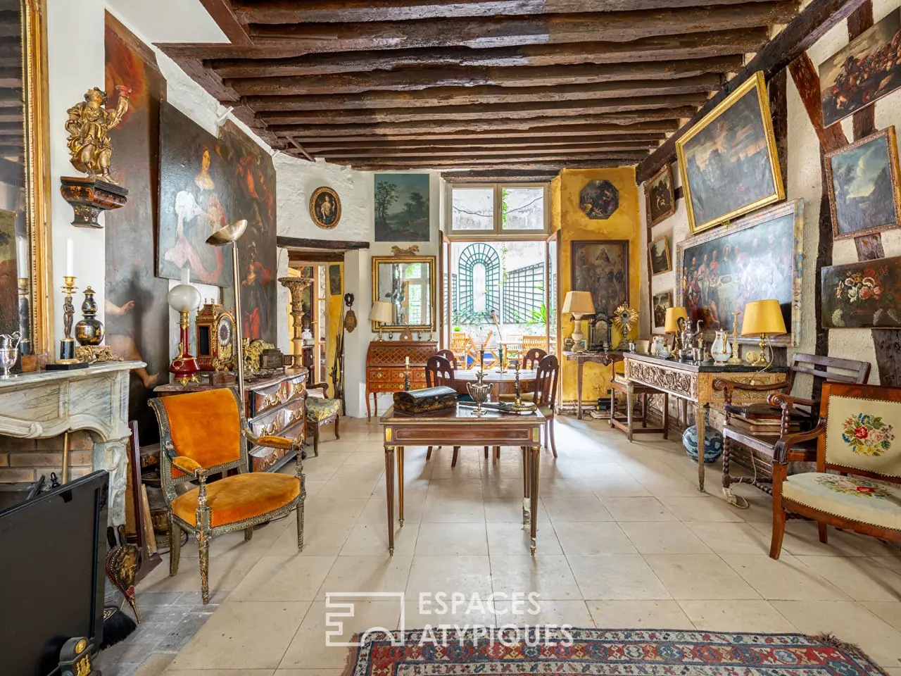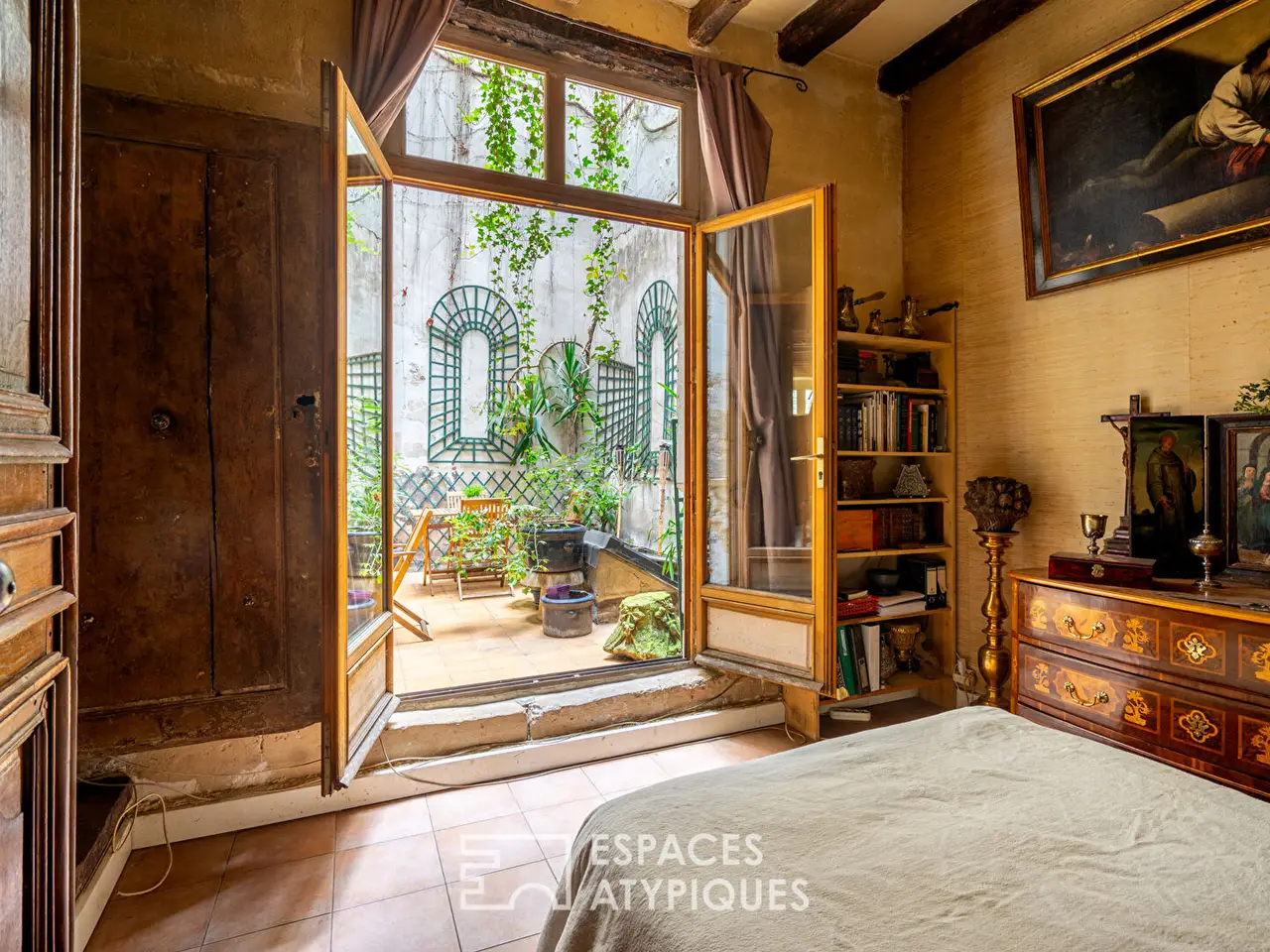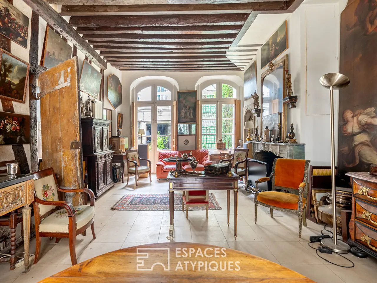 In the heart of the Latin Quarter, the Sorbonne and at the bend of the oldest pedestrian street in Paris (closed to traffic in 1972) you will discover this 4-storey building built in 1700 and with the appearance of a private mansion that the Espaces Atypiques Paris Rive Gauche agency offers. Access is via a courtyard with typically Parisian cobblestones over which watches, peacefully lying down, the sculpture of a woman installed on the steps, behind her mascarons adorn the facade. The entrance to the apartment sets the tone with the expected charm of the place through the respect of the period construction work: old beams, stone on the floor, half-timbering on the wall and fireplaces. The authenticity of the place is fully restored in the double living room which benefits from being through with the paved courtyard and a private patio. Two bedrooms communicating with this patio offer independence and friendly circulation. A third independent bedroom and two bathrooms complete the visit of this level. In addition, a flight of stairs leads to the lower level where the large vaults and exposed stone walls are outlined like a backdrop. It allows you to discover different spaces converted into bedrooms, libraries or showcases for various collections. The large volumes allow you to consider all the desired layouts: from the most classic to the most eccentric! The historical character of the place magnified by the use of period materials, however, leaves multiple possibilities for layout and makes this apartment a rare and emotional property. Transport: Saint-Michel Notre-Dame (Line 4, RER B and C) Cluny La Sorbonne (line 10) REF. 7081 Additional information * 9 rooms * 4 bedrooms * 2 shower rooms * 4 floors in the building * 20 co-ownership lots * Annual co-ownership fees : 4 200 € * Property tax : 2 824 €