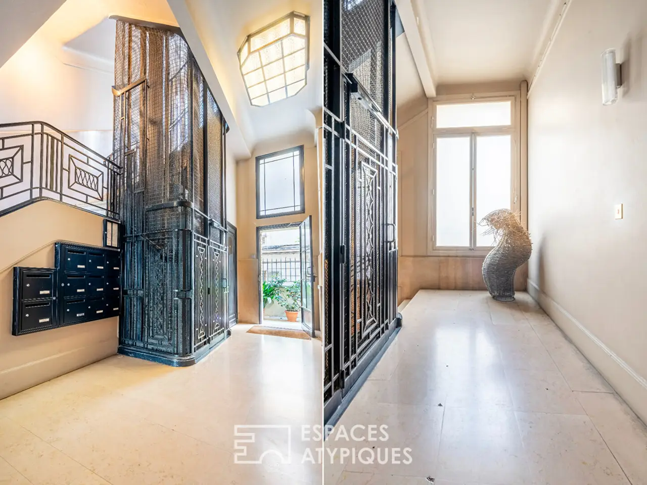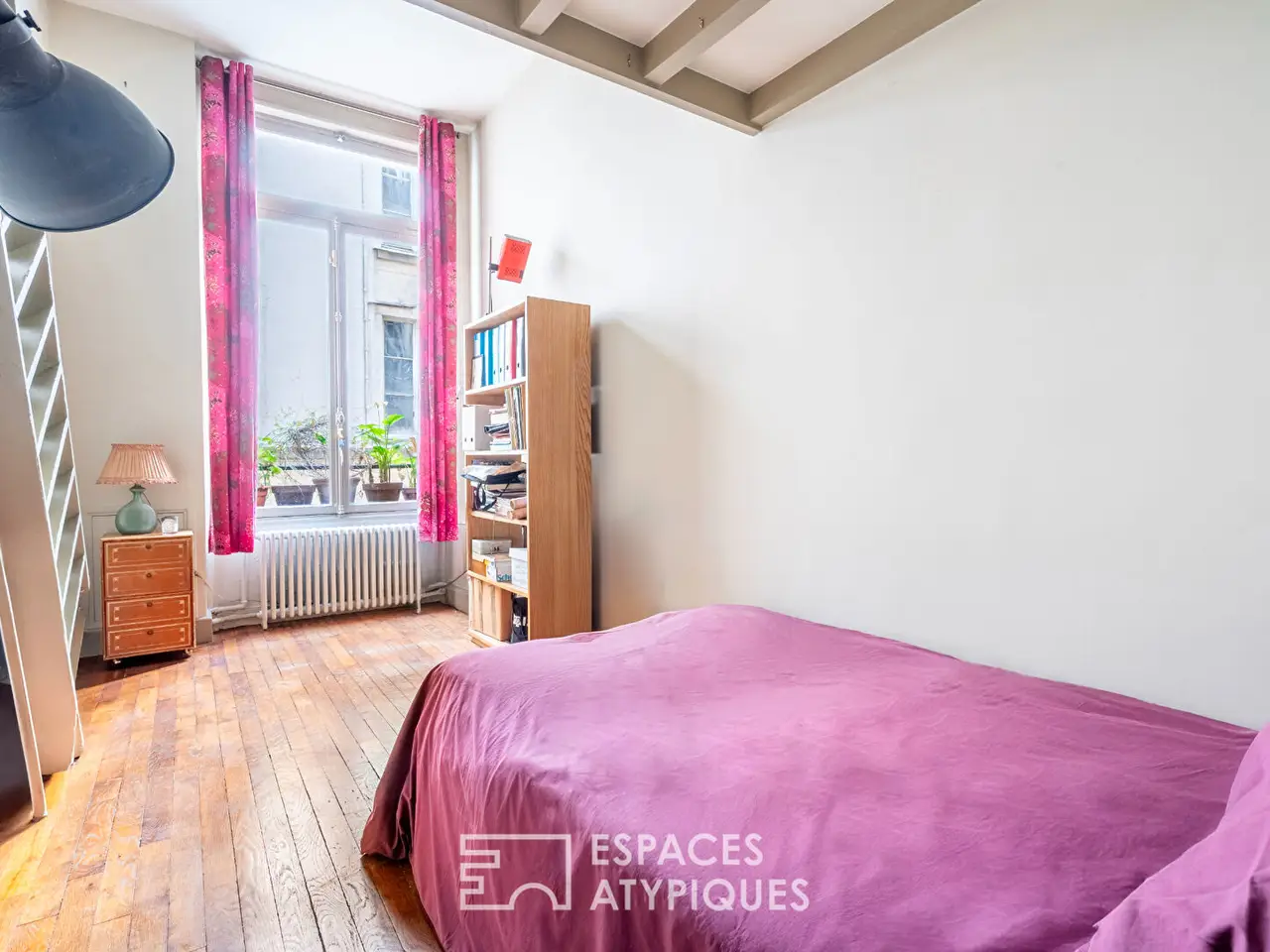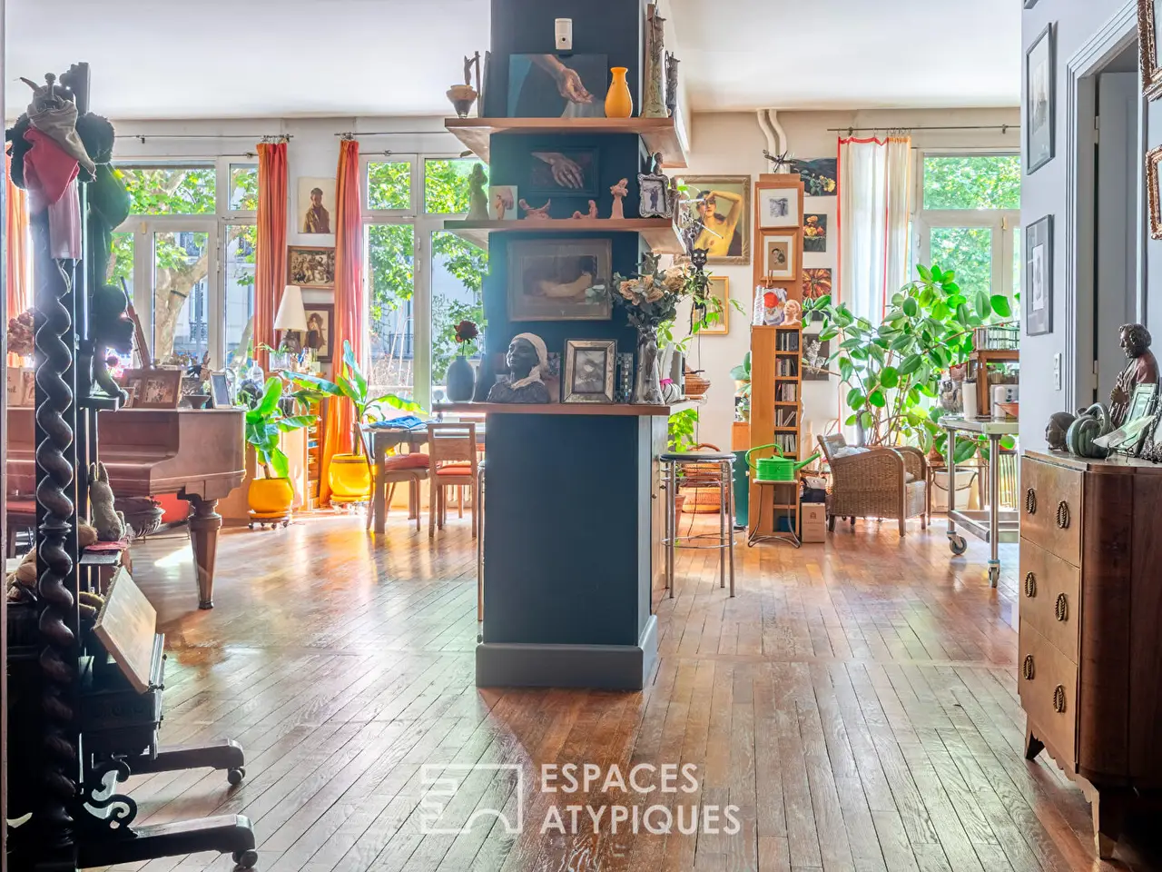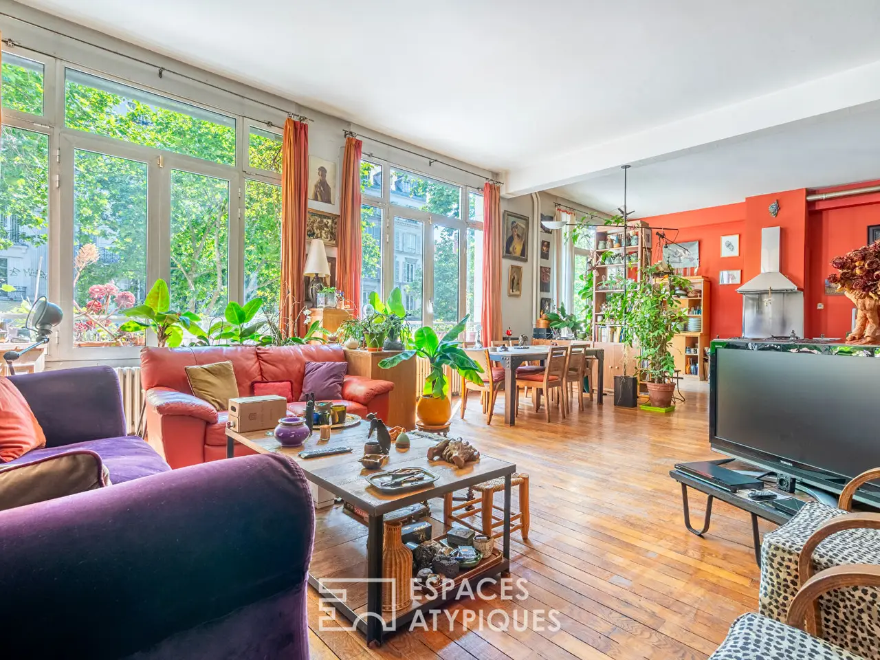 Located near Porte Saint-Martin, this 170 m2 loft (161.48 m2 Carrez law) is located on the 1st floor with elevator of a 1935 building that has retained its Art Deco features. The entrance opens onto a vast 80 m2 living room at 3.50 meters of height, bathed in light thanks to three large south-facing bay windows, offering unobstructed views of the sky. The open-plan kitchen integrated into this space invites conviviality in a decidedly bright and contemporary setting. The sleeping area consists of three bedrooms, two of 11 m2 and 12 m2, each with a mezzanine, and a 24 m2 master suite with generous volumes. All three bedrooms overlook a quiet courtyard, ensuring a peaceful environment. Two bathrooms, one with a laundry area, as well as two toilets and plenty of storage space complete this property. Original parquet flooring, generous volumes, large windows, and period architectural details give this loft all the charm of a living space conducive to entertaining. This property, subject to co-ownership status, has a sound cellar in the basement. Metro lines: Strasbourg-Saint-Denis, Republique REF. 11585 Additional information * 4 rooms * 3 bedrooms * 2 shower rooms * Floor : 1 * 6 floors in the building * 10 co-ownership lots * Annual co-ownership fees : 5 845 € * Property tax : 3 511 € * Proceeding : Non Energy Performance Certificate Primary energy consumption e : 261 kWh/m2.year High performance housing