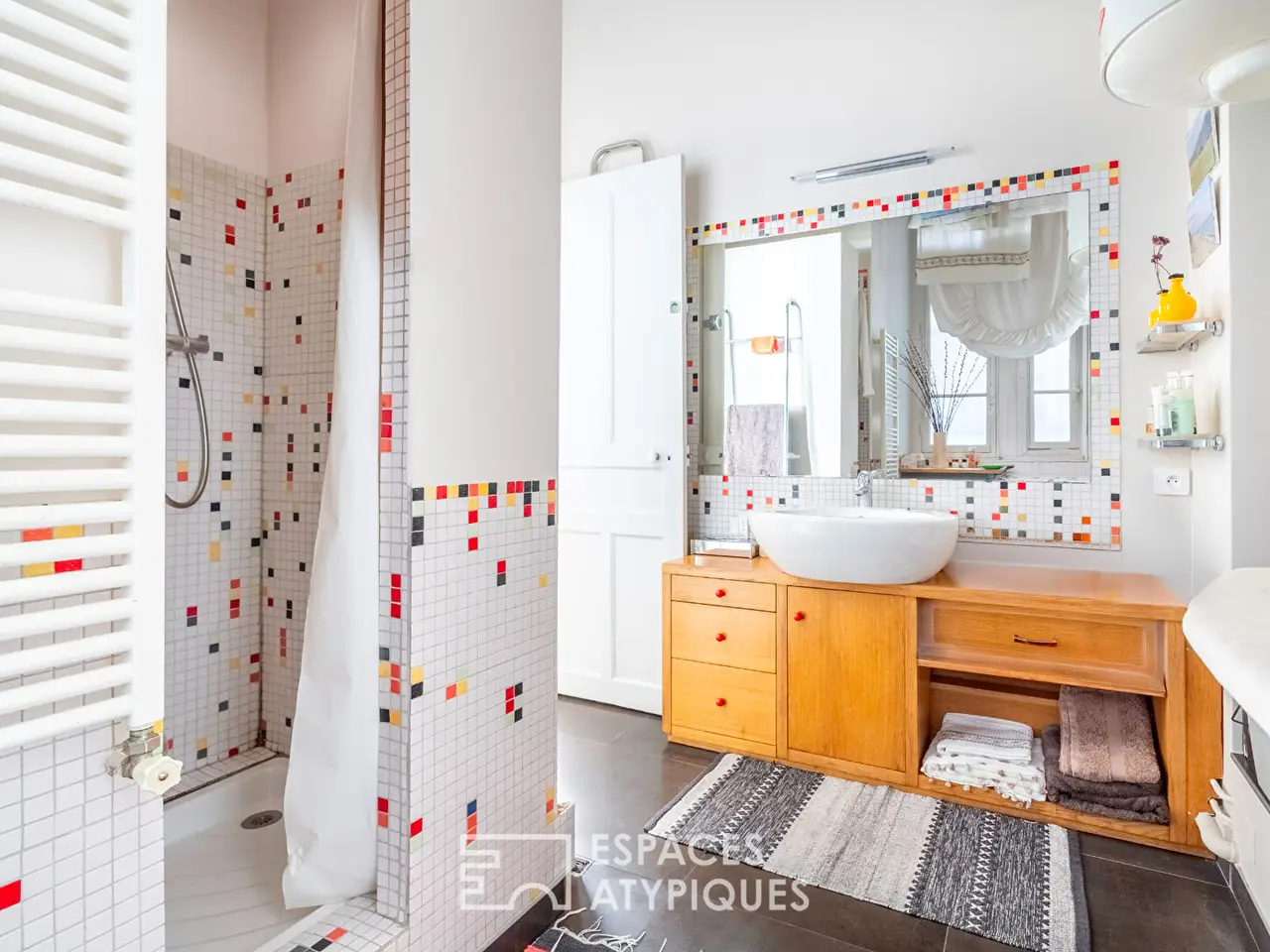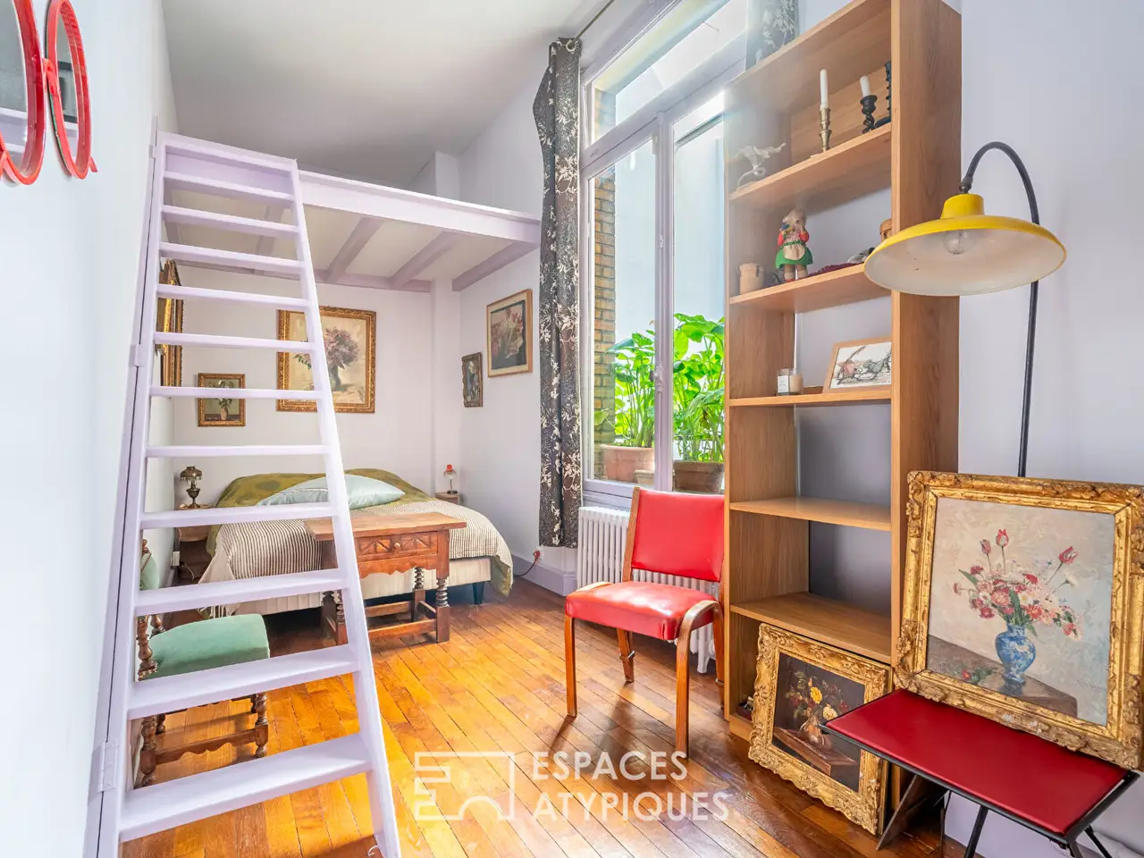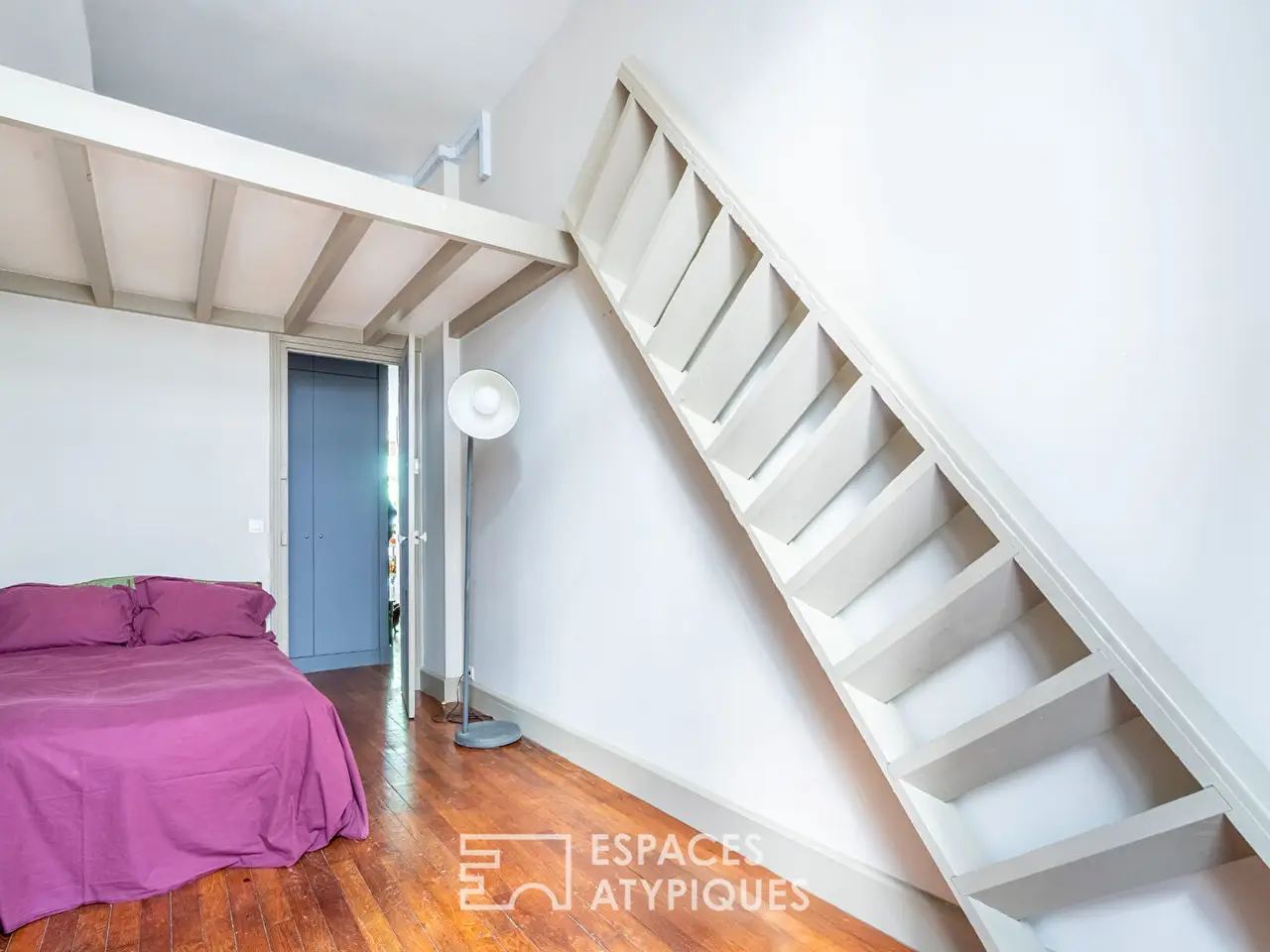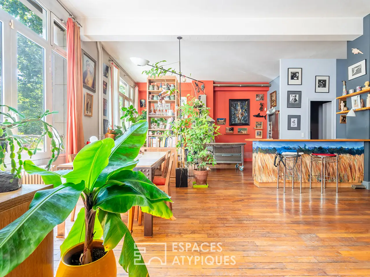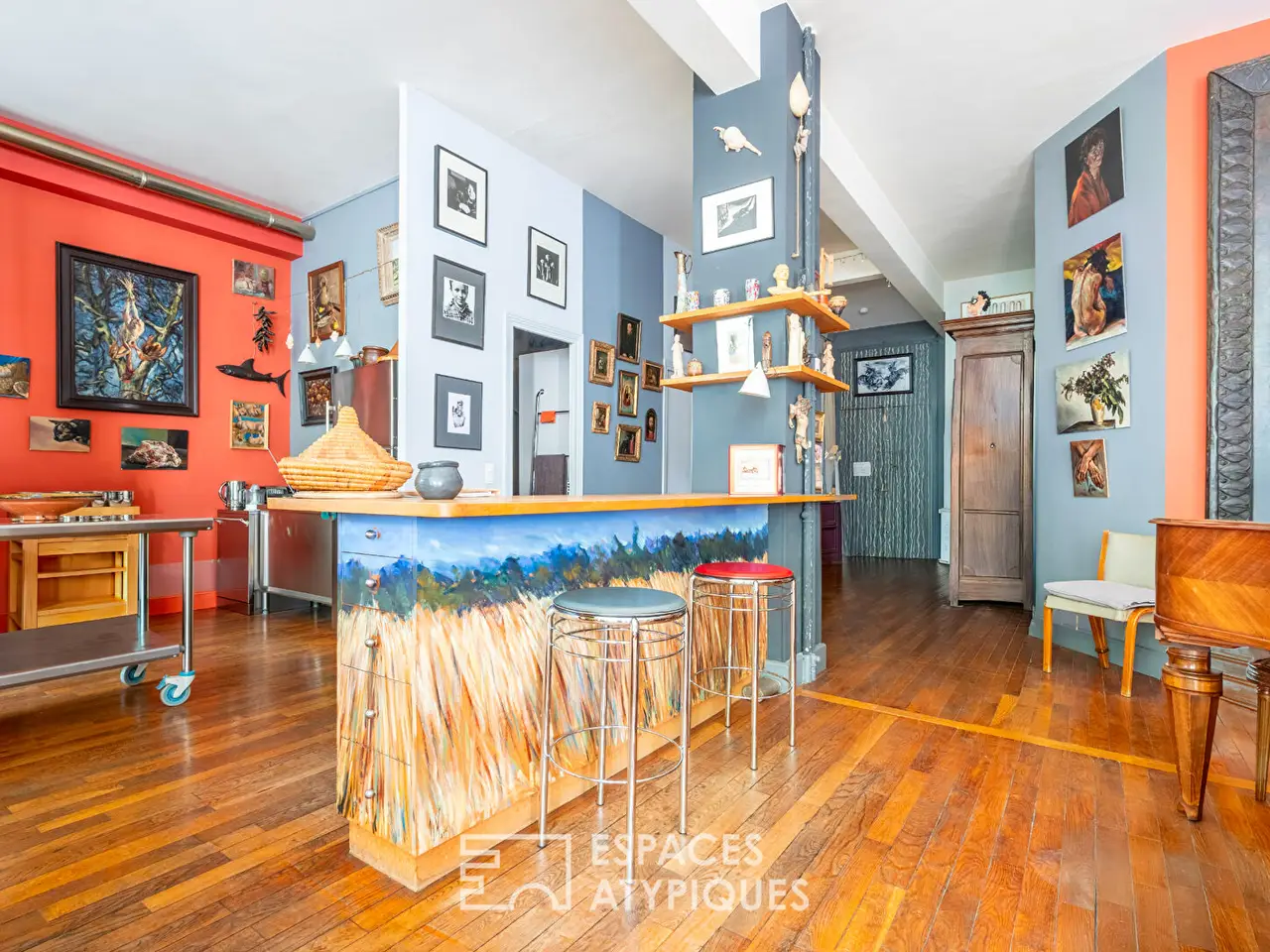 Located near Porte Saint-Martin, this 170 m2 loft (161.48 m2 Carrez law) is located on the 1st floor with elevator of a 1935 building that has retained its Art Deco features. The entrance opens onto a vast 80 m2 living room at 3.50 meters of height, bathed in light thanks to three large south-facing bay windows, offering unobstructed views of the sky. The open-plan kitchen integrated into this space invites conviviality in a decidedly bright and contemporary setting. The sleeping area consists of three bedrooms, two of 11 m2 and 12 m2, each with a mezzanine, and a 24 m2 master suite with generous volumes. All three bedrooms overlook a quiet courtyard, ensuring a peaceful environment. Two bathrooms, one with a laundry area, as well as two toilets and plenty of storage space complete this property. Original parquet flooring, generous volumes, large windows, and period architectural details give this loft all the charm of a living space conducive to entertaining. This property, subject to co-ownership status, has a sound cellar in the basement. Metro lines: Strasbourg-Saint-Denis, Republique REF. 11585 Additional information * 4 rooms * 3 bedrooms * 2 shower rooms * Floor : 1 * 6 floors in the building * 10 co-ownership lots * Annual co-ownership fees : 5 845 € * Property tax : 3 511 € * Proceeding : Non Energy Performance Certificate Primary energy consumption e : 261 kWh/m2.year High performance housing