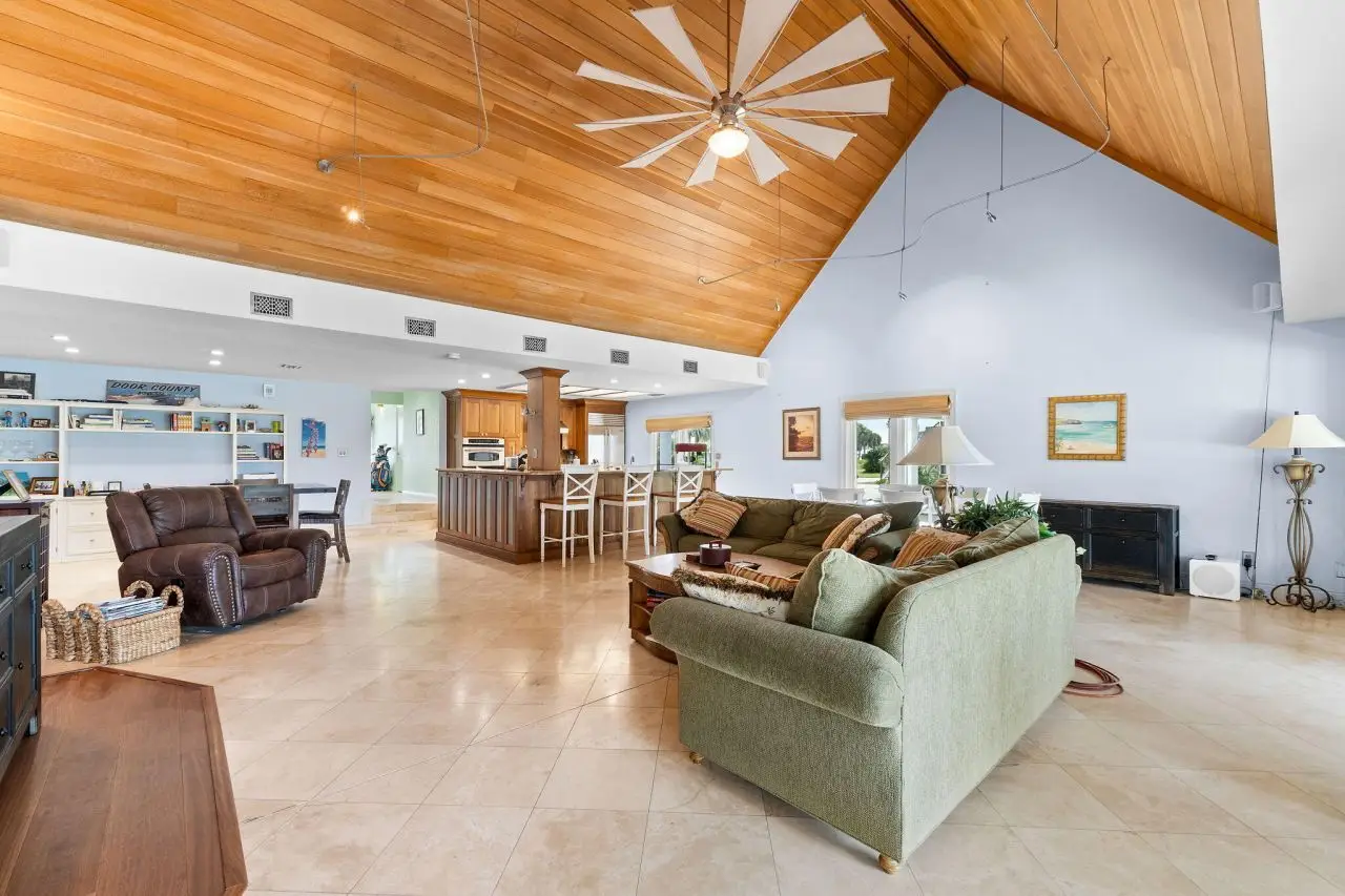 Paradise on Little Sabine Bay / DEEP WATER (11ft+) dock. This private residence features resort lifestyle living, in a coastal contemporary cottage. The private boat dock is the envy of all sport fishing and yacht enthusiast. The stellar location has exceptional appeal because of its short two minute stroll to the Gulf of America's beaches for surfing, hydrofoiling, rod fishing and shells. This original Villa Sabine property was designed to withstand hurricanes and storm surges at ground level. There are impact windows and exquisite impact storm rated triple sliders. The salt water gunite swimming pool is shaped like a T for aquatic gatherings, lap swimming and family play. Do you have an RV? There is plenty of room to park it and load out or in. Inside, you will find a spacious family room with a soaring atrium white oak custom wood ceiling. There is surround sound and LED soft glow lighting. The kitchen is professionally designed in rich walnut and is a cooks delight. Each bedroom has its own upscale bathroom with granite, custom lighting and designer sinks. All bedrooms have ample closets and storage. The open floor plan is split and the primary bedroom suite has an artisan ceiling and waterfront views of the bay and dock. The spacious master suite is 18x24 and features a triple size walk in closet complete with custom shelving and rods. The master bath has spa tub by Bain and a separate shower. There is a lifestyle gym. The extended Florida room off the living room currently has a queen size bed and is a southern sleeping porch. The home is professionally landscaped with palms and outside lighting. The custom garage features an industrial south side garage door with storage for cars, golf carts, fishing rods, tackle, beach toys, refrigeration and storage. There is a roof top crows nest to view the gulf island sunsets and the Blue Angels Air Shows. This property has had an extensive update with a new dock harboring a 67 foot yacht, Boston Whaler & water toys.
