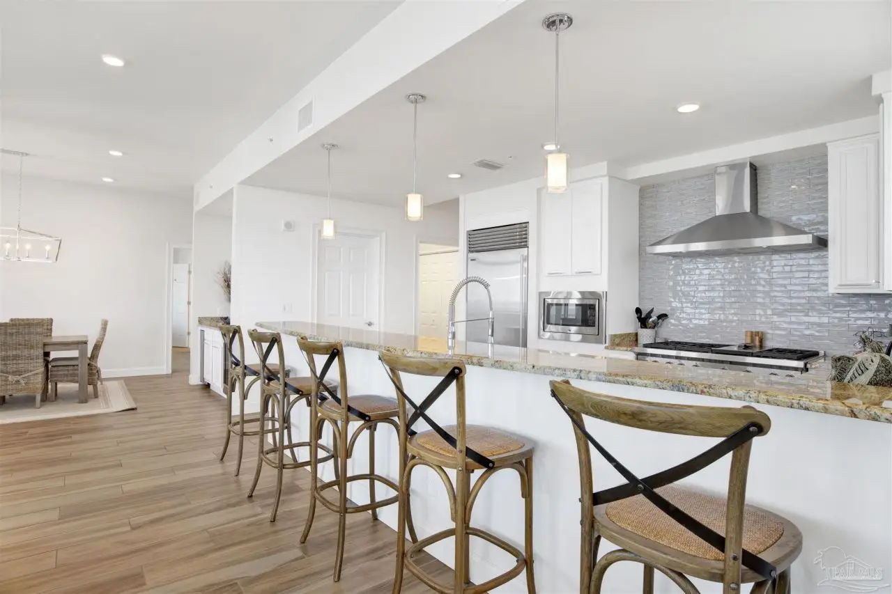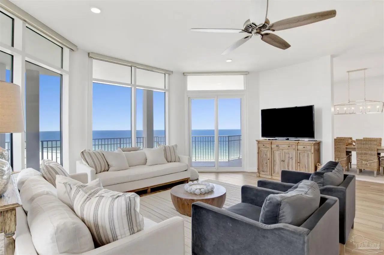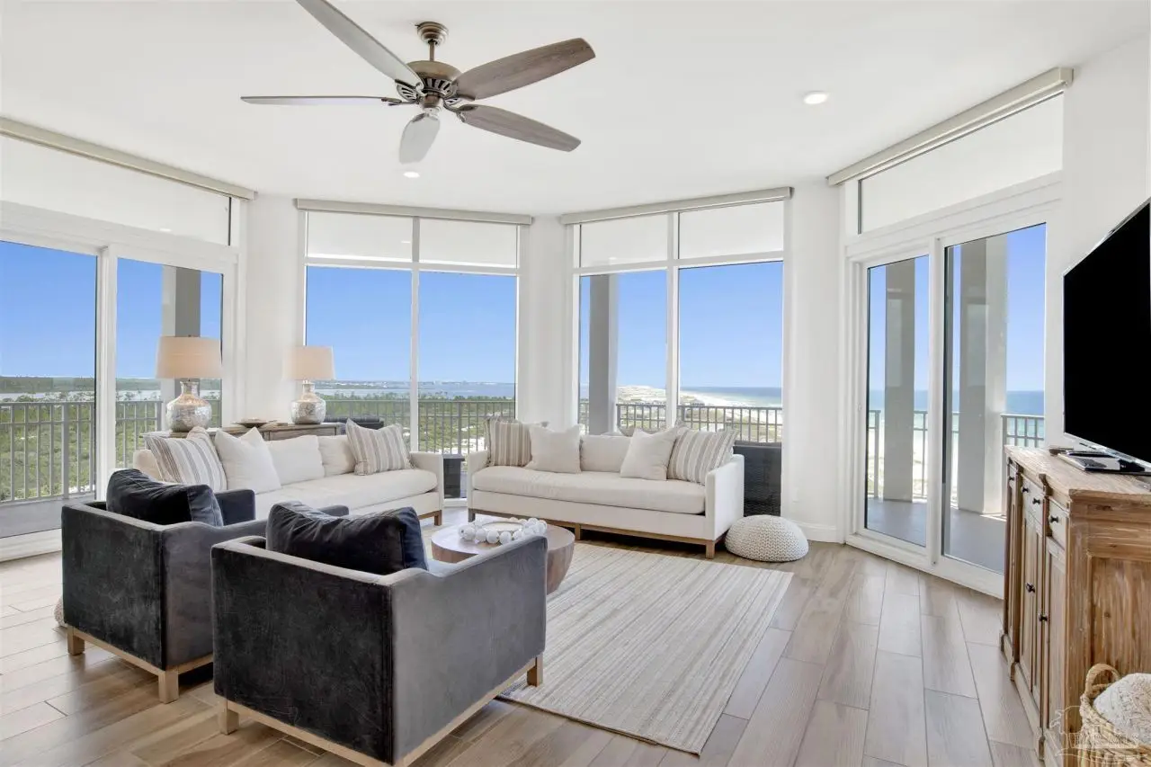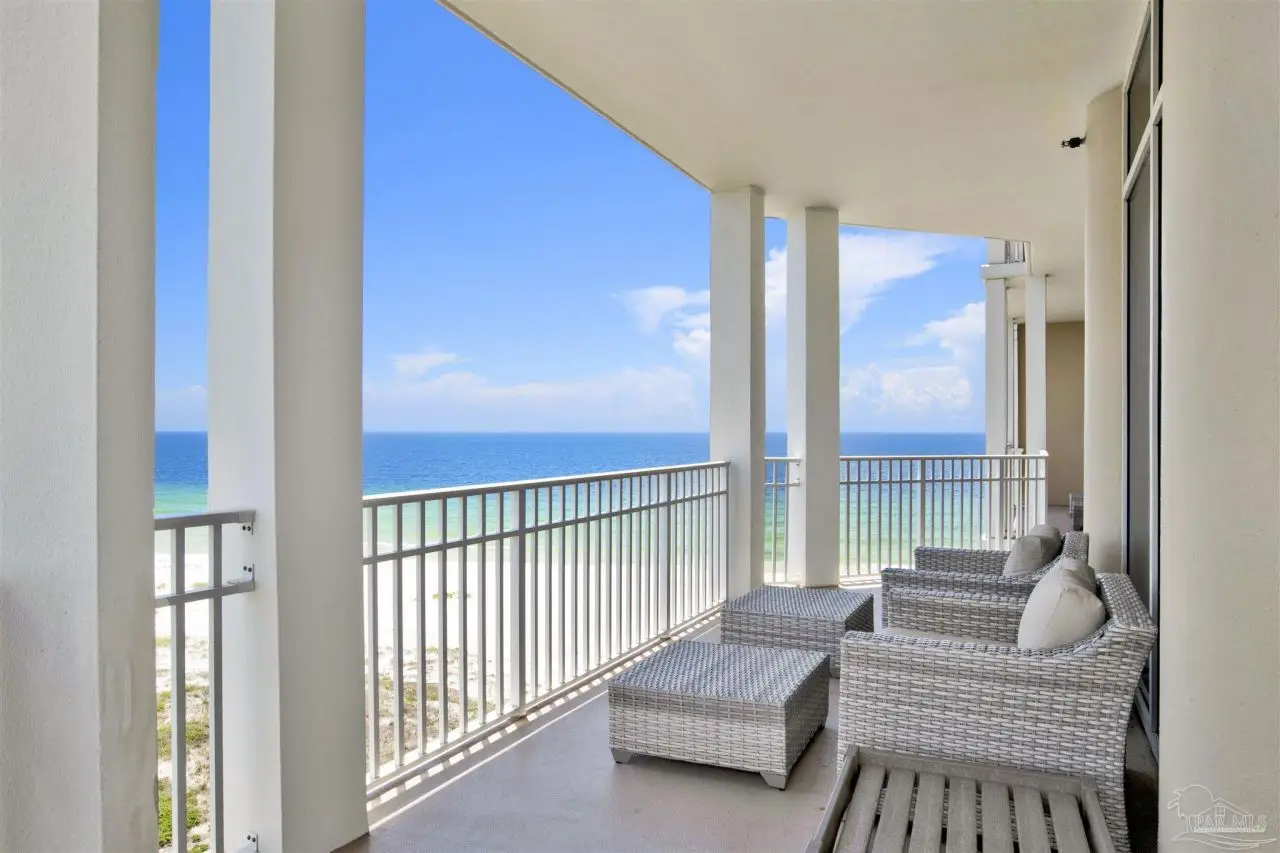 THIS RARE 5-BEDROOM, 6TH FLOOR CORNER RESIDENCE HAS BREATHTAKING, PANORAMIC VIEWS OVERLOOKING MILES OF PROTECTED COASTLINE AND THE GULF! ENJOY EXCEPTIONAL AMENITIES IN A TRANQUIL, LOW-DENSITY BEACHFRONT SETTING FAR AWAY FROM THE CROWDS. Vista del Mar has an irreplaceable location at the east end of the island of Perdido Key and borders over 5 miles of protected Gulf Islands National Seashore offering nature trails, bike paths, and unspoiled beaches for your enjoyment. This luxurious residence has been specially customized to a 5 BEDROOM/4.5 BATHROOM floor plan and comes fully furnished with assigned garage parking. This gem showcases impressive floor-to-ceiling windows, a generous balcony complete with gas grill, and stunning white ship lap accents throughout. The exquisite kitchen boasts granite countertops, high-end cabinetry, a Chef's kitchen featuring a Wolf® range and chimney hood, a Sub-Zero® refrigerator, and a wet bar equipped with ice maker and wine refrigerator. Luxurious guest suites are designed with spa-like bathrooms and ample walk-in closets. At Vista Del Mar, enjoy a secure, gated community entrance, designated garage parking, and climate-controlled owner storage at the amenity level. The grand lobby entrance offers various seating areas, custom artwork, and awe-inspiring views. High-speed elevators lead to climate-controlled lobbies. Indulge in the lavish outdoor pool area with a vast beachfront deck, hot tub, and covered outdoor seating. Experience the heated indoor pool with stunning water views. The owner's health club provides a fully-equipped fitness room, yoga studio, and massage treatment rooms. Residents can unwind in the club room with fireplace, bar, pool tables, and TVs. Surround yourself with lush landscaping, coastal breezes and WELCOME HOME TO LUXURY BEACHFRONT LIVING AT ITS FINEST!