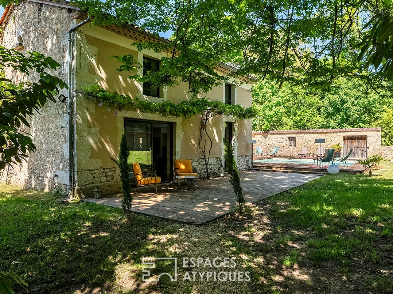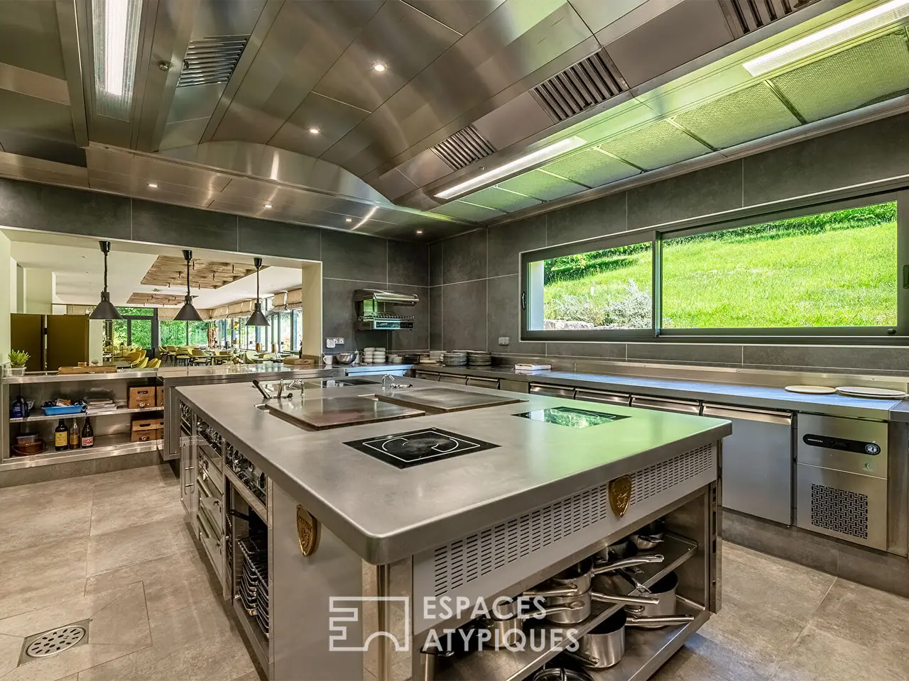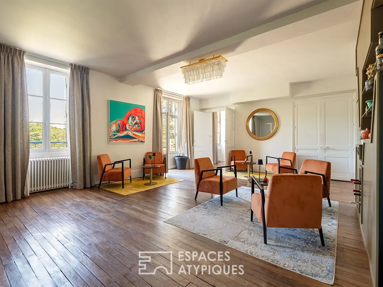 Authentic haven of peace. When the modern and the charm of the old rub shoulders in the heart of a wooded park of more than 3 hectares, offering a multitude of possibilities and diverse spaces that can accommodate family, friends or even a successful professional project. Let's start with this spacious mansion combining elegance and comfort. Once the stone steps are crossed, we arrive on a first terrace which leads to 2 large reception rooms. The charm works immediately, old parquet flooring, high ceilings, through light and dominant view of the park. On this floor you will also find an office with its library and a staircase all in wood leading to the bedrooms. Note the old elements which have been preserved like the original cement tiles. But wait, I haven't told you everything for this floor, patience, I'm getting there! The master piece of this recent renovation is obviously this veranda measuring more than 120 sqm alone, giving free rein to multiple possibilities of arrangements to accommodate all kinds of festivities or why not a passion that requires thinking big. In addition, this new extension is worthy of the know-how of a starred chef because you benefit from a high-end professional kitchen. On the menu; cooking area and its custom-made piano, its pastry area, as well as a back kitchen equipped with a technical room and its cold room, finally a sink area and its office complete the latter. Outside, a terrace offers you the most beautiful sunsets. On the second and last floor, you will discover five master bedrooms intended for receiving guests, each equipped with its own bathroom and presenting unique and distinctive characteristics. On the ground floor of this building, we also have a multipurpose space including a cinema / seminar room, a bar as well as an apartment including a kitchen open to the living room, a bedroom with its bathroom. And the real asset of this property lies in the discovery of its 93 sqm gite with its private swimming pool and its independent entrance. Authentic haven of peace. On the ground floor, you have a kitchen open to the living room, creating a friendly and bright space. A metal staircase will take you upstairs, where there are two bedrooms and a bathroom, offering comfort and practicality for all your guests. A covered area and a barn are also available. Finally, a parking lot that can accommodate around ten vehicles. Rare and unique product in the area. Seasoned investors will be attentive to the possibility of generous rental income. As you will have understood, this real estate complex located close to all amenities, offers very nice services. It's up to you to invent the life that goes with it. ENERGY CLASS: D / CLIMATE CLASS: B Estimated average amount of annual energy expenditure for standard use, established from the energy prices of the current year: between 5265 euros and 7123 euros. Information on the risks to which this property is exposed is available on the Georisques website for the areas concerned: www.georisques.gouv.fr Sabrina Denis EI RSAC 450 708 813 Perigueux Tel: 06.79.70.24.58 Email: sabrina.denis@espaces-atypiques.com REF. 10857EAD Additional information * 13 rooms * 8 bedrooms * 1 bathroom * 6 shower rooms * Floor : 3 * 3 floors in the building * Outdoor space : 35077 SQM * Parking : 10 parking spaces * Property tax : 4 500 € Energy Performance Certificate Primary energy consumption d : 181 kWh/m2.year High performance housing