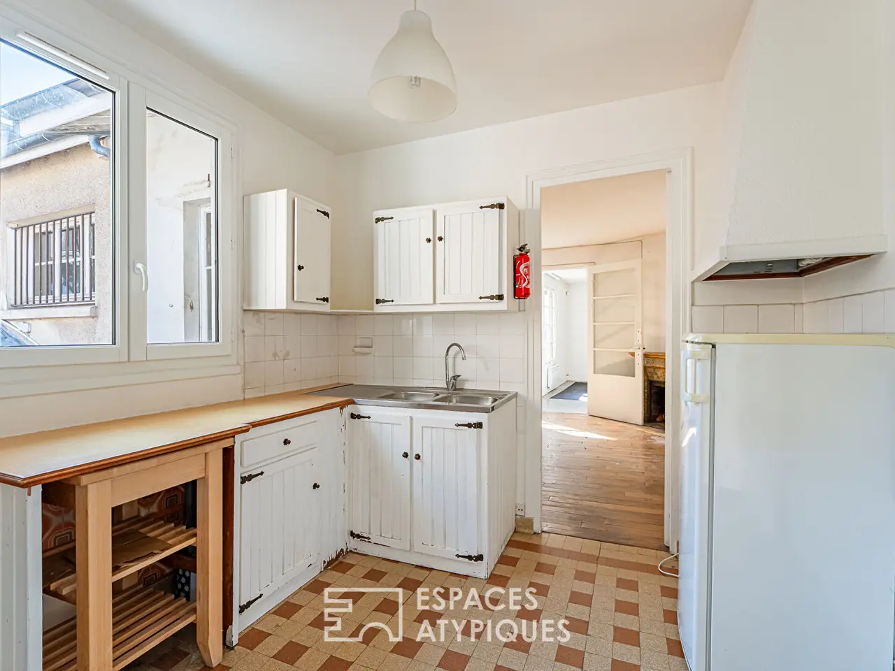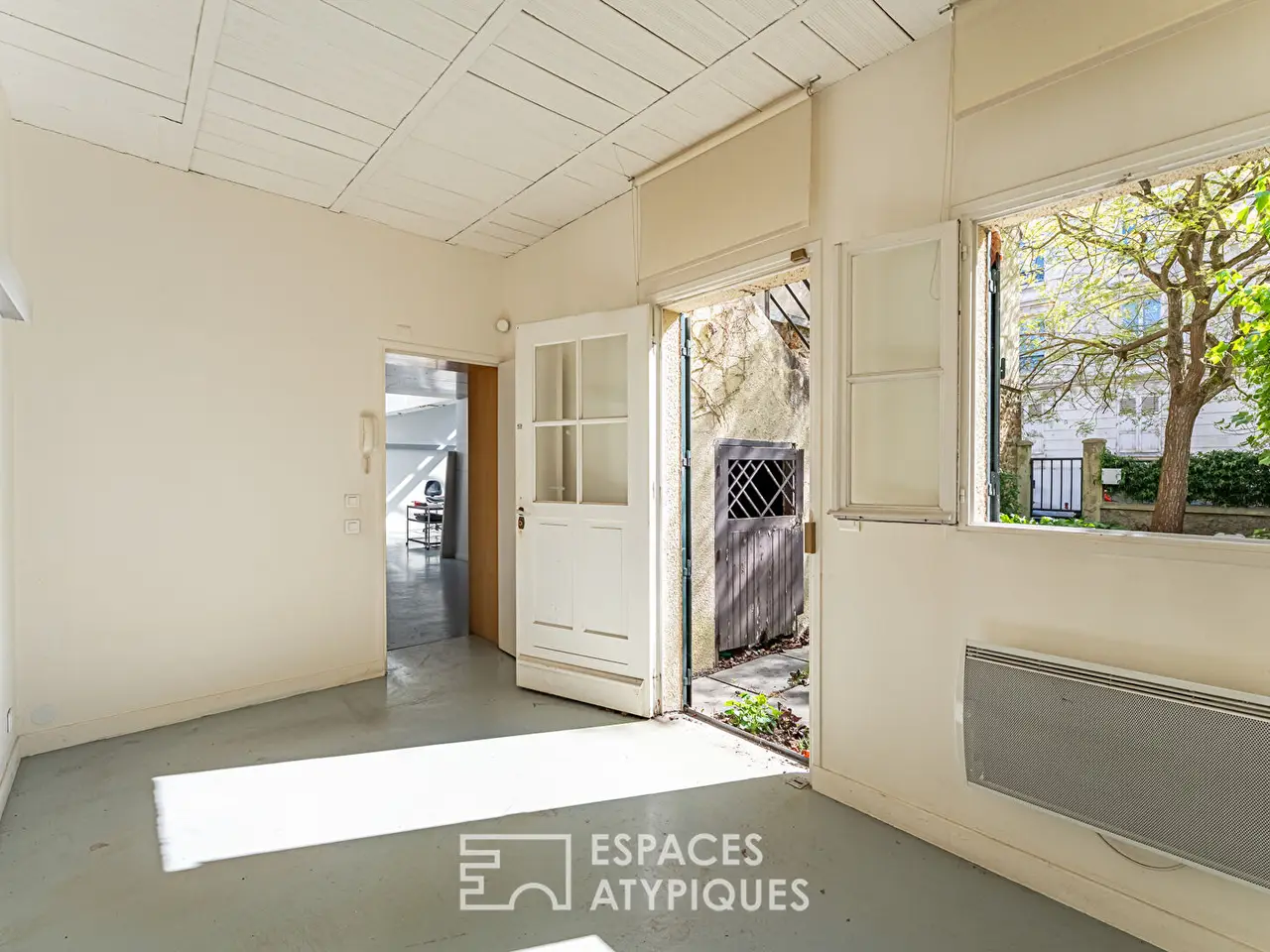 In a lively and sought-after area of Versailles, close to the Versailles Chantiers train station, its shops and schools, this rare property offers 208 sqm of living space, divided between a main loft of 130 sqm and an adjoining house of 78 sqm, all opening onto a 61 sqm garden, a veritable green setting in the heart of the city. Behind an imposing wrought iron gate, a raw and modular entrance allowing the parking of motorcycles or bicycles opens onto the loft part, a former garage converted into an architect's office. This open-space impresses with its spectacular volumes: 7 to 8 meters of ceiling height, bathed in omnipresent natural light captured by large zenithal glass roofs equipped with electric roller shutters. Underfloor heating enhances this beautiful space for optimal comfort. Its final destination will allow you to convert it into an artist's studio, a showroom, a loft, or even a new home extension, depending on your plans. From the loft, an old staircase with weathered wooden steps and a wrought iron railing connects this volume to the adjoining house, also accessible independently via the intimate garden. The latter includes an entrance hall, a kitchen, a bathroom, and three bedrooms with old parquet floors in very good condition, electric radiator heating where everything needs to be rethought. On the street itself, a public elementary school welcomes the youngest. A few minutes' walk away, there are also other schools (nurseries, middle schools, high schools, public and private), reinforcing the neighborhood's appeal for family life. The property also benefits from a closed parking lot a few steps away, located in a neighboring condominium, highly sought-after in this area. A unique living space, at the crossroads of the industrial loft, the family home, and the artist's studio, combining old-fashioned character and contemporary design in an environment that is central, practical, and lively. A 4-minute walk from Versailles Chantiers RER C, Transilien N and U train station, future station for line 18 of the Grand Paris Express to Orly, future station for T13, RER C (St Quentin en Yvelines / Paris Austerlitz) Line N (Montparnasse ? Rambouillet / Dreux / Mantes La Jolie) Line U (La Defense- La Verriere) Line V (towards Massy-Palaiseau) A 15-minute walk from Versailles Rive Gauche train station Opposite the Chantiers train station, the new Biosphere building houses restaurants, sports activities, and a winter garden on the top floor. In the area: shops including 2 supermarkets, organic stores, pharmacy, banks and daycare centers. A 7-minute walk from: the private hospital of Versailles Les Franciscaines, its maternity ward and the upcoming opening of a new health center School education: Nursery and primary schools: Sainte Agnes, Edmee Fremy \ Middle schools: Raymond Poincare and Nolhac \ Lycee Marie Curie - Baroque Music Center Raymond Poincare Middle School (opposite Chantiers train station) ENERGY CLASS: G / CLIMATE CLASS: C Average energy prices indexed for the years 2021, 2022, 2023 (including subscriptions) between EUR3,600 and EUR4,920 per year. I Information on the risks to which this property is exposed is available on the Georisques website www.georisques.gouv.fr REF. 10554 Additional information * 5 rooms * 3 bedrooms * 1 bathroom * 1 floor in the building * Outdoor space : 60.84 SQM * Parking : 1 parking space * Property tax : 4 091 € Energy Performance Certificate Primary energy consumption g : 617 kWh/m2.year High performance housing