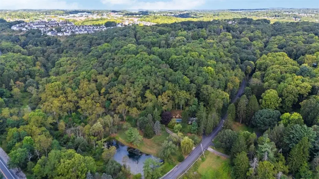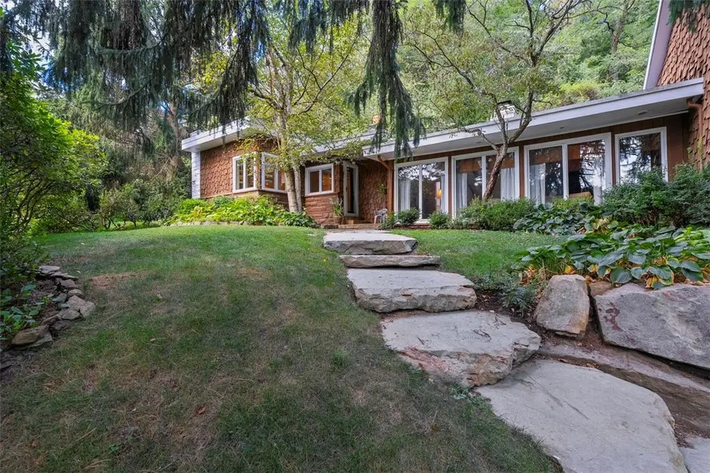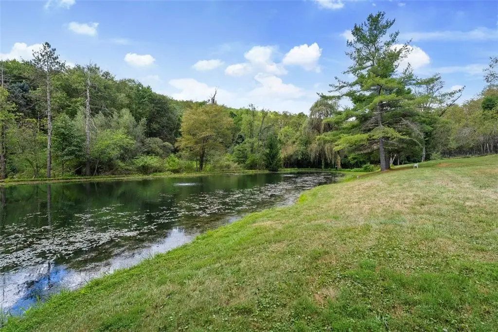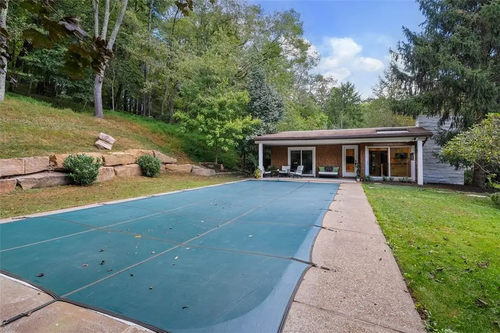 Welcome to this one-of-a-kind mid-century retreat set on 10 private acres w/an in-ground pool & 3/4 acre stocked pond. The living room impresses w/vaulted ceilings & dual-sided fireplace that flows seamlessly into the adjoining den space, creating warmth & character throughout. The kitchen is designed for both function & entertaining, directly off the dining room,& featuring an eat-in island, wood-burning fireplace &sliding doors to the pool. The primary suite includes an ensuite bath & loft area, while the spacious second &third bedrooms share a hall bath. A stylish bonus room features a sauna & sliders opening directly to the pool for seamless indoor-outdoor living. The main level also offers a convenient laundry room, & the basement provides excellent storage space. Tons of windows and skylights fill the home w/natural light, highlighting the sleek architectural design. Enjoy the serenity of your own private oasis, just minutes from the shopping &dining of Wexford. Located in PR SD.