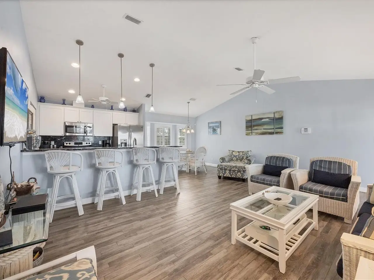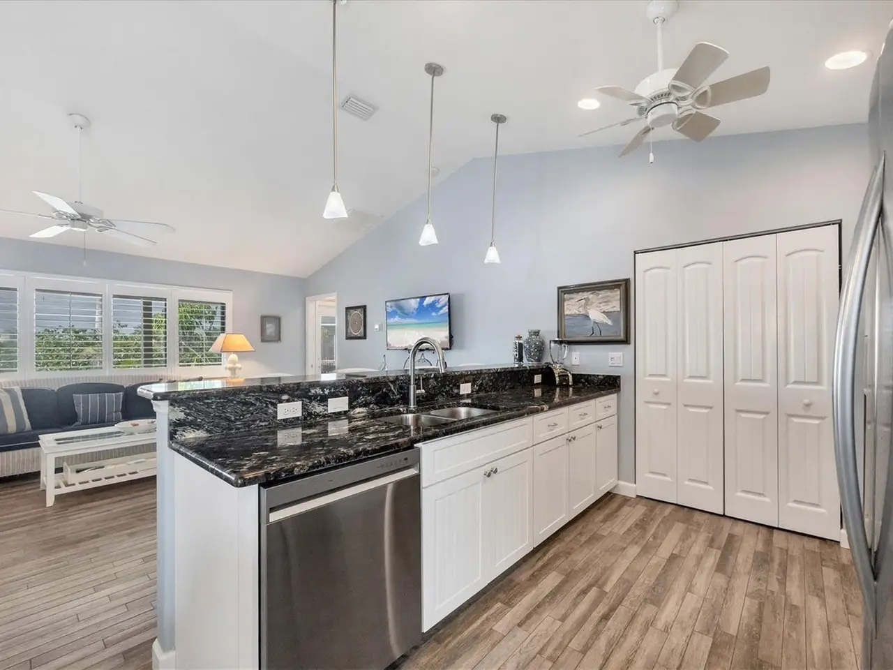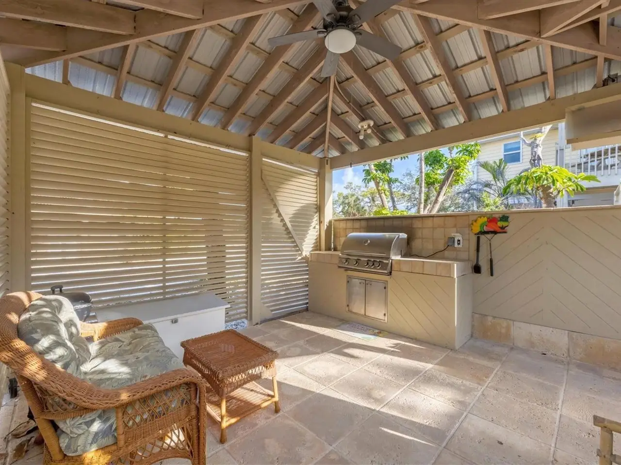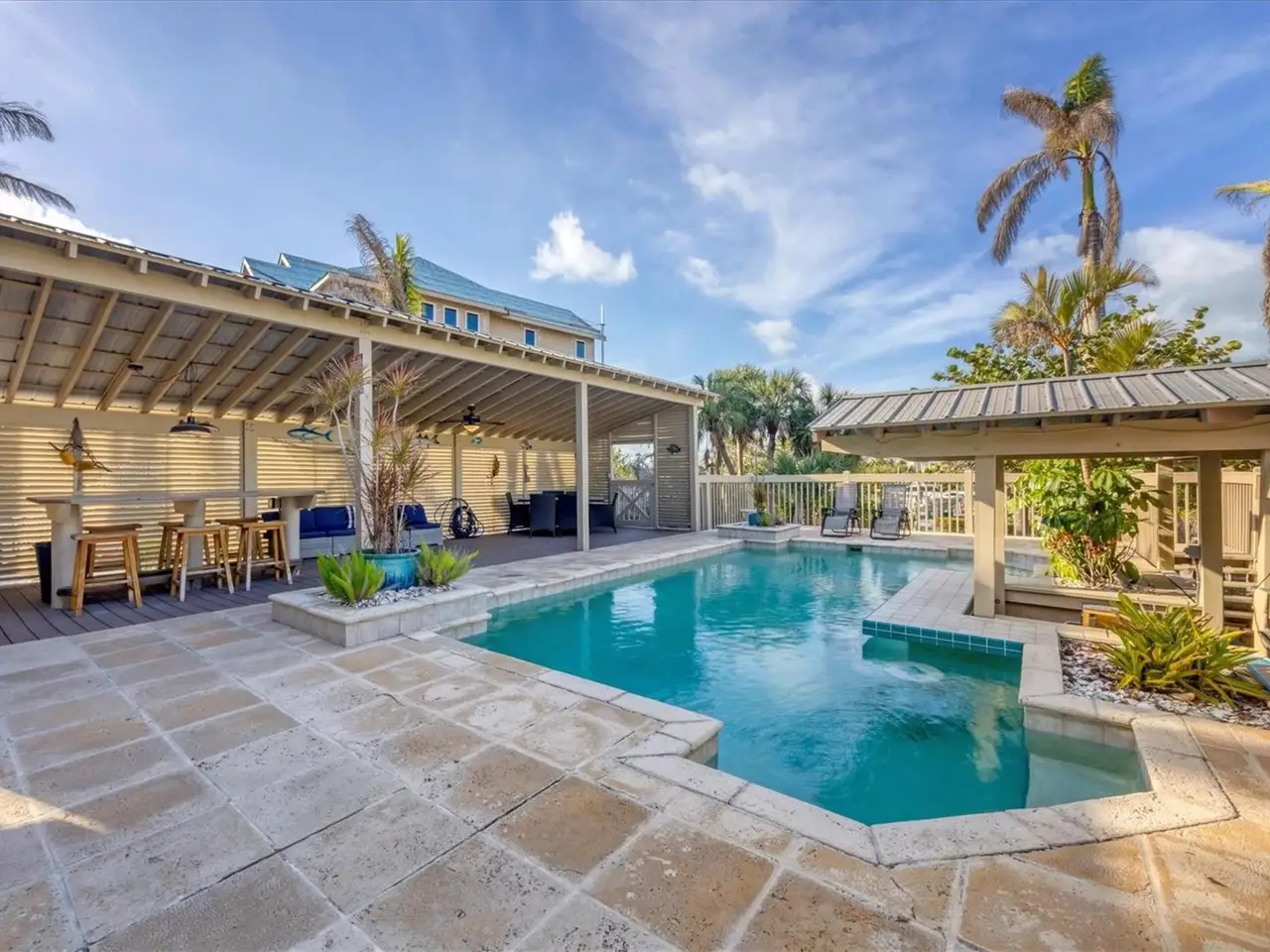 Welcome to Don Pedro/Palm Island! This exclusive Key West style Florida home offers tasteful and updated interior design as well as expansive outdoor entertainment area. The lot is just shy of one half acre. This 2 bedroom, 2 bath home has wood like tile flooring, windows with interior plantation shutters throughout, granite countertops throughout, stainless steel appliances, high coffered ceilings, impact glass and much more. Air conditioned Bonus Room with 1/2 bath. Outdoor living space includes a large pool with swim-up bar offering six in pool bar seating area, a covered 10 x 16 foot outdoor grill area, a 12 x 36 foot lounging area covered by metal roofing, louvered walls, composite decking. Additional exterior amenities include outdoor shower, air conditioned bonus room with pool bath, a 17 x 13 foot garage, and a 25 x 36 foot paved area under home. There is a shared dock located on Kettle Harbor waterway with no bridges to the Intracoastal Waterway and Gulf of Mexico. This property offers the best that Florida has to offer and is a MUST SEE.