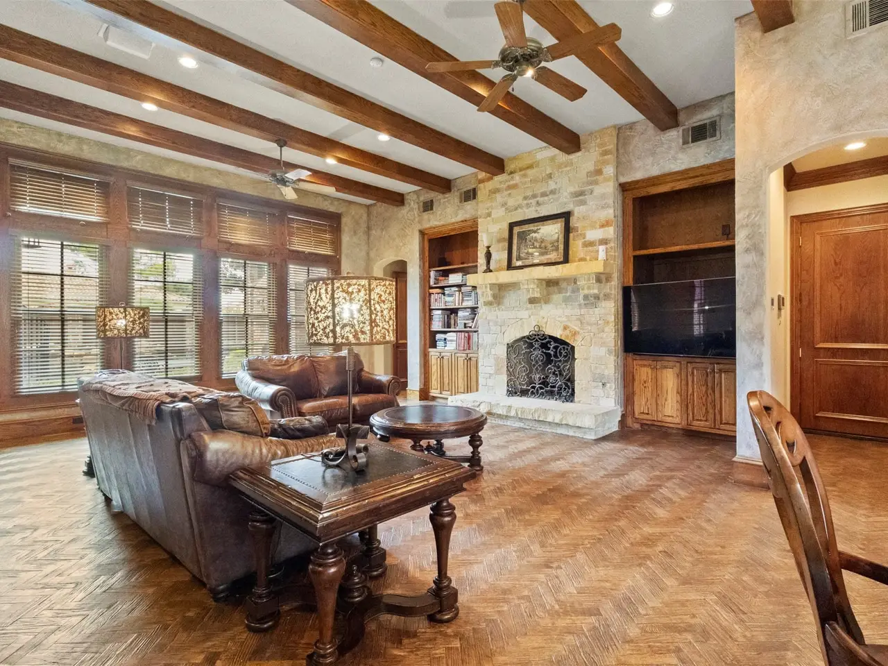 SELLER OFFERING CONCESSIONS TOWARDS COSMETIC UPGRADES BASED OFF OFFER!Welcome to this stunning Craftsman style home, a Parade of Homes masterpiece, located in one of Plano's most sought-after neighborhoods. This beautifully designed residence showcases exceptional artistry and craftsmanship throughout, making it truly one of a kind.Step through the grand entry and immediately appreciate the warmth, luxurious detail, and the stunning staircase which leads to an upper landing that overlooks the spacious Great Room below. Flanking the Great Room is the private study, adorned with gorgeous wood built-ins the perfect executive space.Flowing easily from the living areas is the gourmet kitchen, an entertainer's dream. It features stunning granite, a huge island with a prep sink, two dual-fuel ranges and ovens, a magnificent arched stone wall, and a compactor. Need more space? The full butlers pantry is ready!Retreat to the downstairs primary suite. Its spa-like primary bath offers a jetted tub perfectly positioned beneath stunning ceiling artworka true indulgence!Thoughtful design is everywhere: gorgeous scraped herringbone wood floors, wood windows, and unique storage. The area framed for a future elevator currently houses two separate closets, including a convenient cedar closet! Plus, enjoy two separate laundry rooms (one up and one down).Head upstairs to find four more spacious bedrooms, the media room, and a secondary living area.Finally, step outside to your private oasis: a sparkling pool and spa, a covered veranda with a slate deck and outdoor fireplace, and a convenient built-in grill. Enjoy three separate private outdoor areas perfect for year-round entertaining.This estate, offering 5 full and 2 half baths and a 3-car garage, defines luxury living.