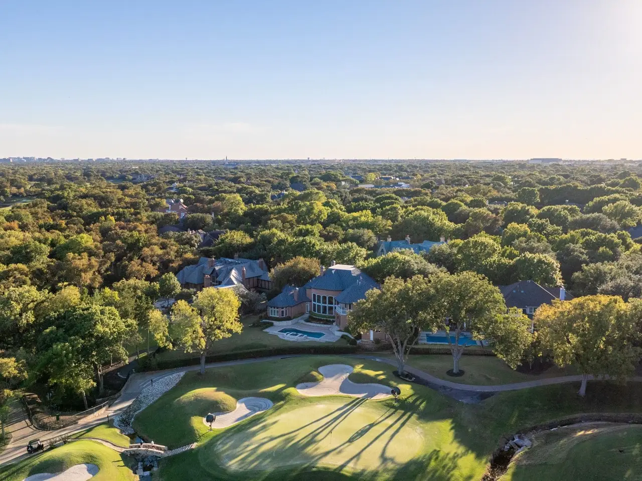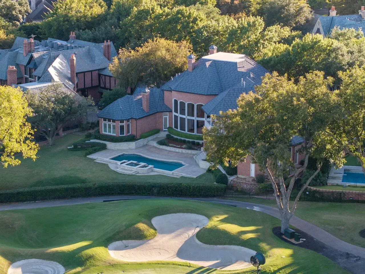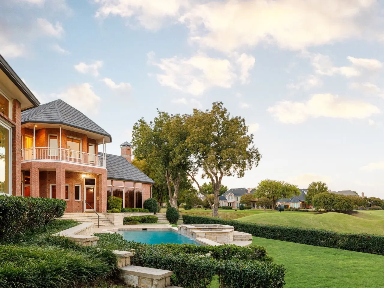Tucked away on a quiet cul-de-sac surrounded by lush, mature trees, this breathtaking traditional estate offers more than 9,000 square feet of refined living overlooking the 12th fairway of the Gleneagles Queens Course. A circle drive, grand double-leaded glass doors, and manicured landscaping set the stage for the sophistication within. Inside, the home impresses with soaring ceilings, marble floors, and intricate crown molding. Sunlight floods through expansive windows framing sweeping views of the pool, creek, and rolling hills beyond. A dramatic curved staircase greets guests in the foyer, while the formal living and dining spaces are complemented by a butlers pantry with built-insperfect for entertaining in style. The den, featuring a stately wood coffered ceiling and wet bar, looks out to tranquil golf course views. A game room with a second wet bar offers the ideal space for relaxed gatherings. The gourmet kitchen is a true centerpiece with Thermador and GE Profile appliances, a massive island, a FiveStar commercial-grade 6-burner cooktop, double ovens and dishwashers, and new custom cabinetry throughout. The primary suite provides a sanctuary of luxury with a sitting area overlooking the greens, a cedar closet, and a spa-like bath with a freestanding tub, marble shower, dual vanities and toilets, and a bidet. An upstairs secondary suite includes one ideal for a secondary study and a second primary in-law suite with a balcony and fireplace. Beyond the interiors, enjoy a resort-style outdoor experience with an expansive pool deck, lush play yard, and full pool bath. Thoughtful details abound, from two front and two rear gated porte cocheres to a potting room workshop off the garage and a back staircase for convenience. An extraordinary blend of craftsmanship, comfort, and settingthis estate captures the essence of luxury golf course living in one of North Texass most prestigious communities.