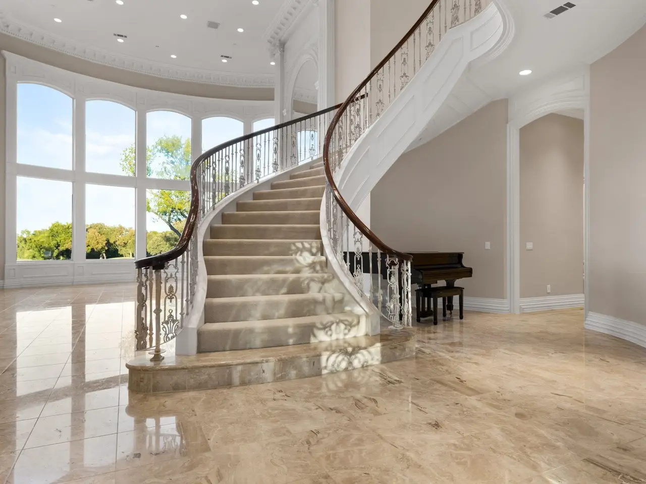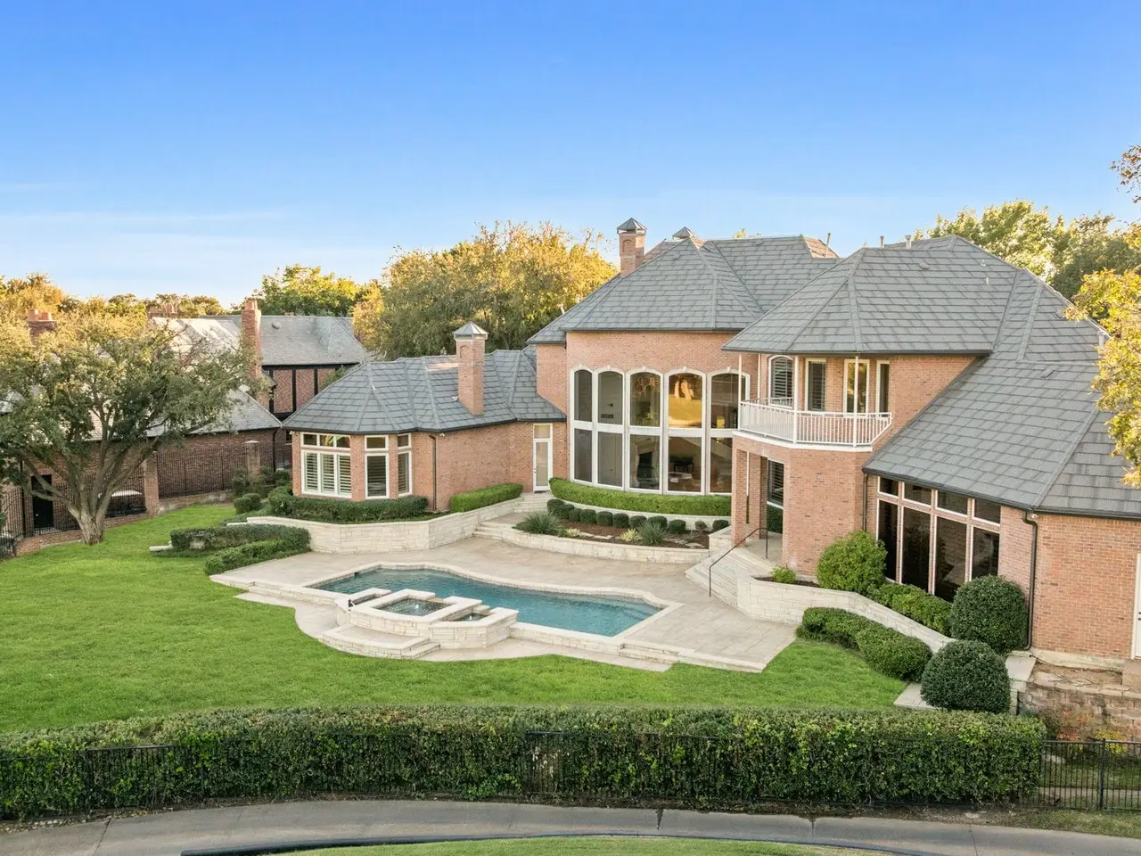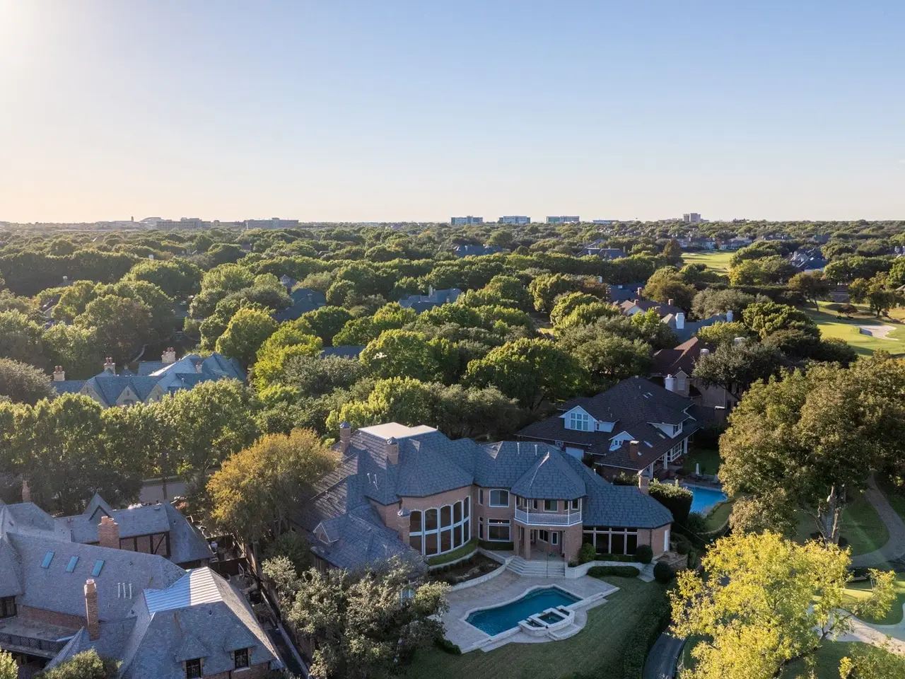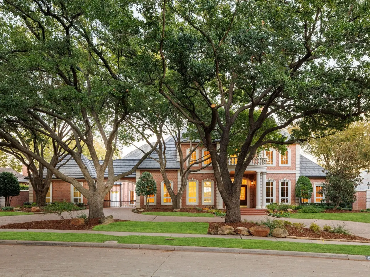 Tucked away on a quiet cul-de-sac surrounded by lush, mature trees, this breathtaking traditional estate offers more than 9,000 square feet of refined living overlooking the 12th fairway of the Gleneagles Queens Course. A circle drive, grand double-leaded glass doors, and manicured landscaping set the stage for the sophistication within. Inside, the home impresses with soaring ceilings, marble floors, and intricate crown molding. Sunlight floods through expansive windows framing sweeping views of the pool, creek, and rolling hills beyond. A dramatic curved staircase greets guests in the foyer, while the formal living and dining spaces are complemented by a butlers pantry with built-insperfect for entertaining in style. The den, featuring a stately wood coffered ceiling and wet bar, looks out to tranquil golf course views. A game room with a second wet bar offers the ideal space for relaxed gatherings. The gourmet kitchen is a true centerpiece with Thermador and GE Profile appliances, a massive island, a FiveStar commercial-grade 6-burner cooktop, double ovens and dishwashers, and new custom cabinetry throughout. The primary suite provides a sanctuary of luxury with a sitting area overlooking the greens, a cedar closet, and a spa-like bath with a freestanding tub, marble shower, dual vanities and toilets, and a bidet. An upstairs secondary suite includes one ideal for a secondary study and a second primary in-law suite with a balcony and fireplace. Beyond the interiors, enjoy a resort-style outdoor experience with an expansive pool deck, lush play yard, and full pool bath. Thoughtful details abound, from two front and two rear gated porte cocheres to a potting room workshop off the garage and a back staircase for convenience. An extraordinary blend of craftsmanship, comfort, and settingthis estate captures the essence of luxury golf course living in one of North Texass most prestigious communities.