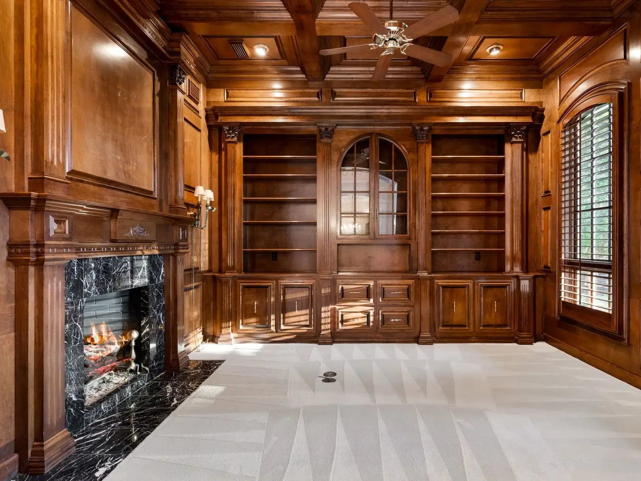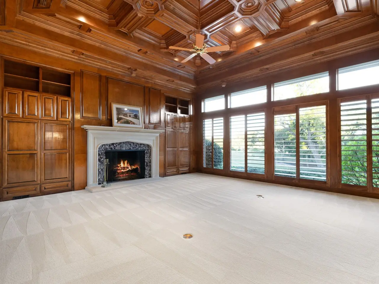 Stately wood coffered ceiling Thermador & GE Profile appliances