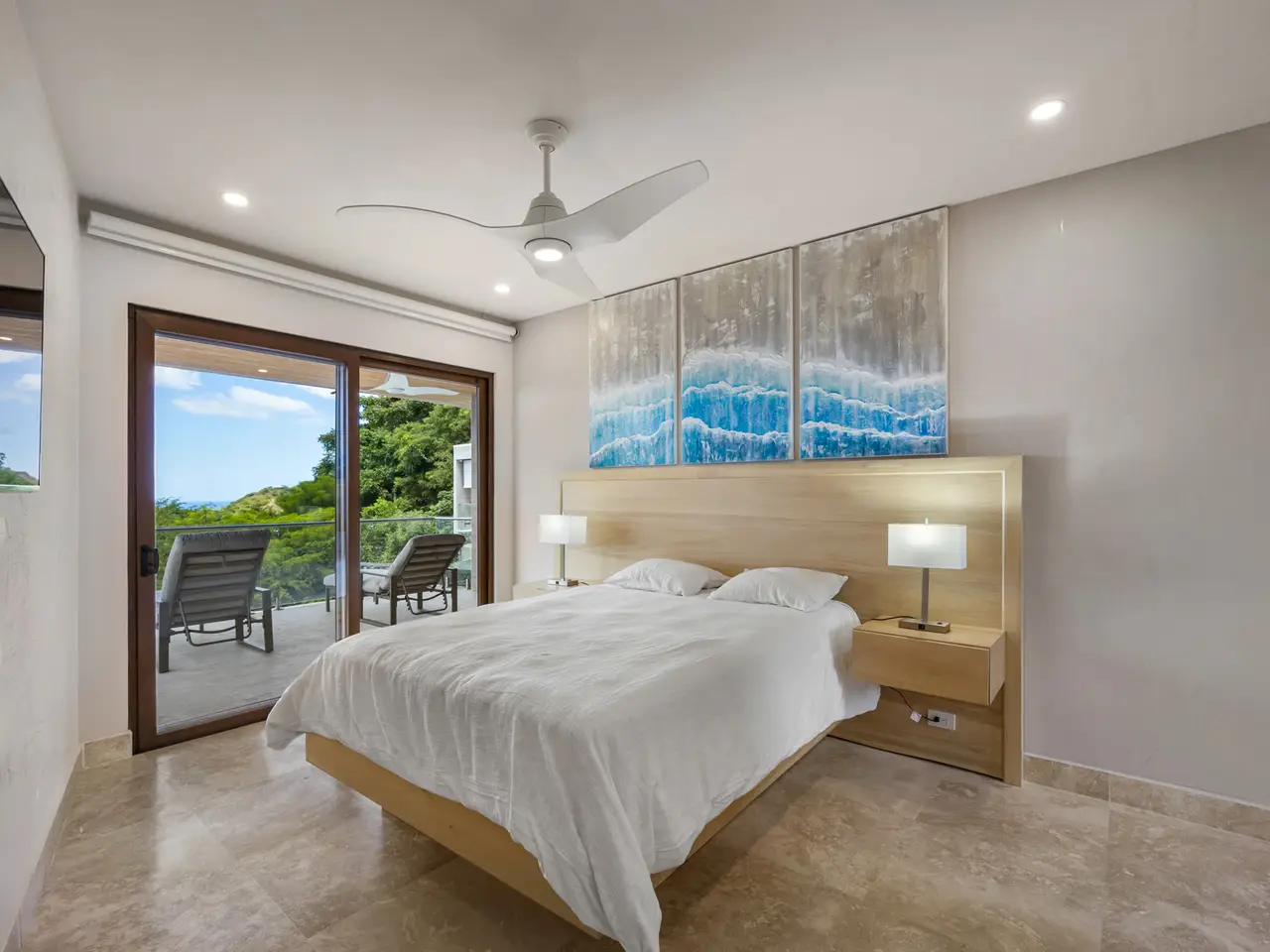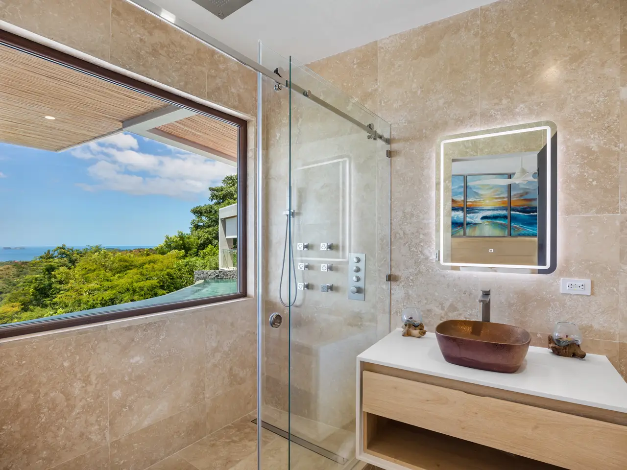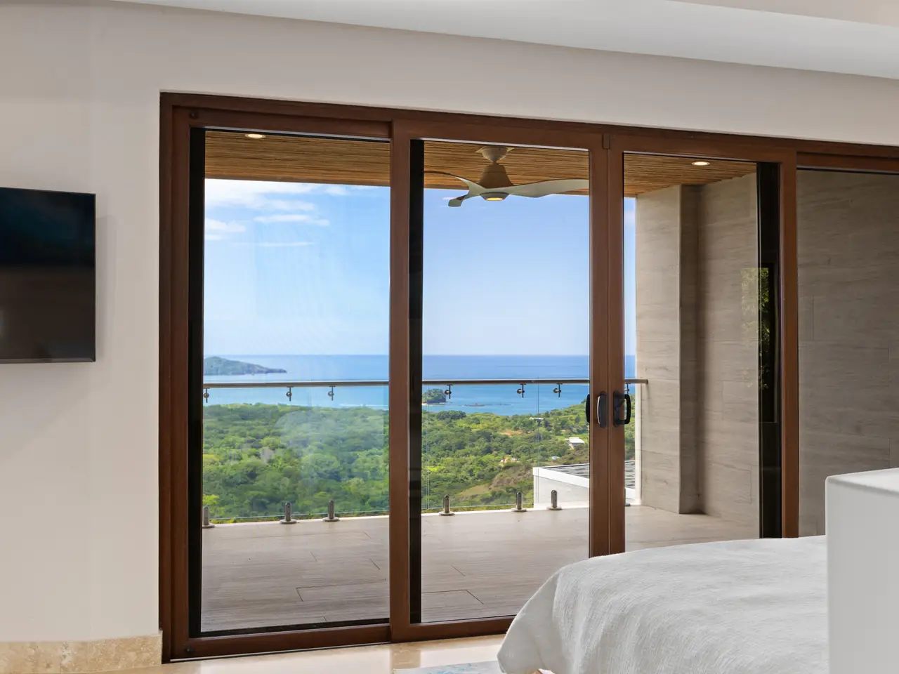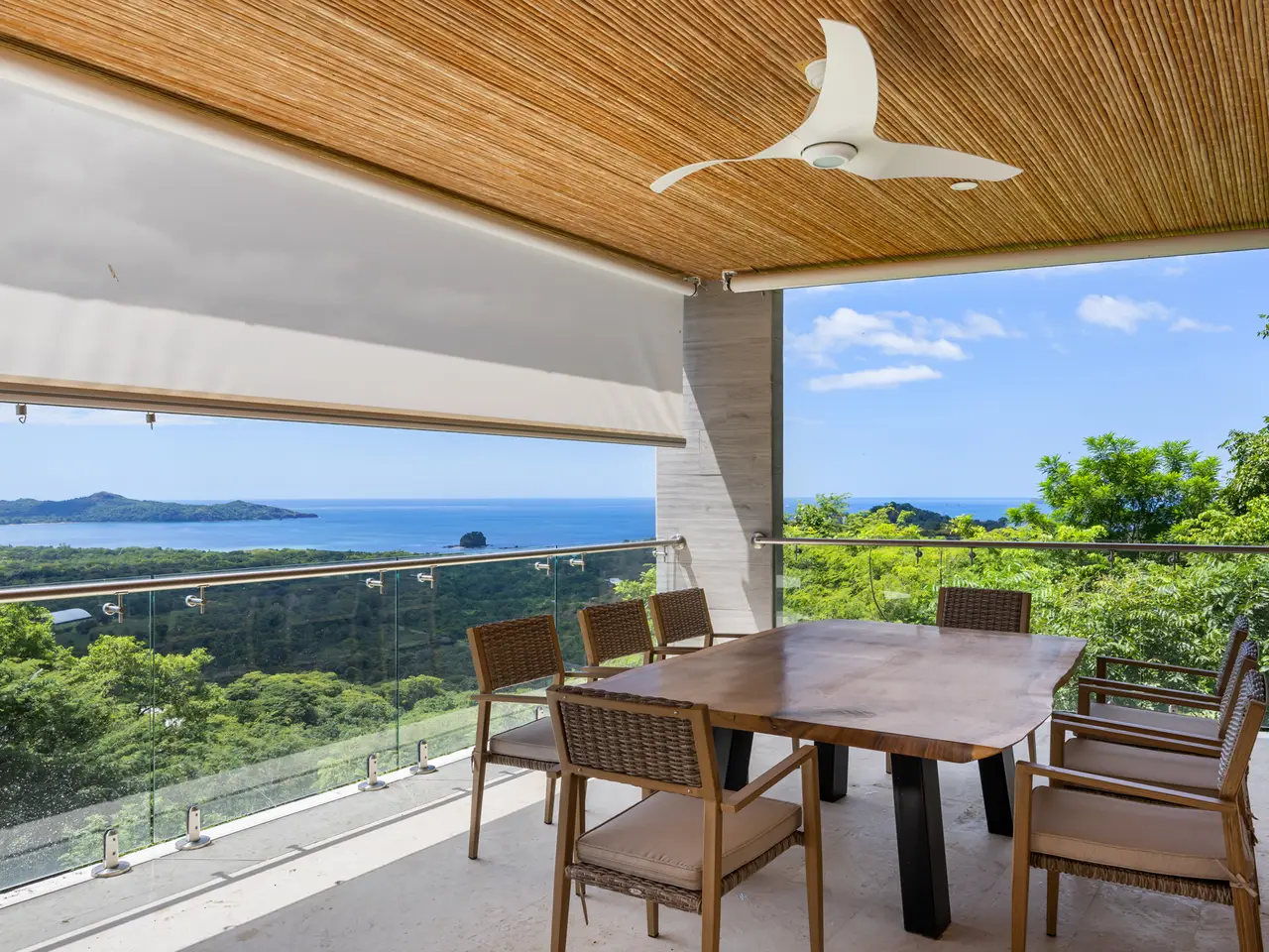 Welcome to Casa Manta Ray, a beautiful brand new luxury 6165 sq ft home with breathtaking ocean views, located at the top of the gated Miramar neighborhood in Mar Vista, Playa Flamingo. This exceptional property was designed and built by the famous Costa Rican architect José Mora. This special home has a shape that resembles a manta ray and offers many unique architectural features and includes curated, large, original paintings by José Mora throughout the home. There are travertine floors and walls throughout, venetian stucco walls and ceilings, locally hand-crafted melina wood furniture, custom artwork, and full walls of glass facing the Pacific Ocean. Upon entering through the huge wooden door, you are greeted by a bright and airy open living area. This layout boasts a neutral color palette with abundant natural light as the back of the house is all glass that frames captivating ocean views and opens up to the covered outdoor space. An expansive 12-seater sectional sofa invites you to unwind, while a custom-built entertainment center, with natural wood accents, complements the room's elegant, minimalist decor. Amid the area, decor accentuates splashes of ocean colors. The dining and kitchen areas are perfect for entertaining. The dining table, made of local hardwood, is surrounded by modern chairs and sits under a unique light fixture. The kitchen is sleek and functional, with plenty of light wood cabinets, a spacious island with seating, and top-quality stainless steel appliances, ideal for cooking and gathering. Casa Manta Ray features four spacious bedrooms, each with its en-suite bathroom; plus a convenient half bath, providing ample comfort and privacy for family and guests. The downstairs bedrooms are the guest bedrooms and offer queen beds. The top floor offers 2 master bedrooms, each with custom king wood beds, beautiful artwork done by José Mora, massive walk-through closets with seated vanities and mirrors, and patio doors to an upstairs balcony offering luxurious and relaxing seating. The ensuite bathrooms have travertine floors and walls, unique stone sinks, wrap-around quartz countertops, and massive ceiling rain showers which include windows that have incredible ocean views. Another architectural highlight of Casa Manta Ray is its grand staircase, which rises gracefully under soaring ceilings and is framed by large windows overlooking the lush, green surroundings. At the landing on the second floor, a unique, oversized window creates a breathtaking "aquarium effect," offering an uninterrupted view of the surrounding landscape that feels as if you’re immersed in nature. Casa Manta Ray’s outdoor areas are perfect for both relaxing and entertaining. The spacious terrace includes an outdoor kitchen with a built-in grill, prep area, and dining space, ideal for enjoying meals with family and friends. Next to the dining area, the infinity poolside lounge offers cozy seating and stunning ocean views, creating an inviting space to unwind. The sparkling curved infinity pool is perfect for a refreshing dip, surrounded by ample space for lounging and taking in the beautiful scenery. As a bonus, there are solar panels on this home! The Miramar neighborhood, located within the Mar Vista community in Playa Flamingo, combines luxury with natural beauty. Known for its amazing ocean views, gated security, and peaceful setting, Miramar is ideal for those seeking privacy and an active lifestyle in one of Guanacaste's top areas. The Mar Vista community covers 750 acres and focuses on sustainability and preserving nature. Residents enjoy a range of amenities like a gym, tennis and pickleball courts, hiking trails, and Gracia restaurant with an infinity pool and stunning ocean views. There is a private school at the entrance, making it a great choice for families. Nearby are the famous Playa Flamingo and Playa Conchal beaches, grocery stores, restaurants, medical facilities, and the new Flamingo Marina. Ready to make Casa Manta Ray your own? Contact us today to schedule a viewing and experience the beauty and serenity of this incredible property firsthand. Don’t miss the chance to live in your dream home in Playa Flamingo!