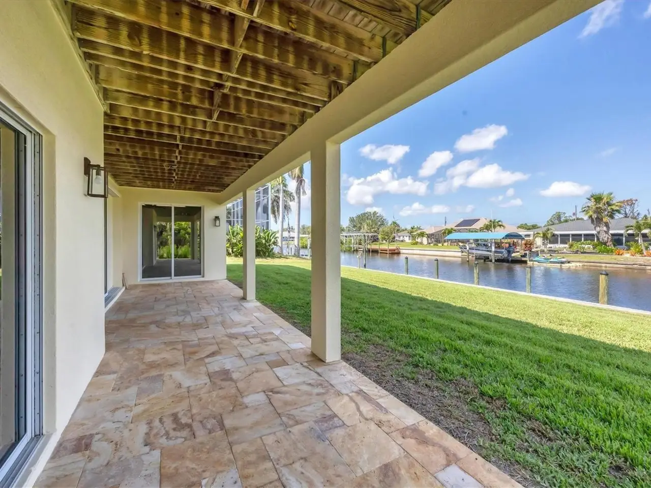 This custom-built waterfront residence is a rare find, offering a harmonious blend of elegance, functionality, and an unbeatable location. Enjoy captivating water views in every direction with the serene Myakka River gracing the front of the home and peaceful canal vistas at the rear. Nestled in a prime boating location, the property provides direct access to the Gulf of Mexico, Intracoastal Waterway, and Charlotte Harbor, making it a true coastal haven. Crafted by a well-known local builder, the home exemplifies superior craftsmanship, solid construction, and a level of thoughtful design tailored to meet the expectations of the most discerning buyers seeking luxury and quality and a true coastal lifestyle. The upper level features a spacious kitchen with warm wood cabinetry, a pantry, and an expansive eat-in dining area, perfect for family gatherings. Custom trim work and solid-core doors elevate the interior, while elegant wooden stairs flow seamlessly between levels. Enhance your daily living with the added convenience of a built-in dumbwaiter, making it effortless to transport items between the lower and upper levels of your home. All bedrooms are generously sized, offering comfort and versatility. The master suite is a true retreat, featuring built-in window benches with storage, two large walk-in closets, and a luxurious bathroom with a floor-to-ceiling tiled shower, linen closet, and private commode. Guests will appreciate the privacy afforded by a pocket door that separates the second spacious bedroom and beautifully updated guest bath. The third bedroom also includes an oversized closet, making it ideal for additional family or visitors. The lower level is a versatile space with tile flooring throughout, currently set up as a game room, and includes a full bath, utility room with washer, dryer, and sink, and a bonus area that could easily be transformed into a fourth bedroom or office. This level opens directly onto a covered patio perfect for entertaining or relaxing after a day on the water. Enjoy peace of mind with hurricane shutters, a metal roof, impact-resistant garage doors, and Hardie Board siding on the upper level with solid block construction below. The home is equipped with two A/C units, including a newer system installed in 2022, and includes a freshly painted exterior and garage floors. The upper lanai, constructed of premium Ipe wood, offers beautiful water views and is fitted with sunshades for added comfort. Boaters will appreciate the 2019 composite dock and pilings, concrete seawall, and extended paver driveway providing ample space for boat or trailer parking. Additional features include an outdoor shower, irrigation system, and a split garage with one single bay and a three-car tandem section offering generous storage for vehicles and marine gear. Welcome to your own slice of paradise this exceptional coastal gem offers sweeping views of the Myakka River from the front and serene canal vistas from the rear, creating a truly captivating waterfront retreat. Thoughtfully designed for those who value both refined elegance and everyday functionality, this rare property blends luxury living with direct access to Southwest Florida's premier boating waters. Perfectly positioned just minutes from unspoiled beaches, top-rated golf courses, upscale dining, and a variety of coastal attractions, this home offers the ultimate opportunity to live the waterfront lifestyle to the fullest.