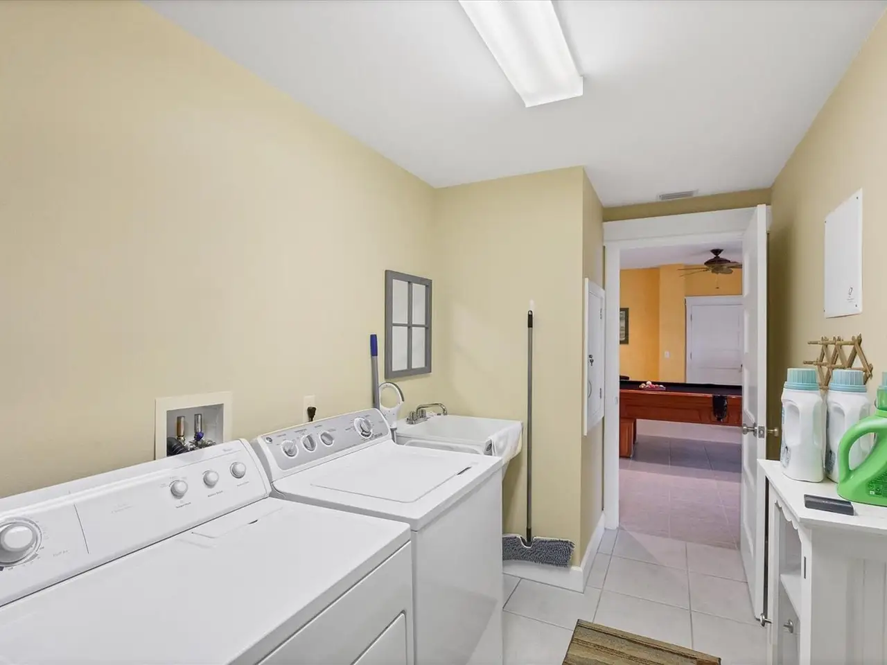 Versatile lower level game room with full bath
