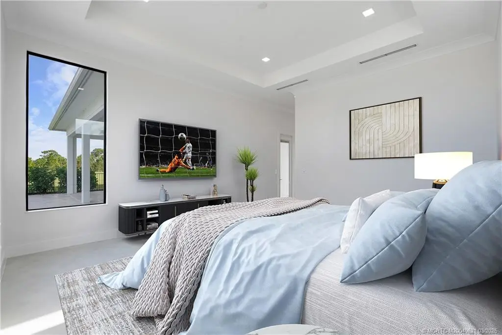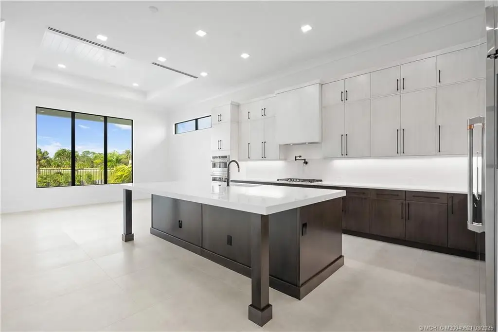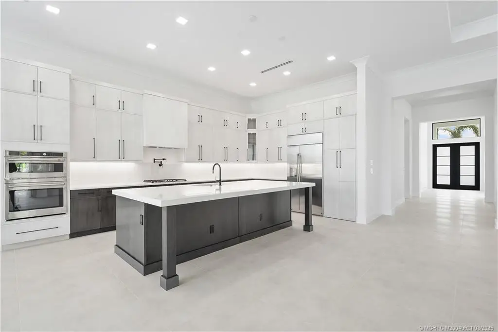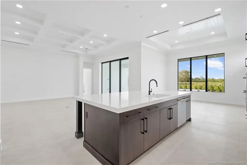 This hom? i?? loc?t?d ??n th? h??rt of Tesoro, the Tr?a??ure Coasts premier golf club. The Keenan presents the perfect design and layout that enhances that Florida lifestyle. Entertaining at its best with a large oversized back covered patio including travertine pavers and a professionally designed pool enhanced with sun shelf and a water feature. Other outstanding finishes include 12ft. volume ceilings, oversized club room with wet bar, spacious kitchen including butler's pantry, oversized center island, stacked cabinets, Cafe appliances including 42 built-in refrigerator, wall oven/microwave combo, washer & dryer and 32 x 32 tile flooring throughout. This home is located on a perfect lot in a premier golf club community of Tesoro, offering an impressive coastal-contemporary designed home. Bring your golf clubs and enjoy the best golf experience on the Treasure Coast!