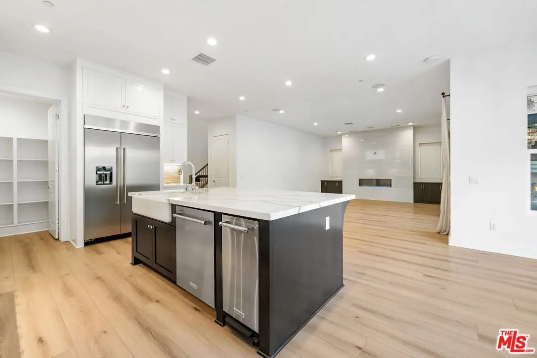Introducing a rare opportunity in the prestigious guard-gated community of Hillcrest, a stunning 2022 build that blends luxury, comfort, and designer-level upgrades in every corner. Located on a quiet cul-de-sac with exceptional privacy, this home is in impeccable, move-in ready condition and lives like a modern resort. Step into an open, light-filled interior where the heart of the home is the chef-inspired kitchen, complete with a built-in refrigerator, side-by-side ovens, a 6-burner cooktop with griddle, a 48" professional vent hood, a built-in microwave, a large center island, and a walk-in pantry. The kitchen flows seamlessly into the family room, which highlights a sleek cosmo fireplace, custom wall treatment, and custom built-ins, and then expands outward through large stackable sliding glass doors to the extraordinary backyard. The outdoor living spaces are a true showpiece: a new Pebble Fina pool and spa, a built-in BBQ center with outdoor TV, a pergola with a gas firepit, and a covered outdoor lounge with its own fireplace. This stunning backyard is designed for year-round relaxation and entertaining. Inside, the first floor offers an expanded bedroom suite, ideal for flexible living needs. The first level also includes an extra bonus room - ideal for a home office or gym. Upstairs, the primary suite impresses with a massive walk-in closet featuring custom built-ins, and a spa-style bathroom with dual vanities, a free-standing soaking tub, and a spacious walk-in shower. The upper level also boasts a generous loft space, delivering additional versatility. A finished 2-car garage outfitted with car charging station, custom cabinets and epoxy flooring adds convenience and style. Located in one of Porter Ranch's most sought-after gated enclaves, this residence offers a rare blend of luxury, privacy, and contemporary design, and is located just moments from Porter Ranch Community Park, equestrian and hiking trails, The Vineyards shopping center, and Porter Ranch Town Center.