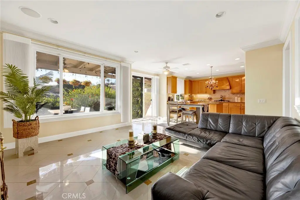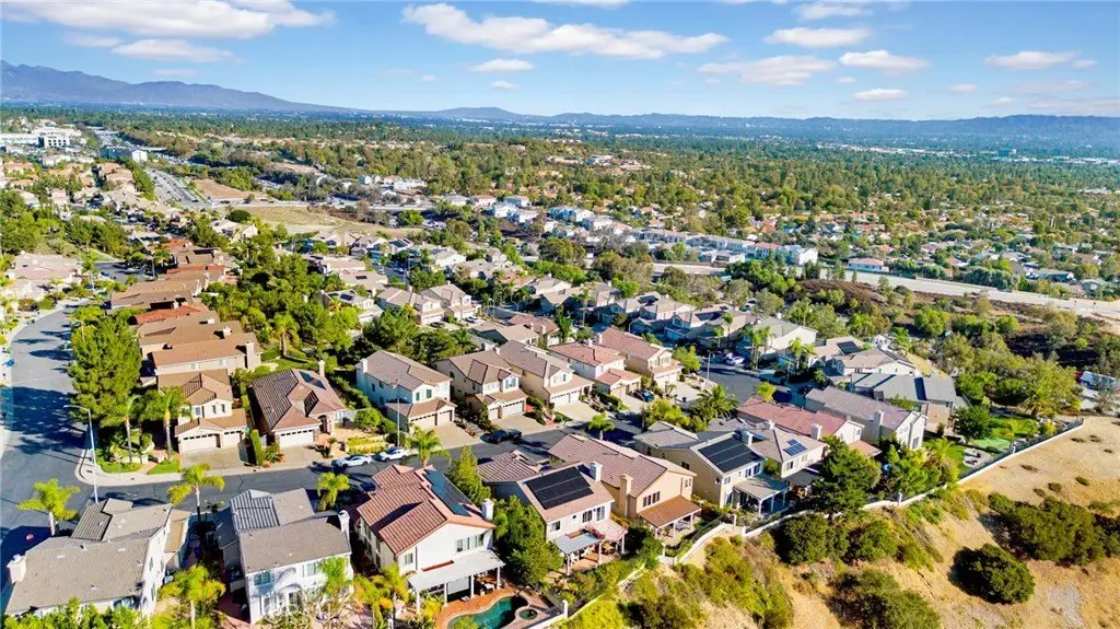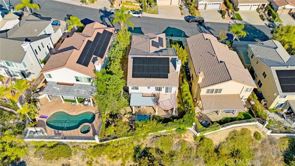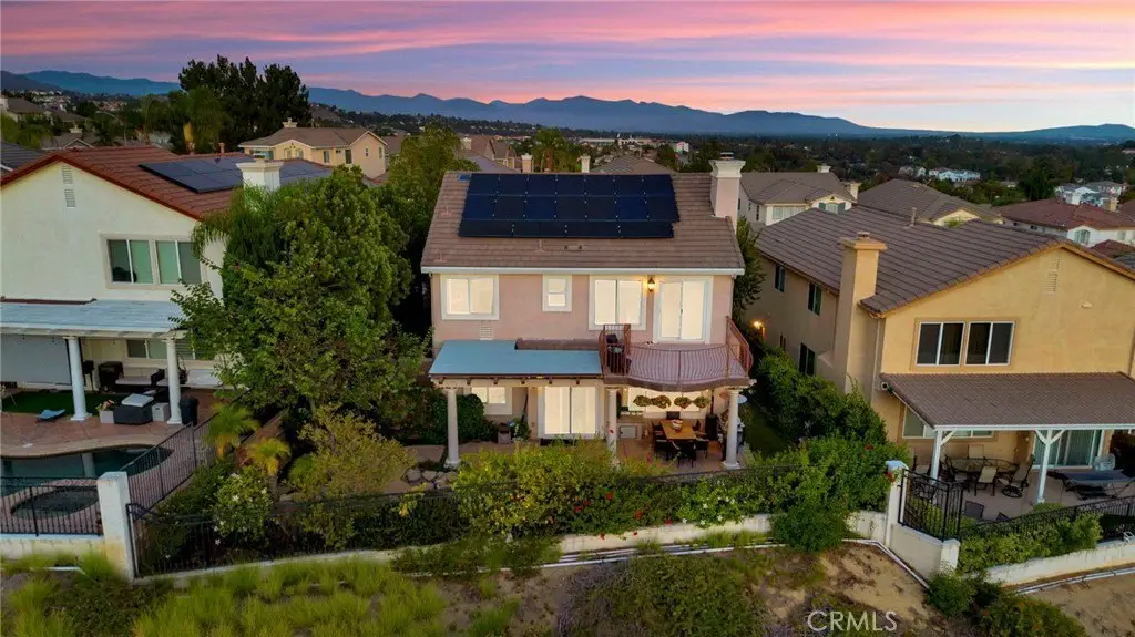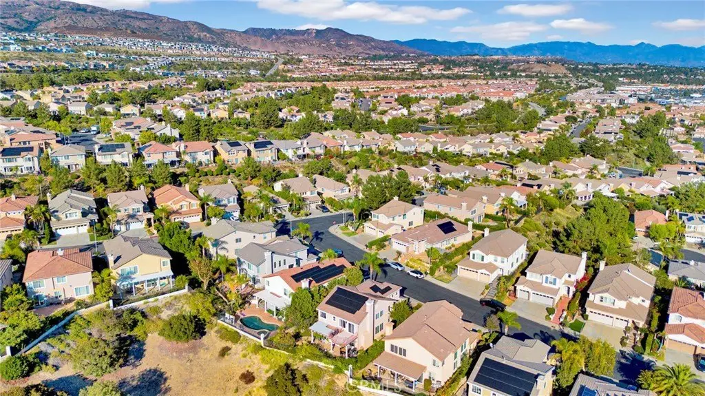 Unrivaled Views – Sorrento Living at Its Finest. DO THE COMPARISON! Unmatched value in the exclusive, guard-gated Sorrento community of Porter Ranch with sweeping city views. Elegant two story home, manicured landscaping and a serene sunset backdrop. 2,702 square feet of elegant & bright living space featuring striking curved staircase with wooden banister. The two story foyer highlights the beautiful chandelier and tiled flooring with decorative inlays. The walls are painted a warm, light yellow, complemented by custom white crown moldings. Adjacent to the living room is the dining section and a family room that seamlessly flows into a gourmet kitchen with granite counter tops, light wood cabinetry, large center island, custom backsplash and built in appliances like fridge, stainless steel double oven, cooktop, and dishwasher. Abundance of windows plus sliding door leads to the backyard from the family room to a resort backyard + paved patio area under a pergola supported by columns. An inviting spa among decorative rocks and unbelievable sunsets! First floor includes 1 bedroom, 1 full bathroom and a separate room for laundry adjacent to a direct access three car garage. Ascend to the second floor and you will find 5 bedrooms and 2 bathrooms. Spacious second floor landing is bathed in natural light from well placed high custom windows, natural toned carpet and expansive transition to the bedrooms and the private primary suite. 3 spacious bedrooms and a primary bedroom. The primary suite is the highlight of this home, the major highlight is the direct access to the private terrace with views of the hills and city. Views all the way to Santa Monica mountains, Santa Susana mountain, and the entire the valley. The primary en suite bathroom features tiled walk in shower and deep soaking tub with a perfect window placement to absorb in all the views. The dual sink vanity with ample counter space highlighted by two ornate, matching mirrors and stylish sconce lighting. Also not to forget the generous walk in closet ensuring a high end primary suite experience. Additional property feature includes solar panels. The home is in a desirable 24-hour guard-gated community with a TWO community pool/spa with low HOA dues of $305 per month. Come experience the difference in Porter Ranch.