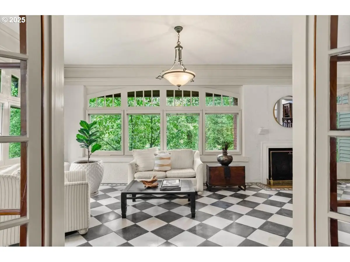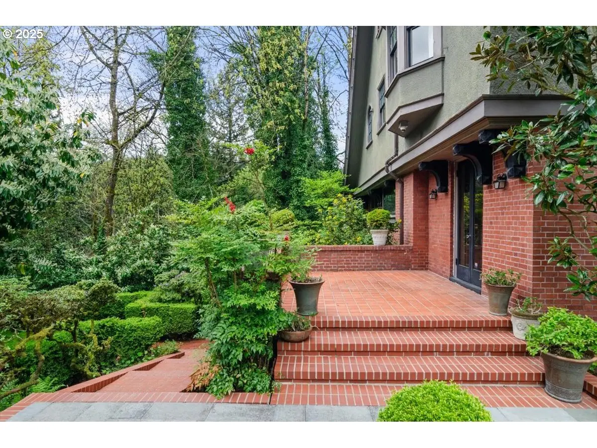 Designed in 1912 by Architect Josef Jacobberger, the Giesy/Failing House is a stunning blend of Craftsman and Arts and Crafts styles, offering an unparalleled sense of grandeur. Ideally located in the coveted West Hills on 1.55 acres, this property features steep intersecting gabled roofs, a cantilevered stucco second floor, and exquisite wrought-iron detailing. The distinguished arched glass and wrought-iron canopy at the entrance sets the tone for the home's stately interiors. Inside, the high ceilings throughout, wood paneling, leaded glass windows, intricate moldings, and multiple fireplaces create an atmosphere of timeless sophistication. With five bedrooms, four full and two half bathrooms, and expansive living spaces — including a grand foyer, sunroom, library, formal dining room, and recently remodeled kitchen — this residence seamlessly blends architectural heritage with modern convenience. Listed on the National Register of Historic Places and located on a dead-end street just minutes from parks, trails, the city, major hospitals, schools and high tech, this is a rare opportunity to own a true Portland landmark. [Home Energy Score = 1.]